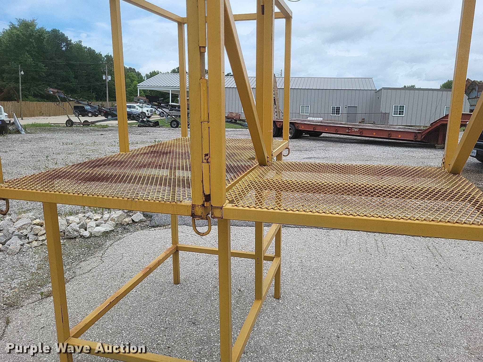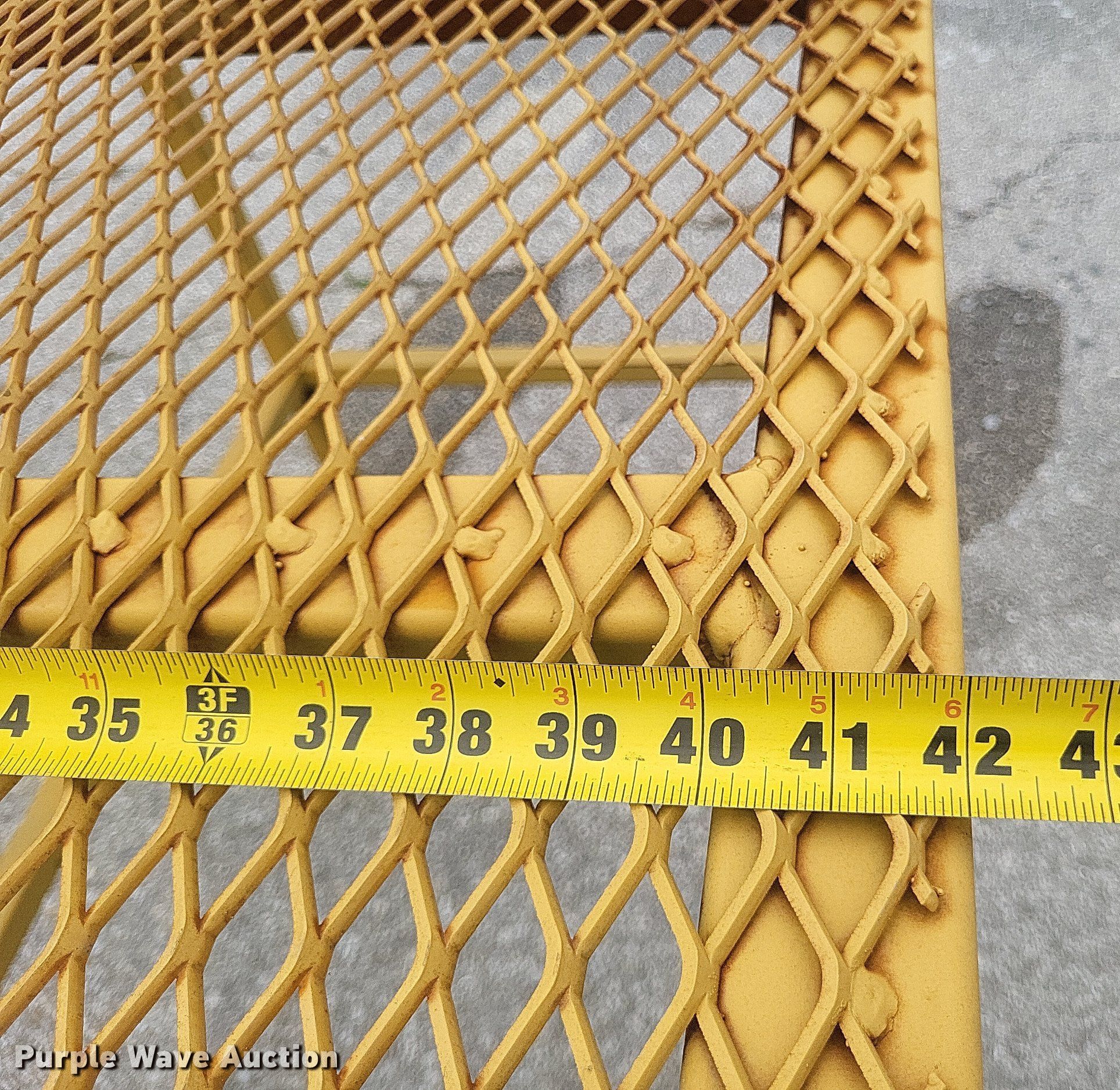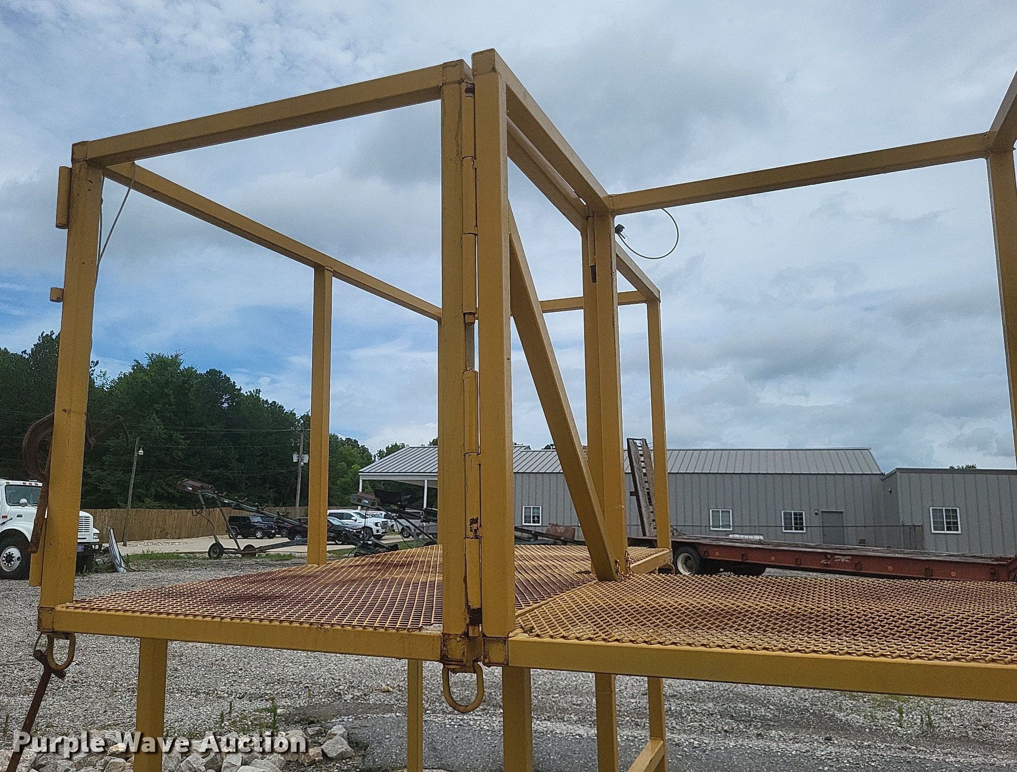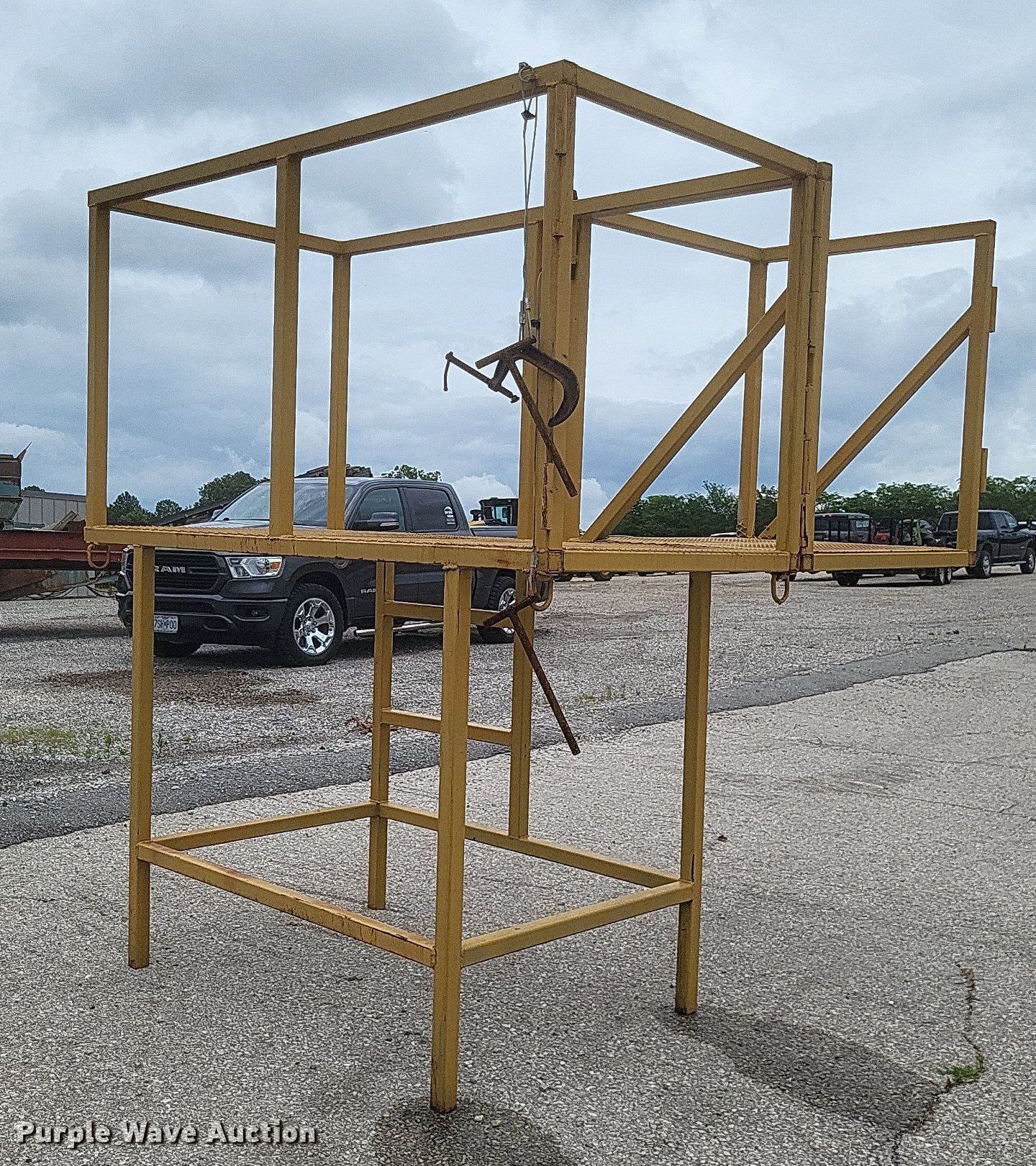 Purple Wave is selling a used Truck Part and Attach. in Missouri. This item is a Dump truck work platform with the following: Main basket, Dimensions: 7' x 3' 6", Swing out basket, Dimensions: 3' 2" x 3' 6", Platform height: 56", Railing: 44"