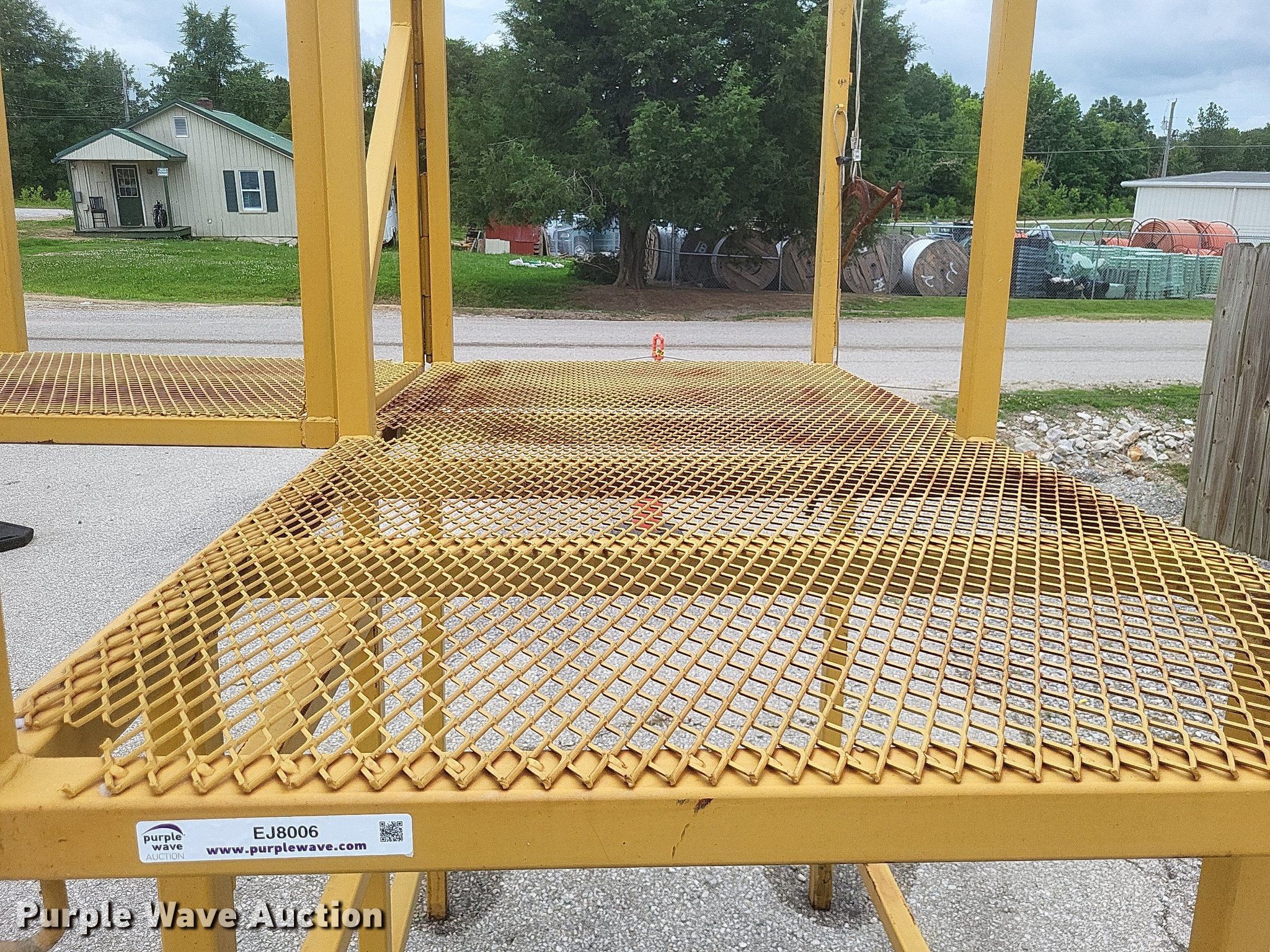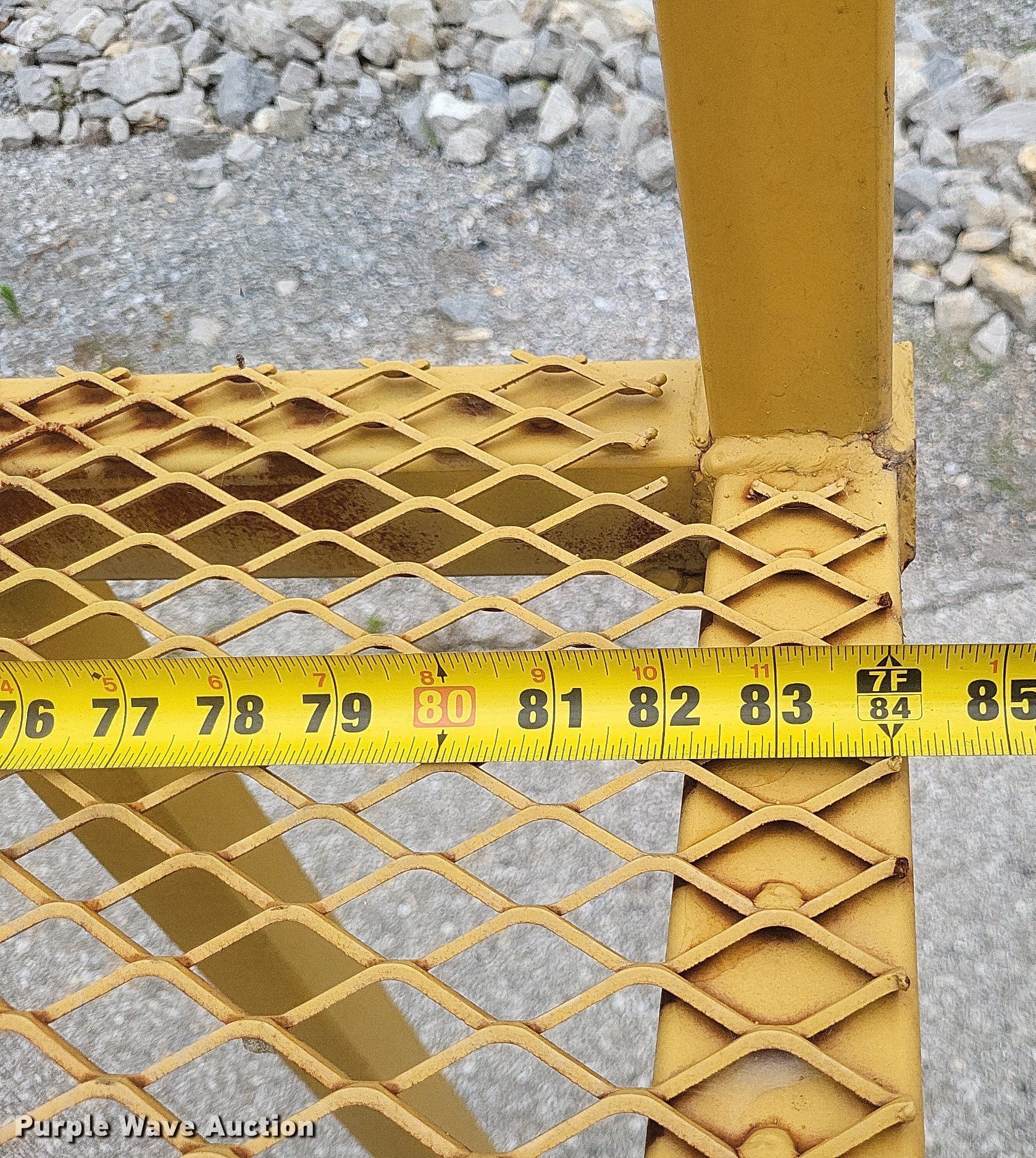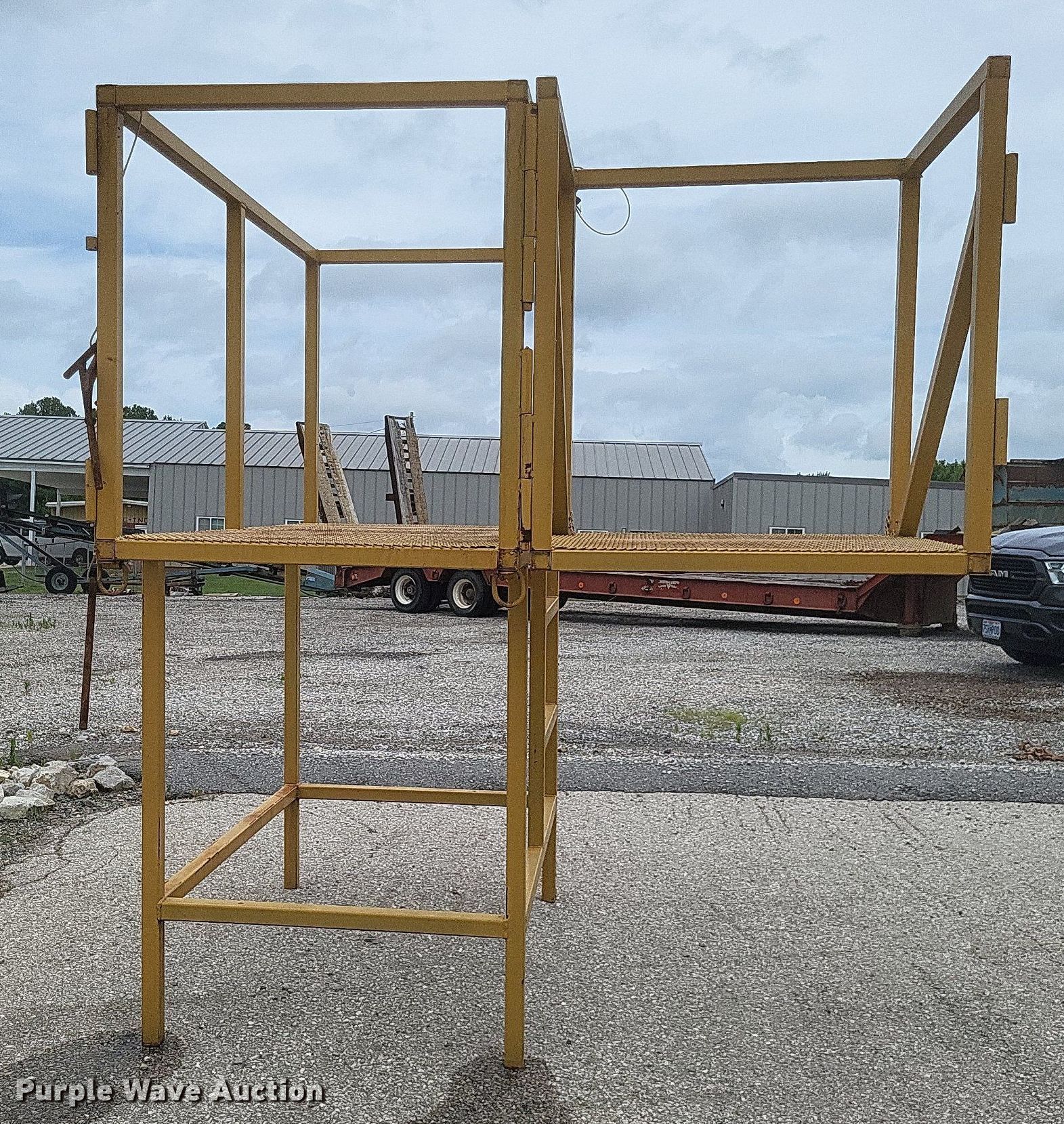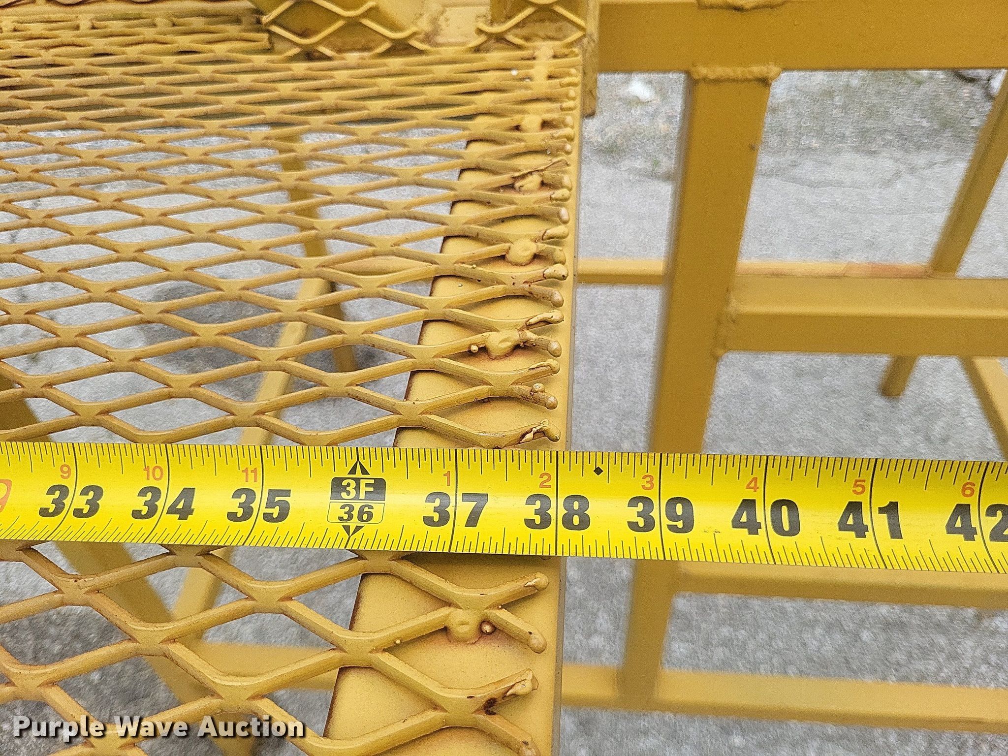 Purple Wave is selling a used Truck Part and Attach. in Missouri. This item is a Dump truck work platform with the following: Main basket, Dimensions: 7' x 3' 6", Swing out basket, Dimensions: 3' 2" x 3' 6", Platform height: 56", Railing: 44"