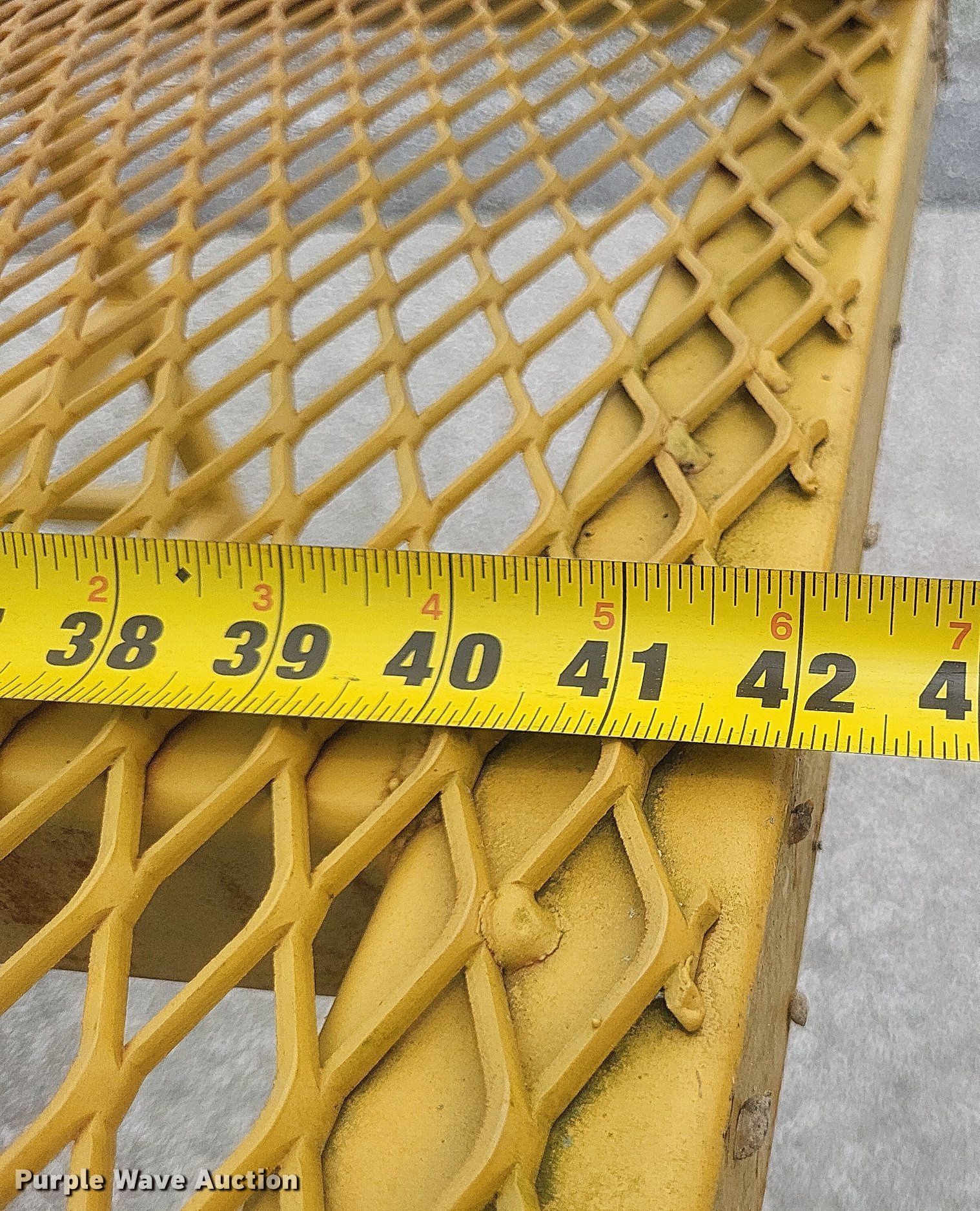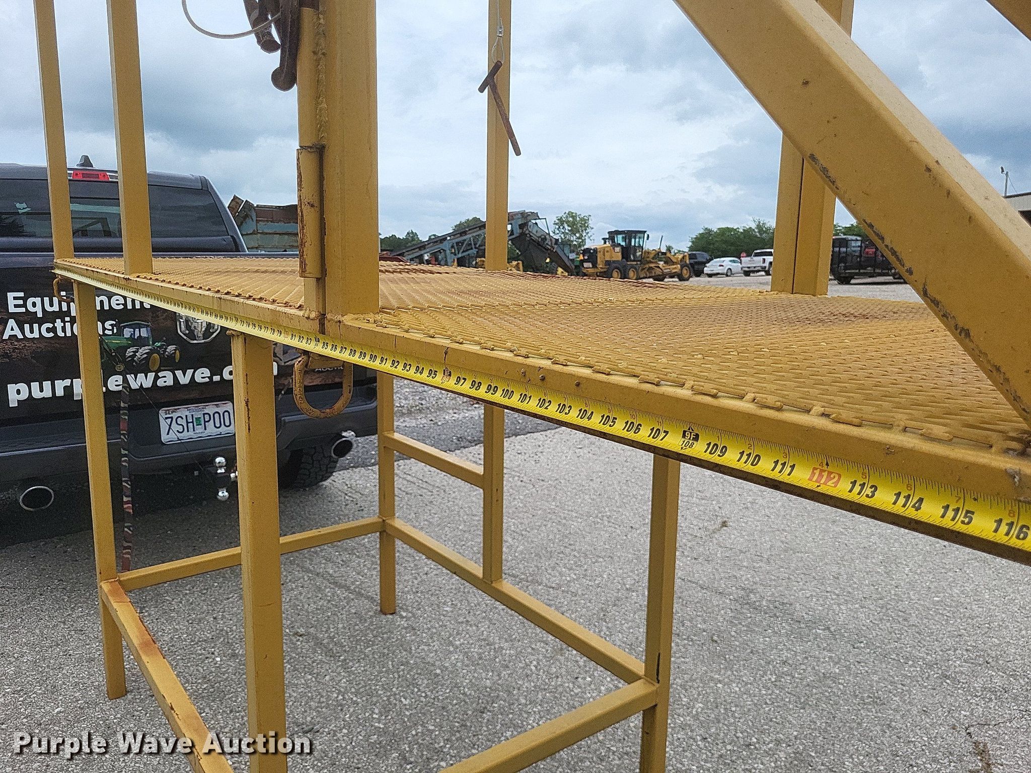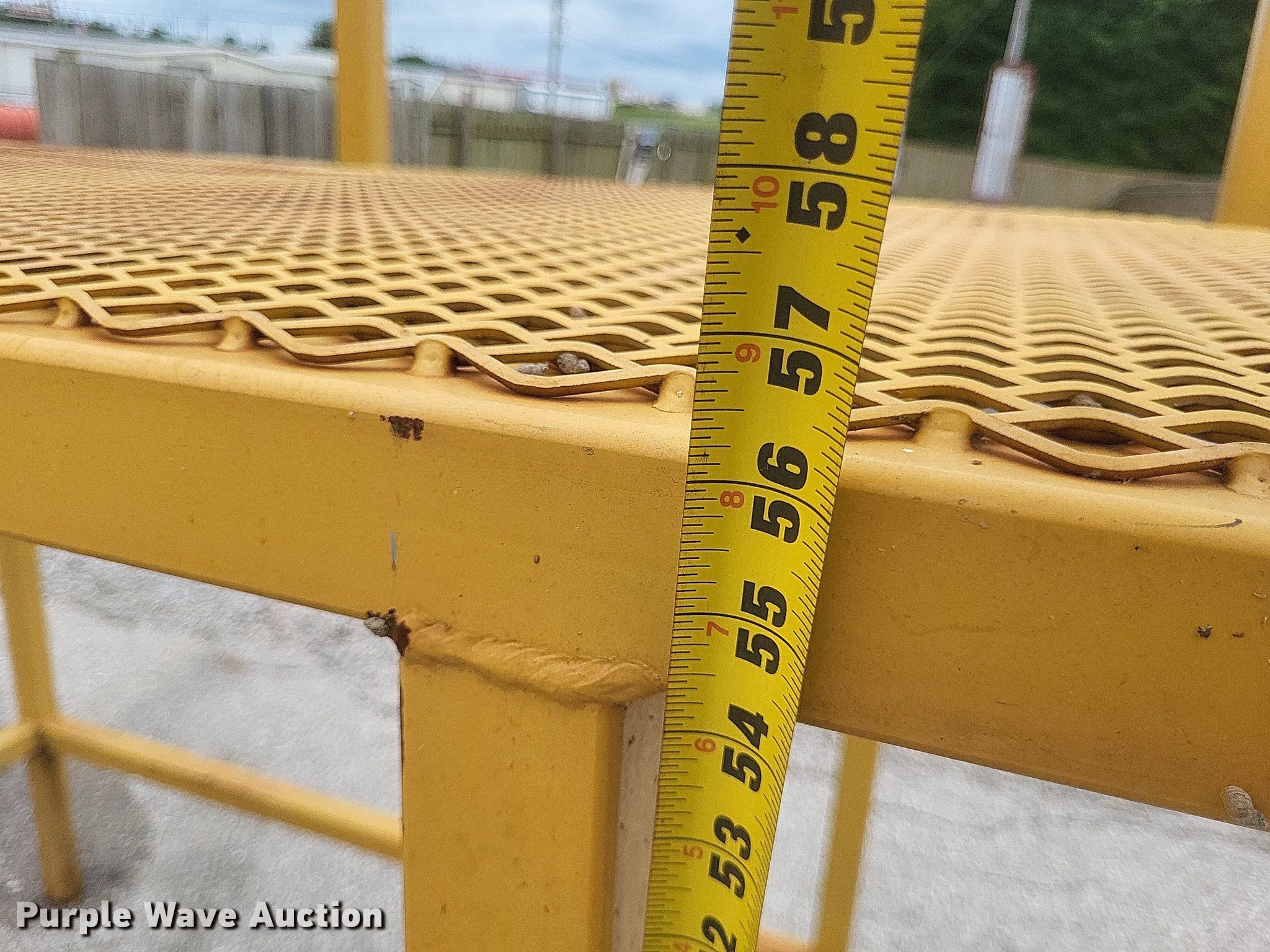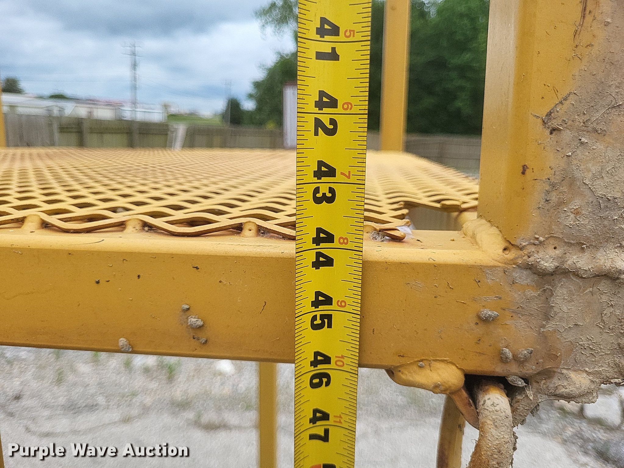 Purple Wave is selling a used Truck Part and Attach. in Missouri. This item is a Dump truck work platform with the following: Main basket, Dimensions: 7' x 3' 6", Swing out basket, Dimensions: 3' 2" x 3' 6", Platform height: 56", Railing: 44"