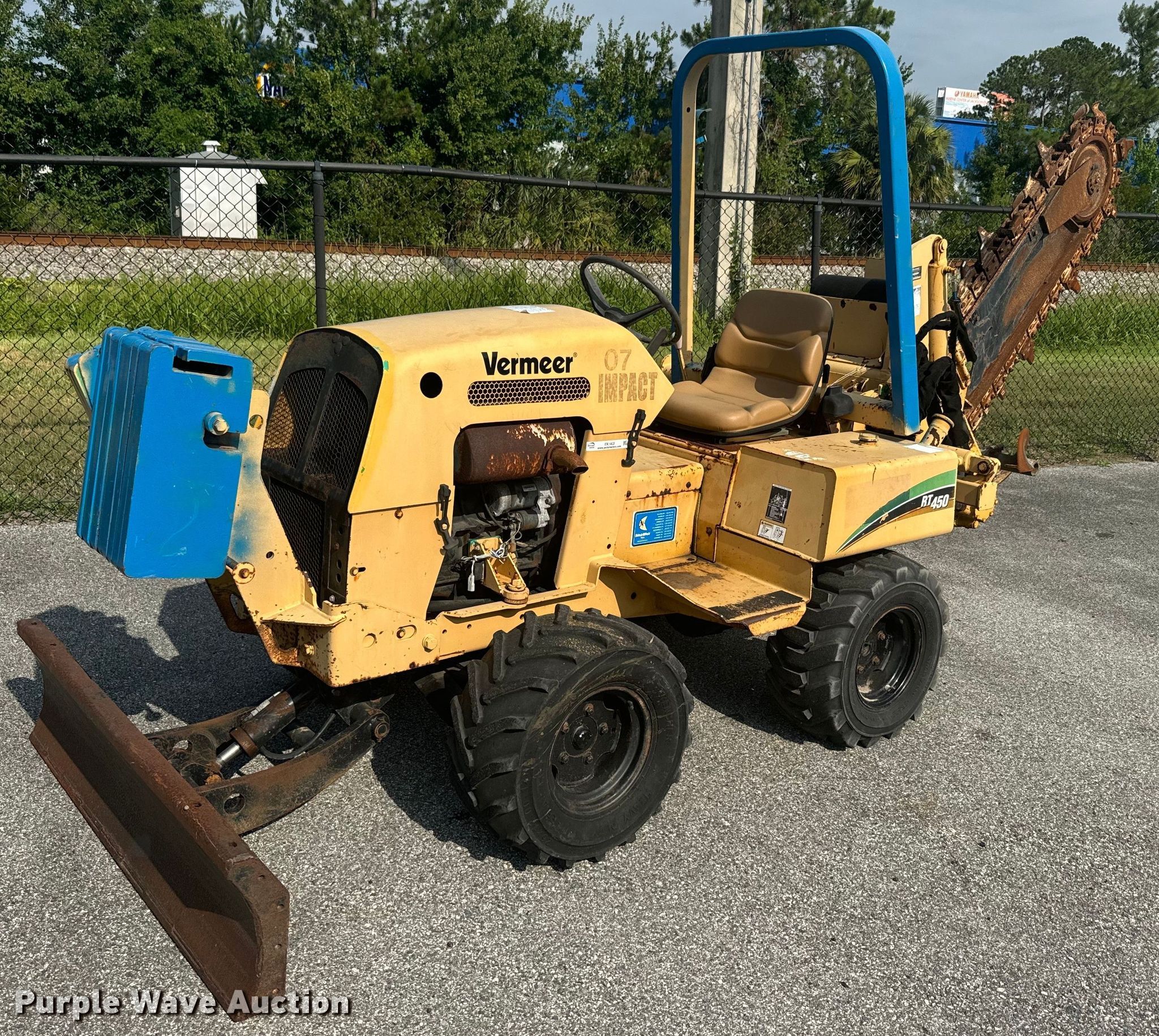 Purple Wave is selling a used Trencher or Rock Saw in Florida. This item is a 2007 Vermeer RT450 trencher with the following: Hours: 2,115 on meter, Serial: 1VRX0721271001491