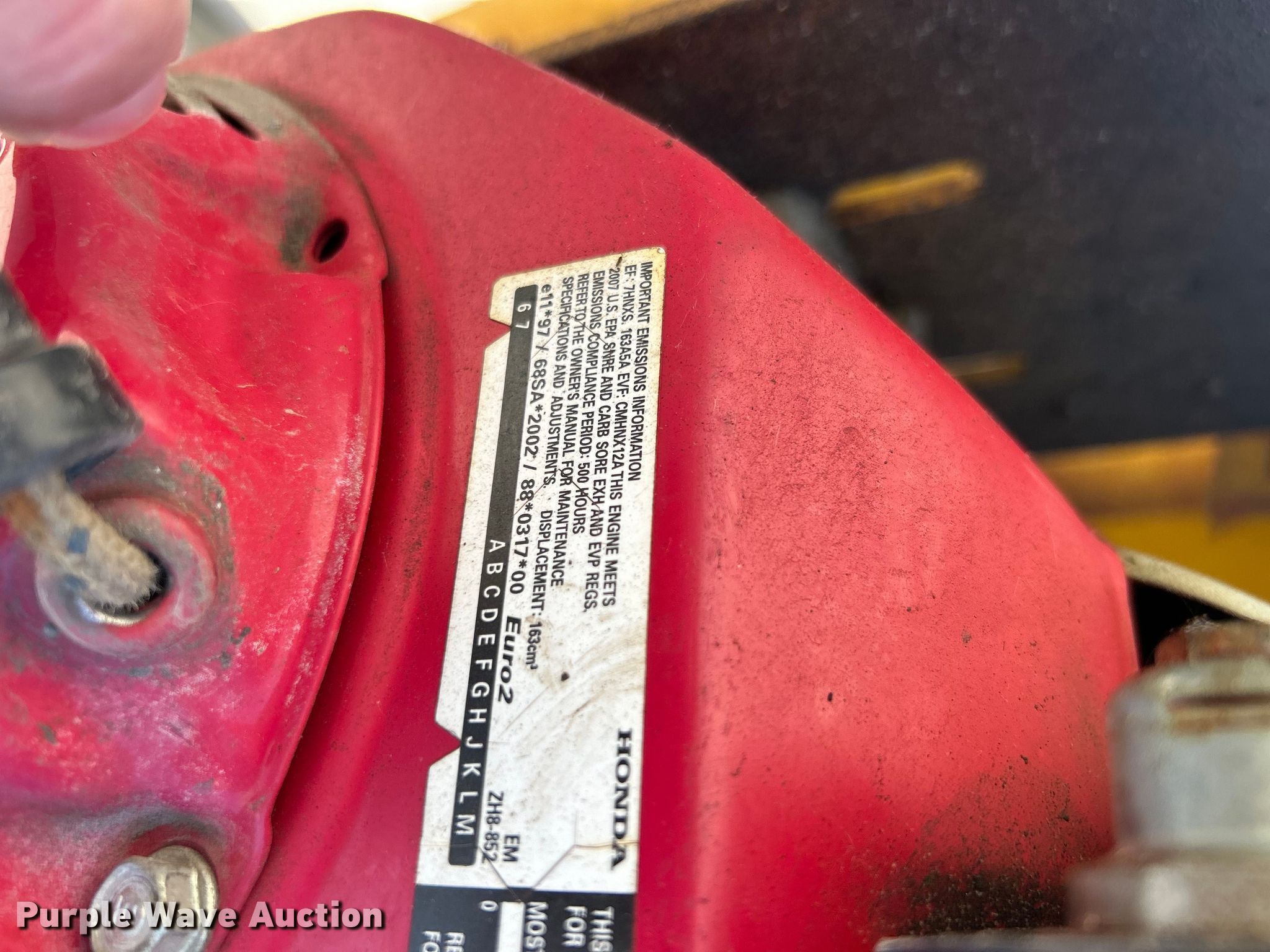 Stone 655PM mortar mixer. Serial: 492007087. Engine Honda GX160, Displacement: 163 cc, Cylinders: 1, Fuel type: Gas. Features Hopper: 24" x 22" x 27". Tires Size: 4.80-12. McCarthy Building Companies Inc. St. Louis, MO 63124