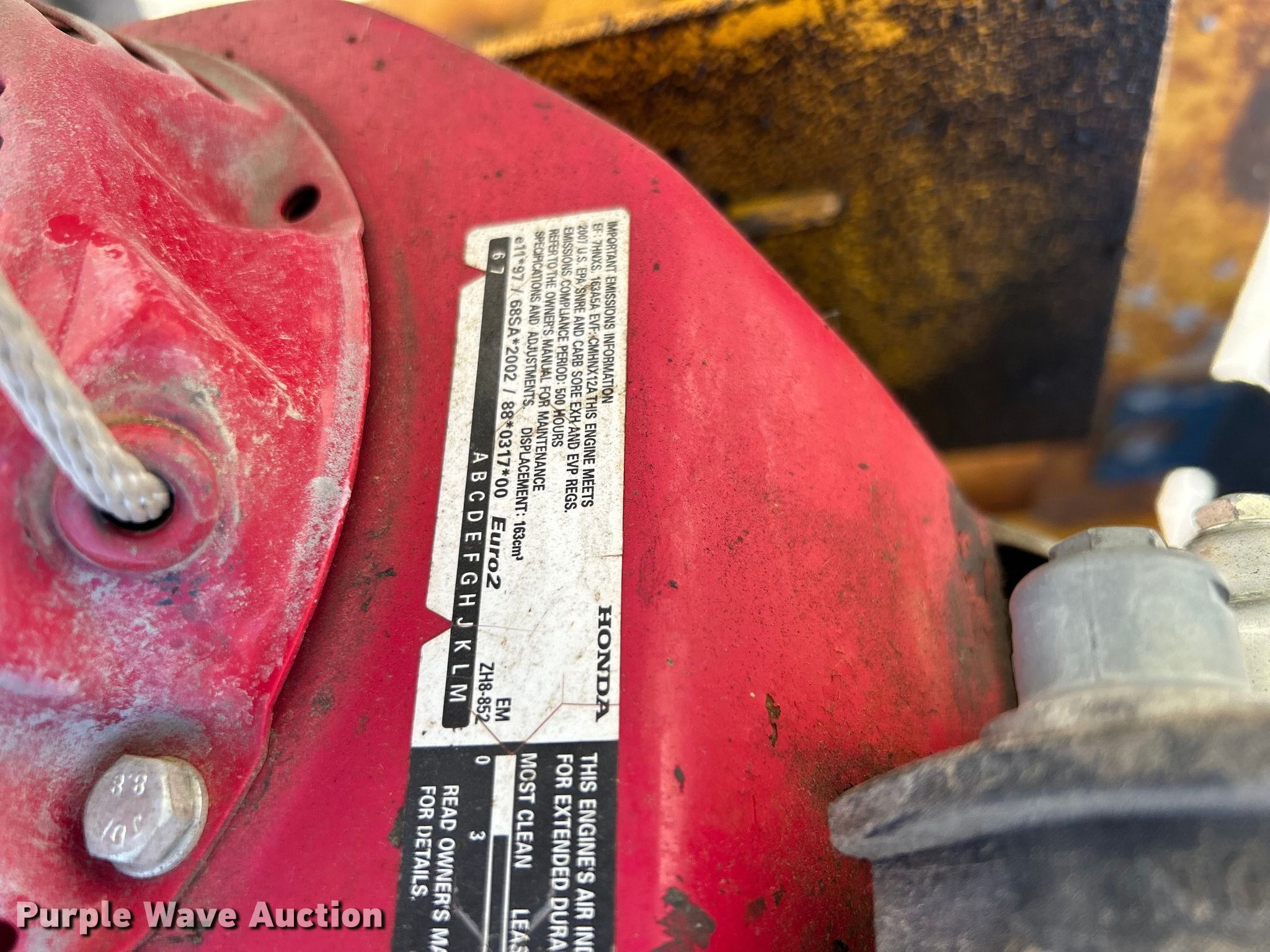 Stone 655PM mortar mixer. Serial: 492007086. Engine Honda, Displacement: 163 cc, Cylinders: 1, Fuel type: Gas. Features Hopper: 24" x 22" x 27". Tires Size: 4.80-12. McCarthy Building Companies Inc. St. Louis, MO 63124