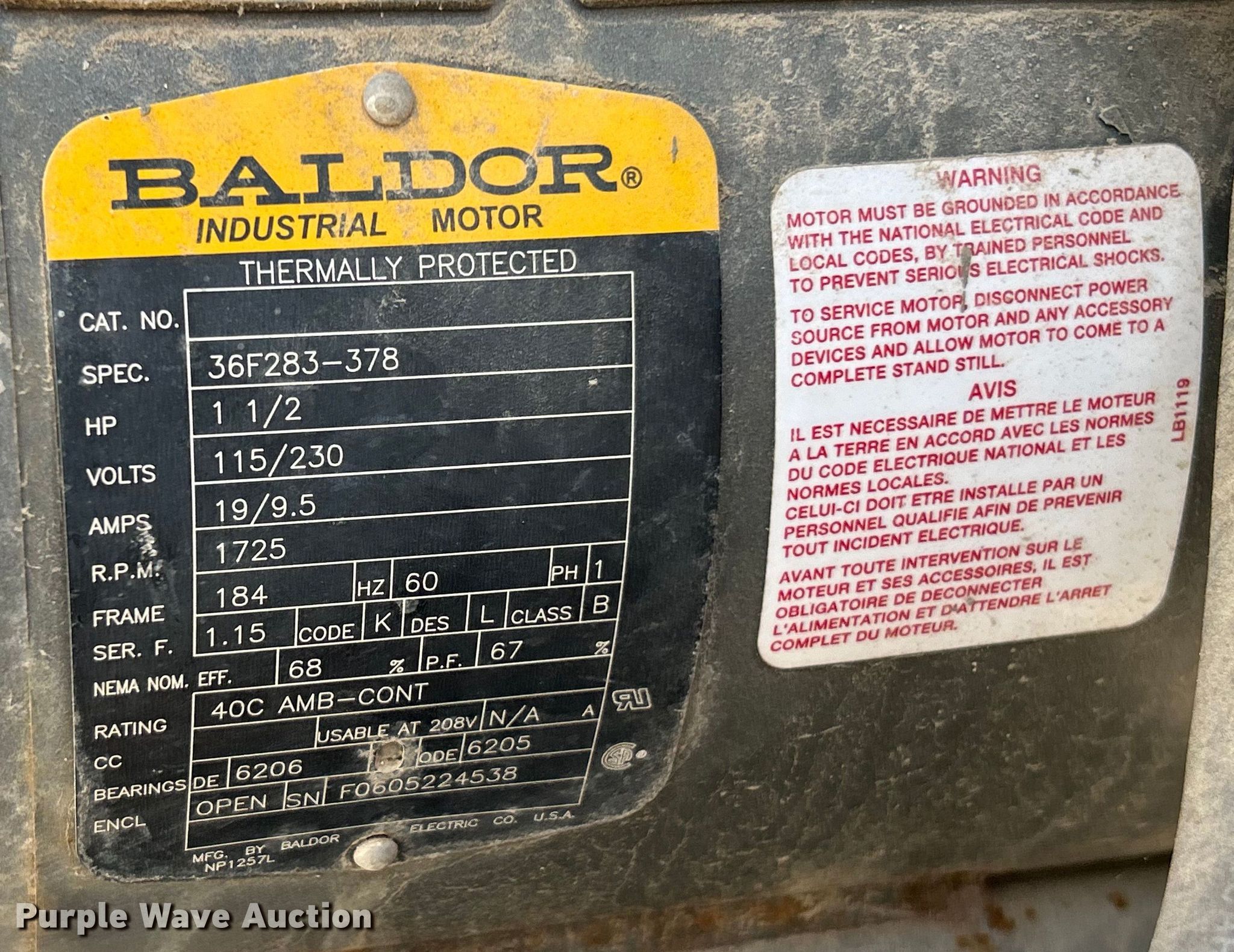 Stone 655PM mortar mixer. Serial: 302006071. Electric Motor Baldor, HP: 1.5, Volts: 115/230, Phase: Single. Features Hopper: 24" x 22" x 27". Tires Size: 4.80-12. McCarthy Building Companies Inc. St. Louis, MO 63124