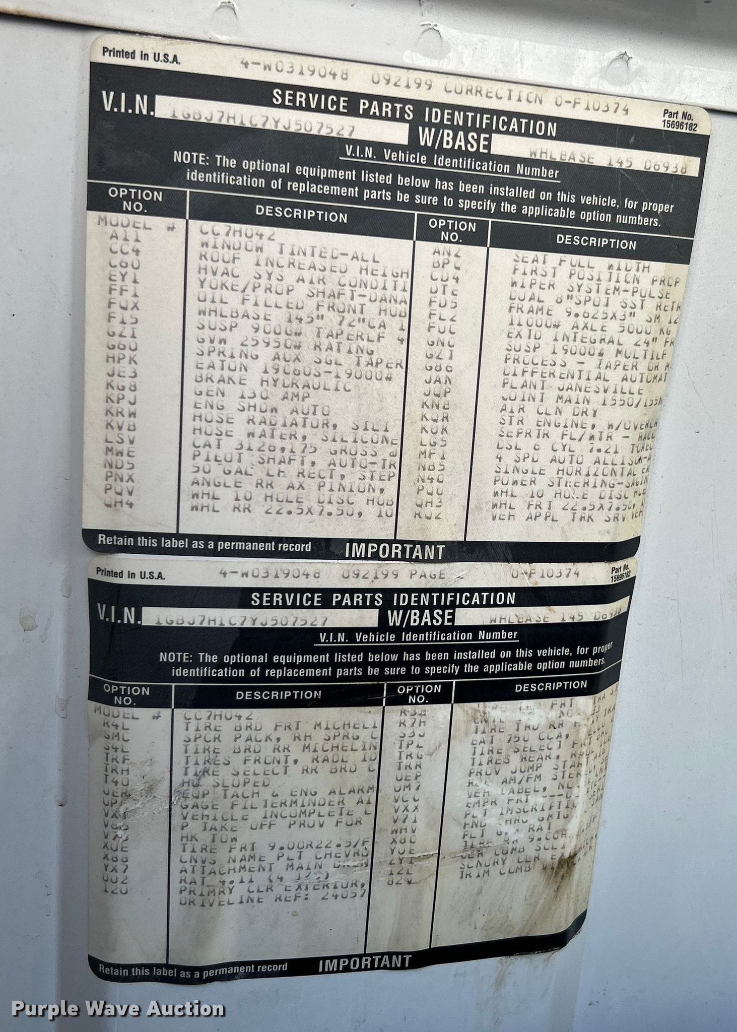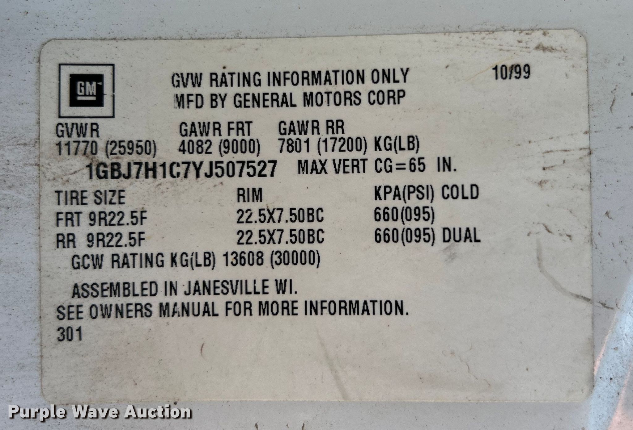 • VIN: 1GBJ7H1C7YJ507527