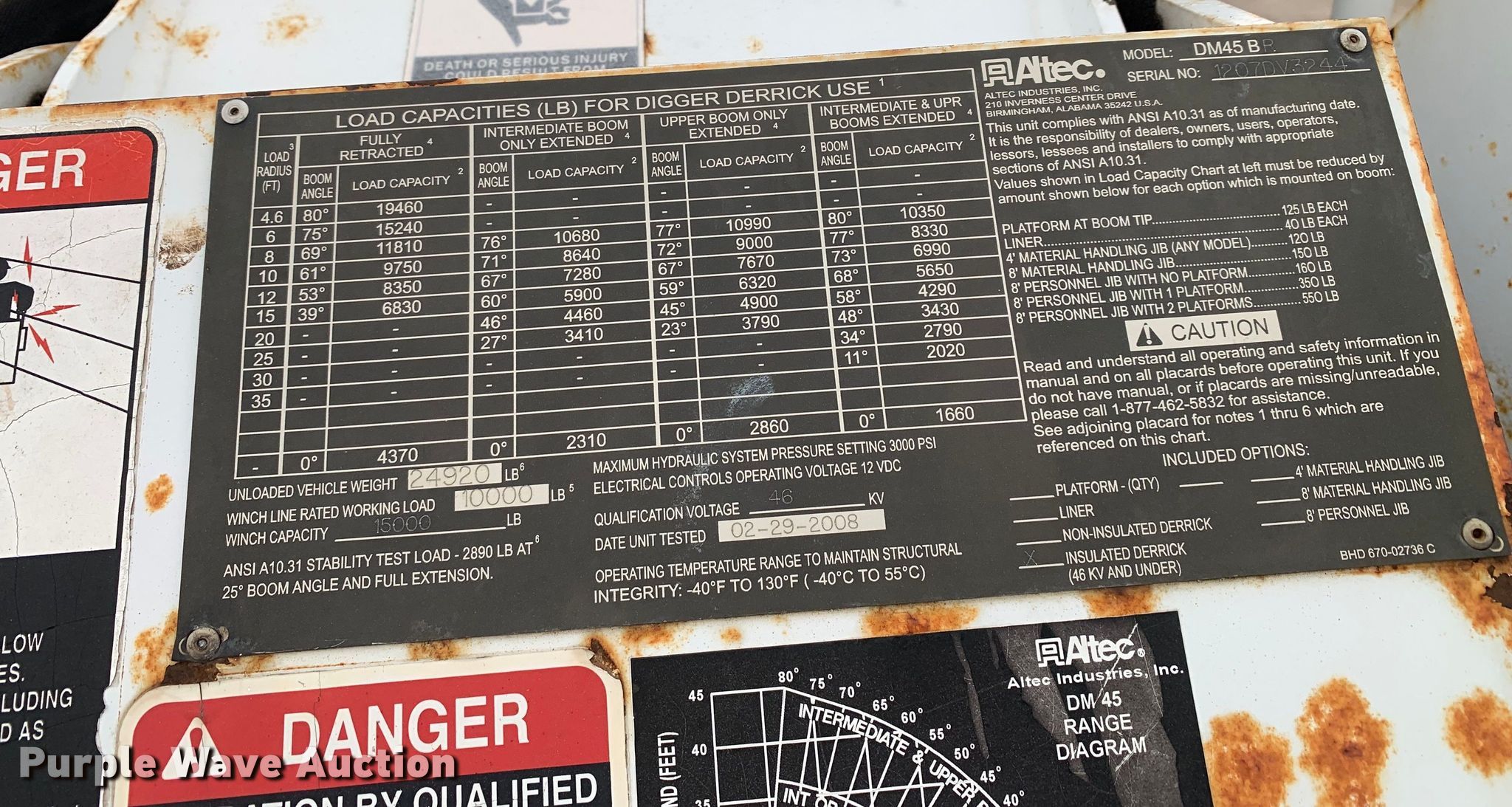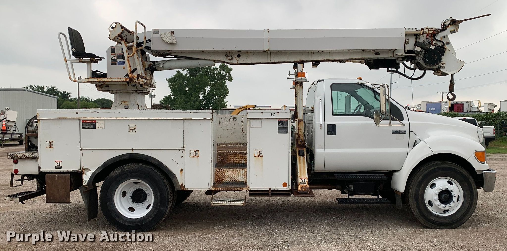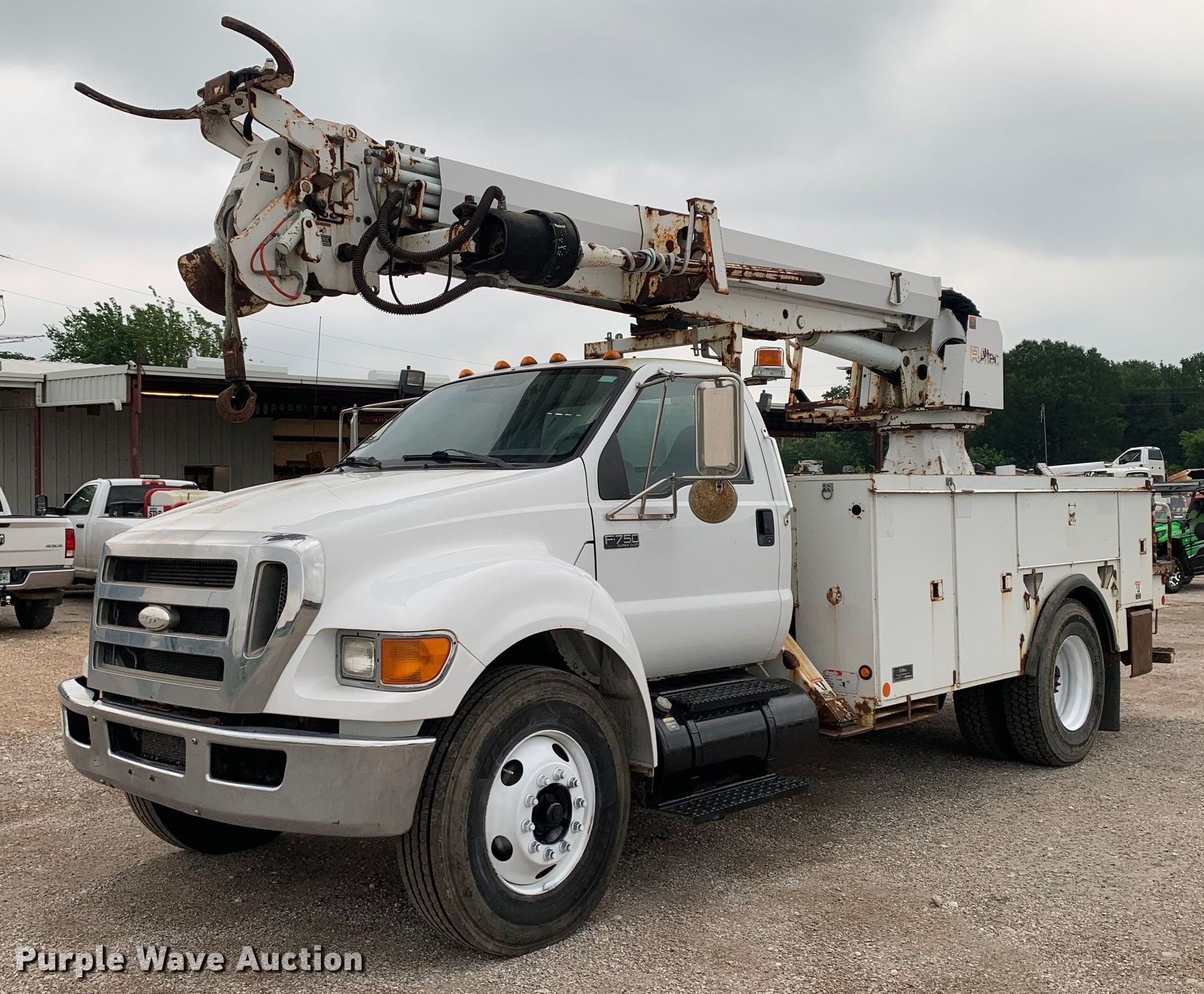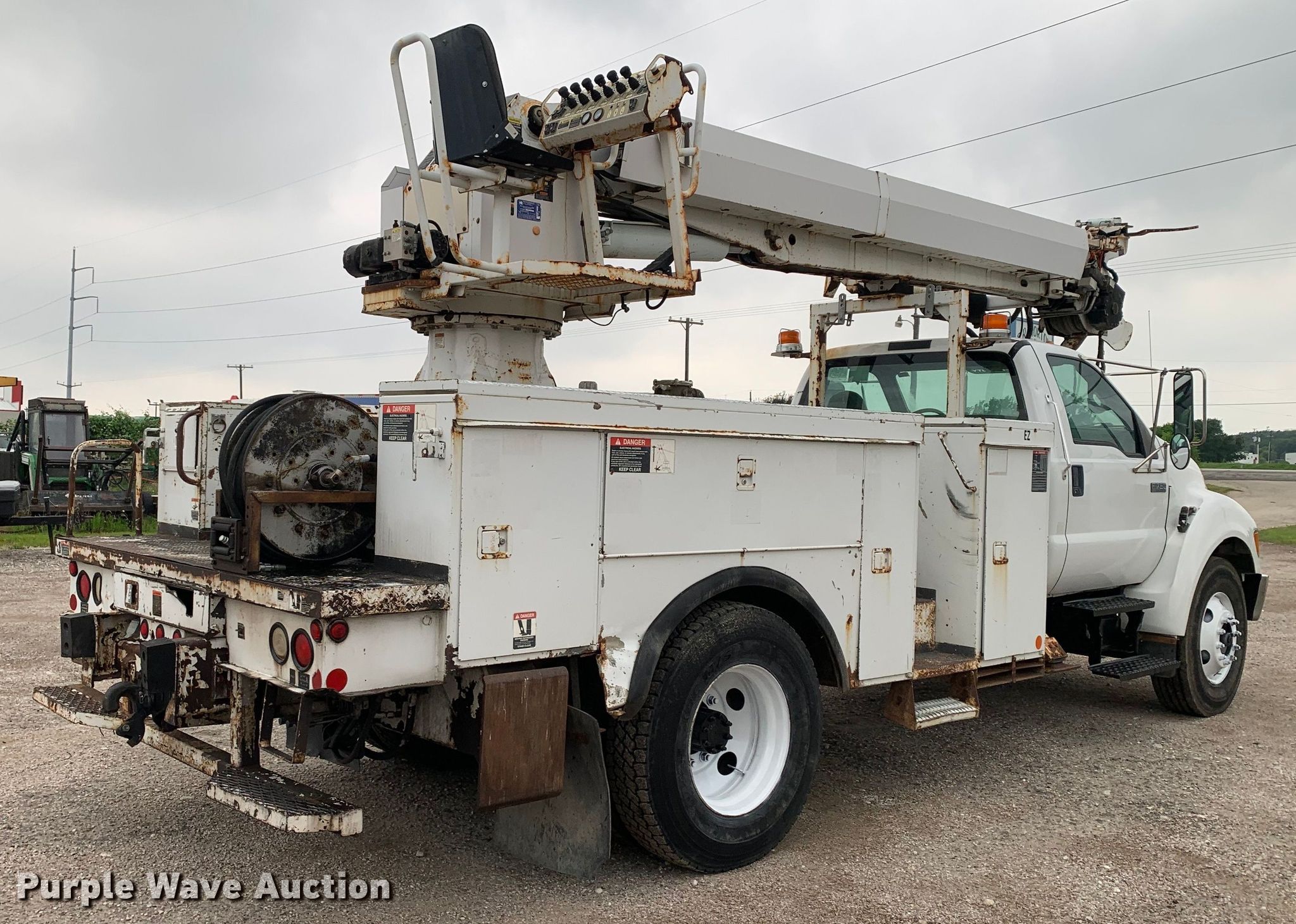 Purple Wave is selling a used Digger Derrick Truck in Texas. This item is a 2008 Ford F750 Super Duty digger derrick truck with the following: Miles: 82,283 on odometer, Hours: 3,334 on meter, VIN: 3FRXF75D28V039468