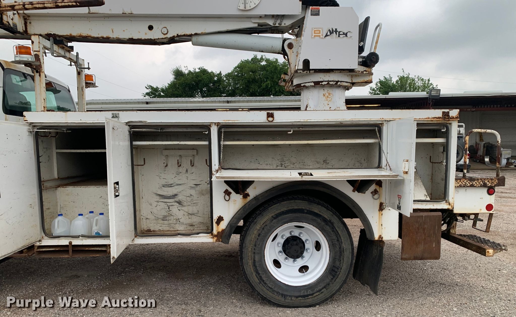 This 2008 Ford F750 Super Duty digger derrick truck will sell to the highest bidder regardless of price.