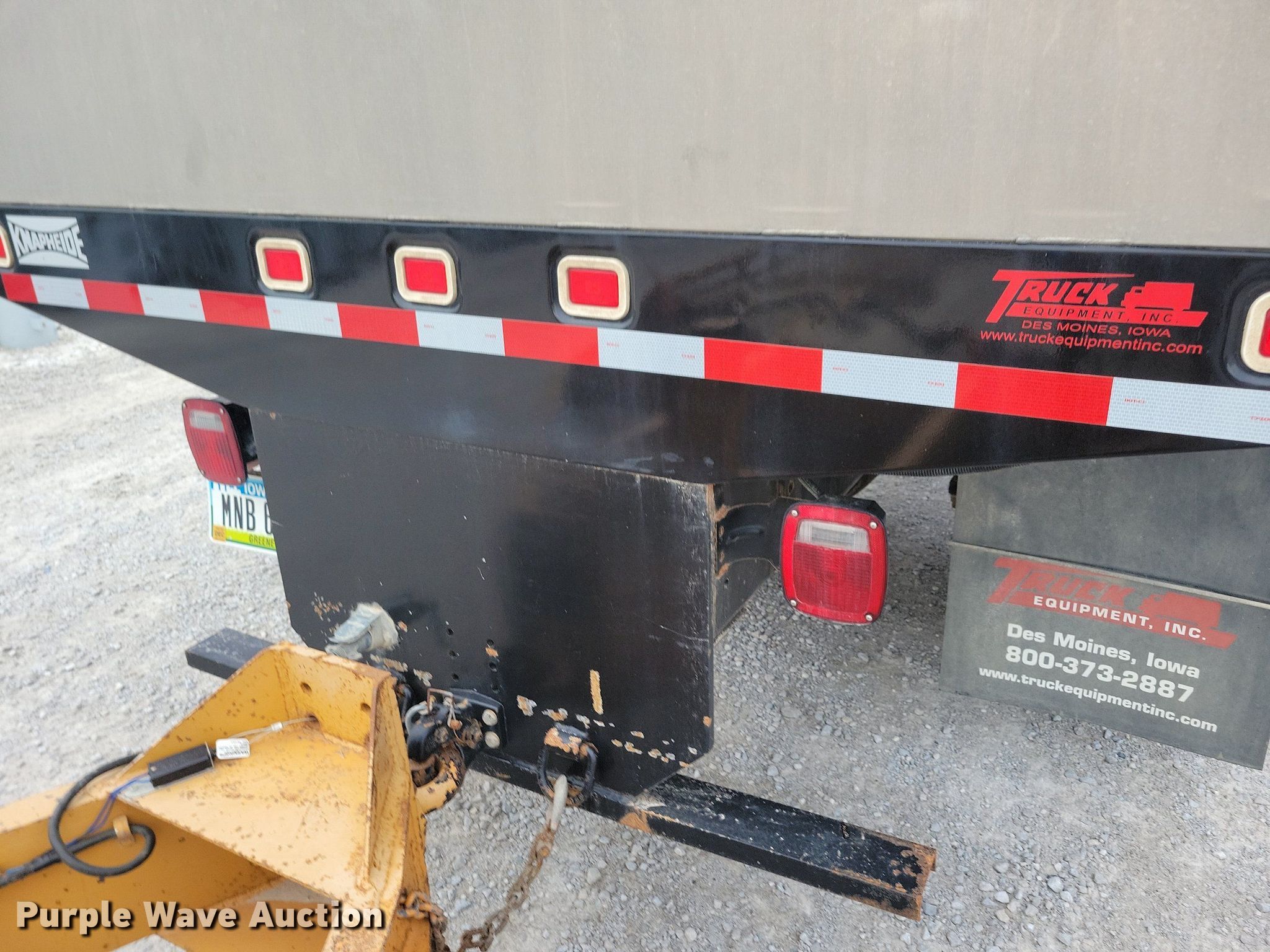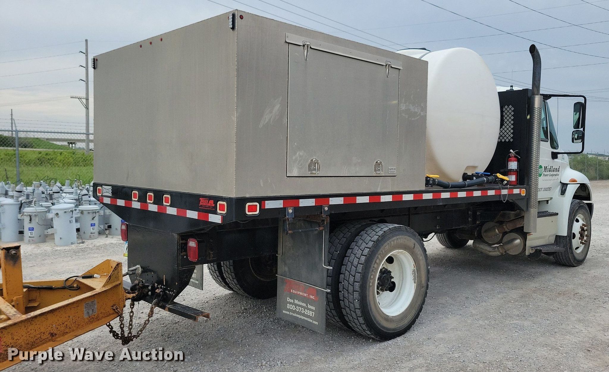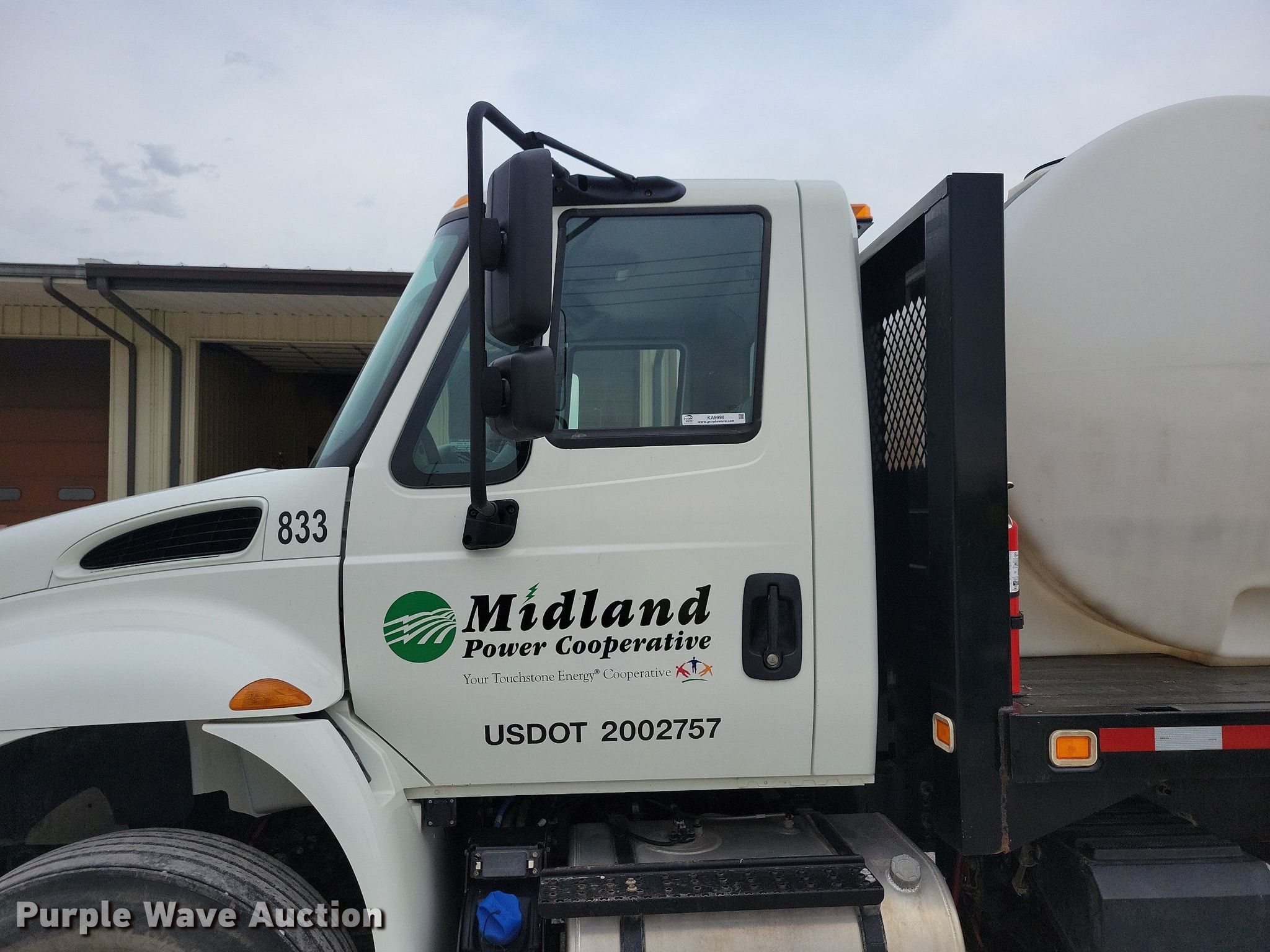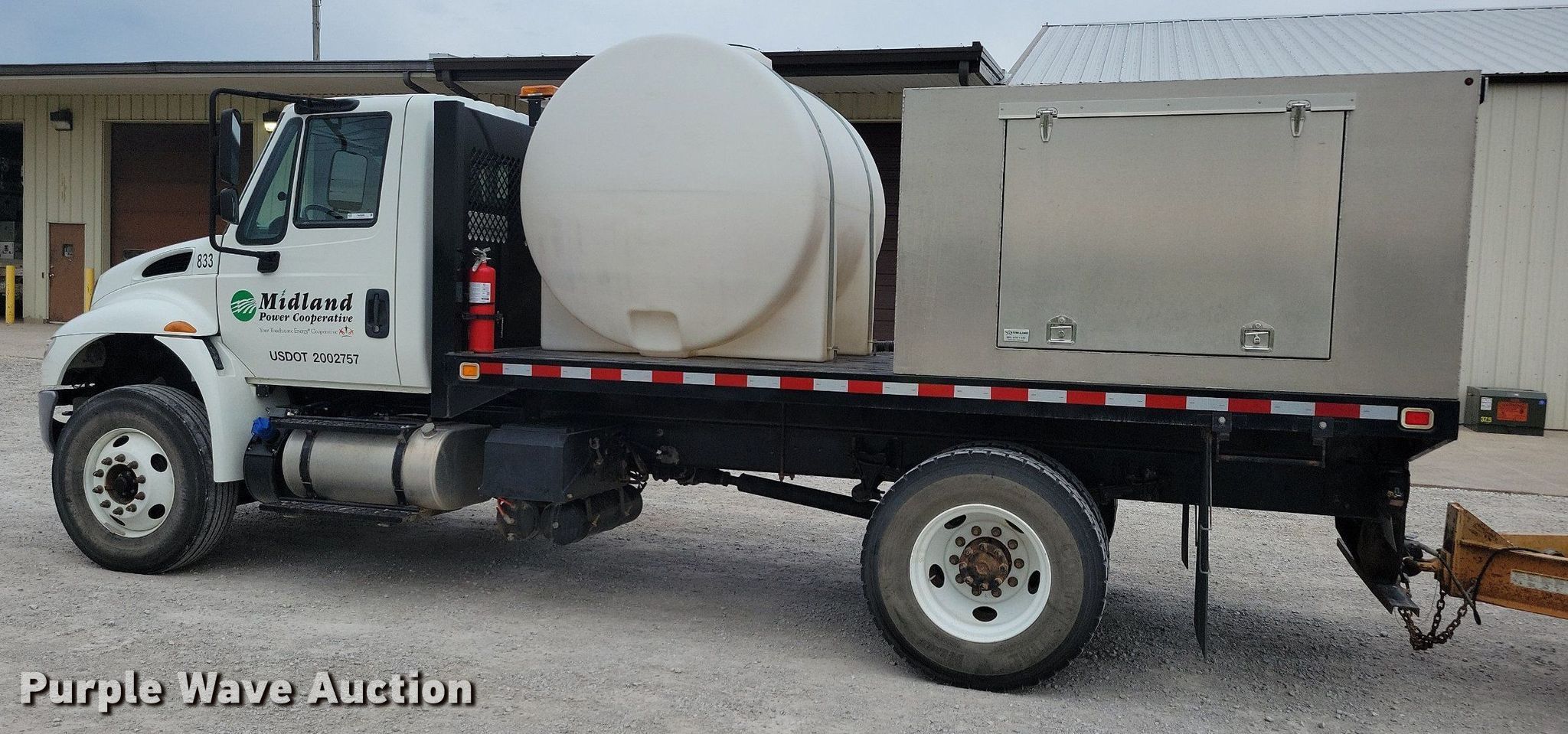 2017 International 4400 flatbed truck. Miles: 34,974 on odometer, Hours: 1,748 on meter, VIN: 1HTMKSTNXHH754084. Engine International S315, Displacement: 9.3L, Cylinders: 6, Fuel type: Diesel. Transmission Allison, Automatic. Chassis Axles: Single, Suspension: Spring, Brakes: Air, GVWR: 33,000 lbs. Interior AC, Heat, Cruise control, Brake controller. Features Flatbed Knapheide PVMX-143C, Serial: 20160412, 14' 3" L x 96" W, Poly tank Capacity: 1,000 gallons, Alum-Line storage box. Tires Size: 11R22.5. Notes Alum-Line storage box contents not included, Windshield chipped or cracked. Iowa title. Midland Power Cooperative. Boone, IA 50036
