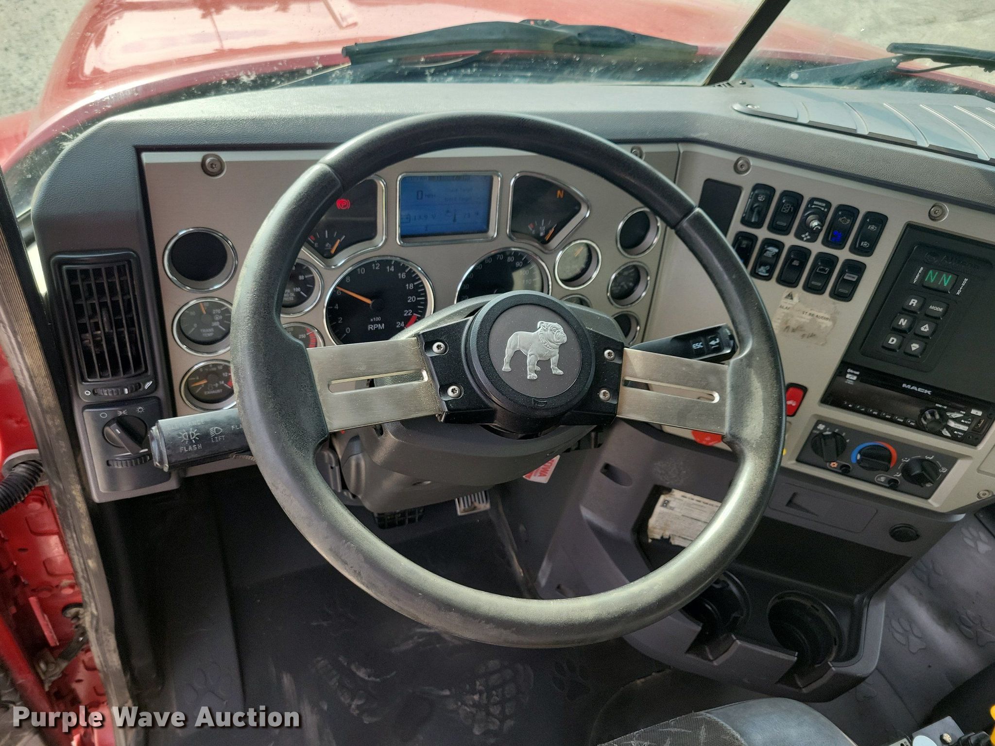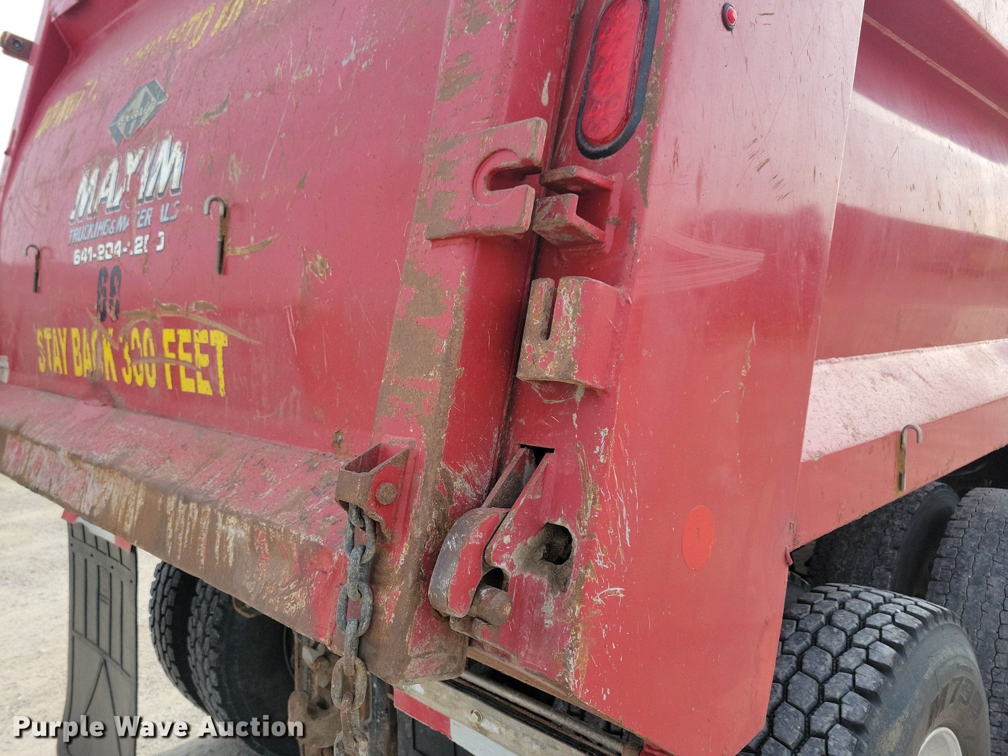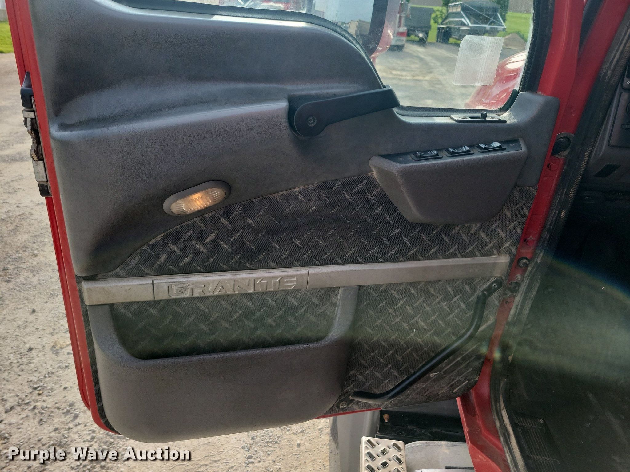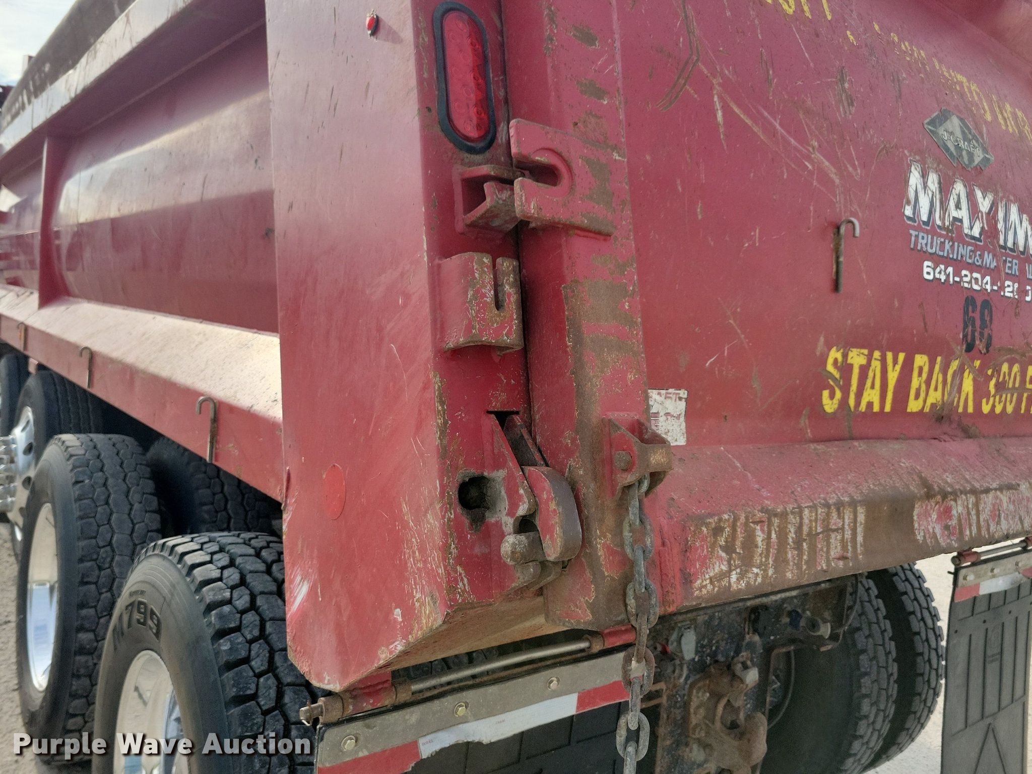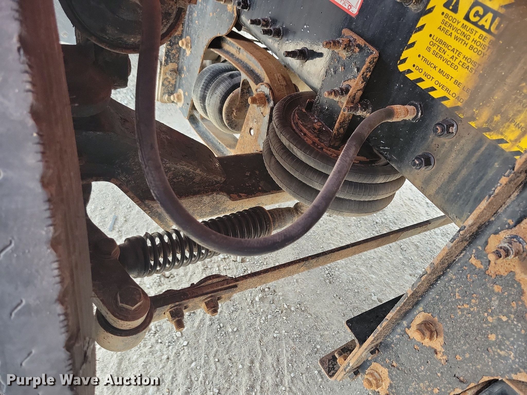 2018 Mack GU713 dump truck. Miles: 318,887 on odometer, Miles or hours may vary, unit still in use, Hours: 12,405 on meter, VIN: 1M2AX04C7JM037430. Engine Mack MP-7, Serial: 590496, Displacement: 10.8L, Cylinders: 6, Fuel type: Diesel, HP: 425, Engine brake. Transmission Allison, Automatic. Chassis Axles: 4, Pusher axle Steerable, Differential lock: Inter-axle, Suspension: Camelback, Brakes: Air, PTO, GVWR: 56,000 lbs FAWR: 18,000 lbs, IAWR: 19,000 lbs, RAWR: 19,000 lbs. Interior AC, Heat, Heated mirrors, Power windows, Cruise control, Brake controller. Features Dump bed J Craft, 19' L x 96" W, Side height: 42", Side board height: 8", Bed type: Steel, Bed vibrator, Ram: Single, End gate: Air operated, Double wall. Tires Front: 425/65R22.5, Rear: 11R22.5, Lift axle: 255/70R22.5. Notes Non-operational bed vibrator. Iowa title. TK Concrete Inc. Pella, IA 50219