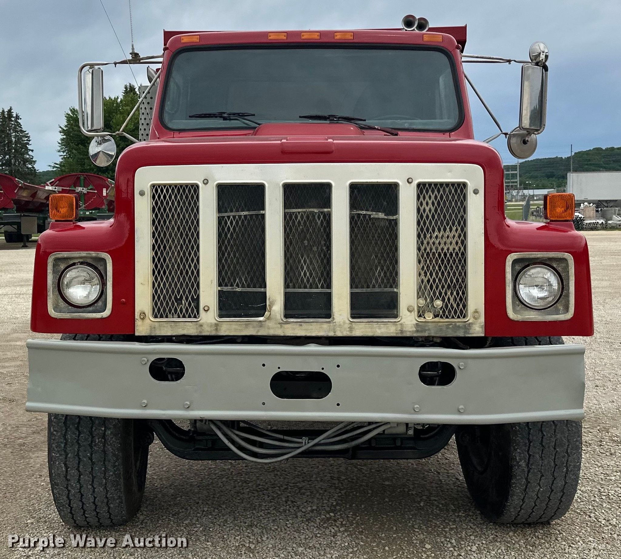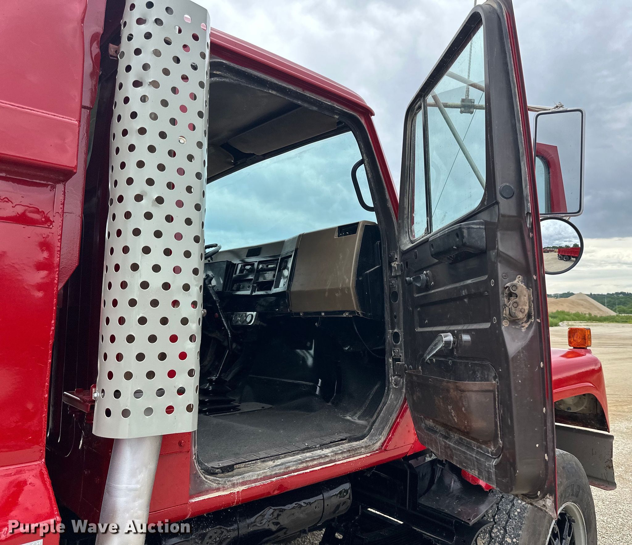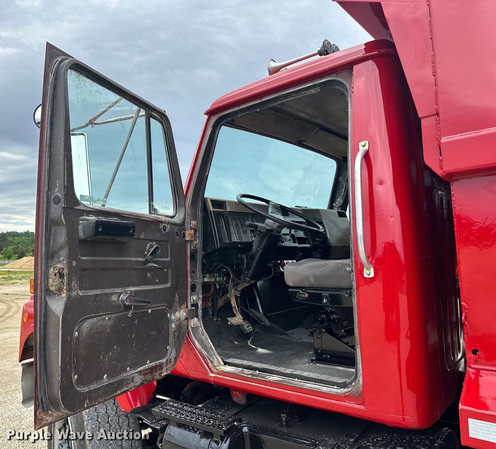1993 International 2554 dump truck. Miles: 702,089 on odometer, Hours: 51,768 on meter, VIN: 1HTGCPCT8PH478332. Engine International, Displacement: 7.6L, Cylinders: 6, Fuel type: Diesel. Transmission Eaton Fuller Roadranger, Manual, Speed: 8. Chassis Double frame, Axles: Tandem, Differential lock: Inter-axle, Suspension: Spring over walking beam, Brakes: Air, PTO. Interior Heat. Features Dump bed 15' 11" L x 8' W, Side height: 36", Side board height: 12", Bed type: Steel, Ram: Single, End gate: Air operated. Tires Front: 385/65R22.5, Rear: 11R22.5. Iowa title. Title distribution may be delayed up to 14 days from verification of funds. Bruening Rock Products Inc.. Decorah, IA 52101