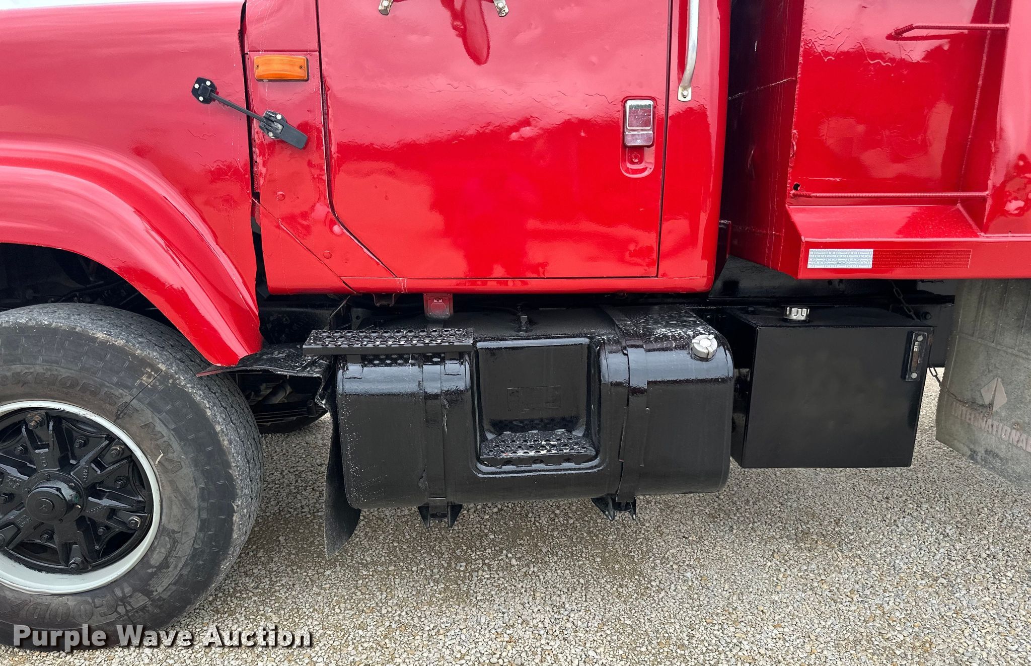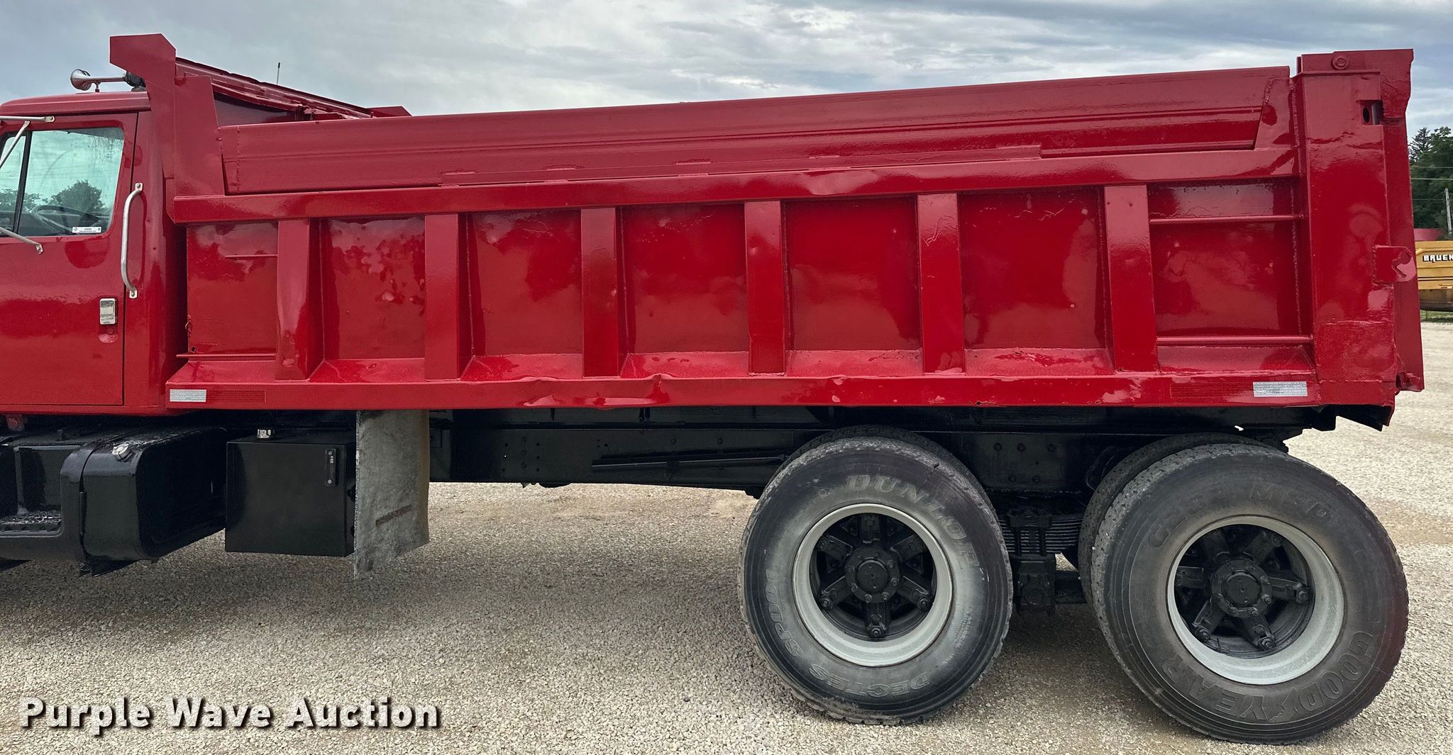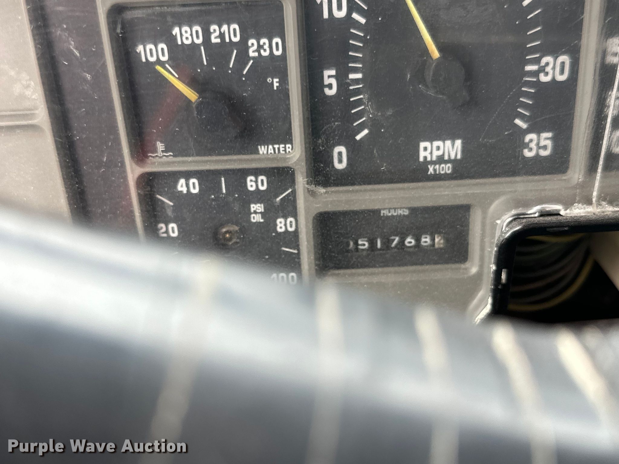 1993 International 2554 dump truck. Miles: 702,089 on odometer, Hours: 51,768 on meter, VIN: 1HTGCPCT8PH478332. Engine International, Displacement: 7.6L, Cylinders: 6, Fuel type: Diesel. Transmission Eaton Fuller Roadranger, Manual, Speed: 8. Chassis Double frame, Axles: Tandem, Differential lock: Inter-axle, Suspension: Spring over walking beam, Brakes: Air, PTO. Interior Heat. Features Dump bed 15' 11" L x 8' W, Side height: 36", Side board height: 12", Bed type: Steel, Ram: Single, End gate: Air operated. Tires Front: 385/65R22.5, Rear: 11R22.5. Iowa title. Title distribution may be delayed up to 14 days from verification of funds. Bruening Rock Products Inc.. Decorah, IA 52101