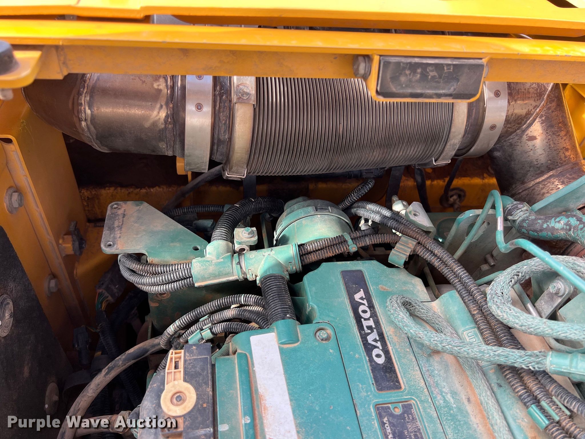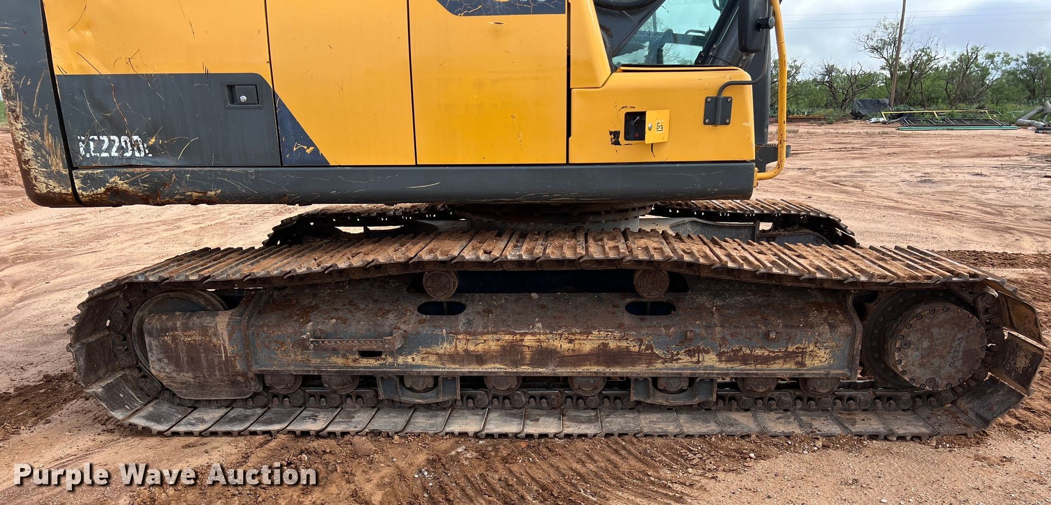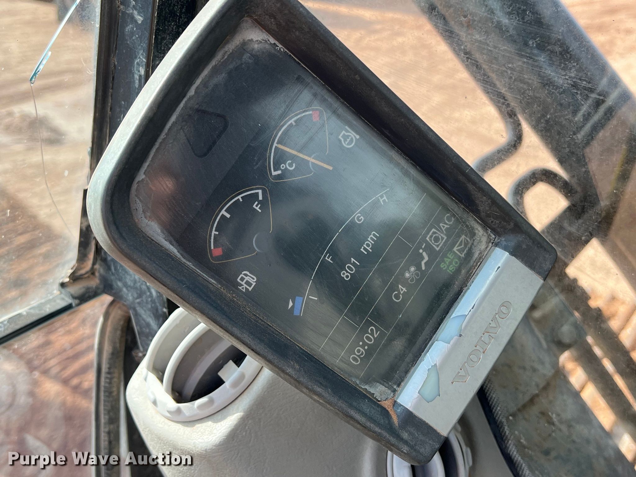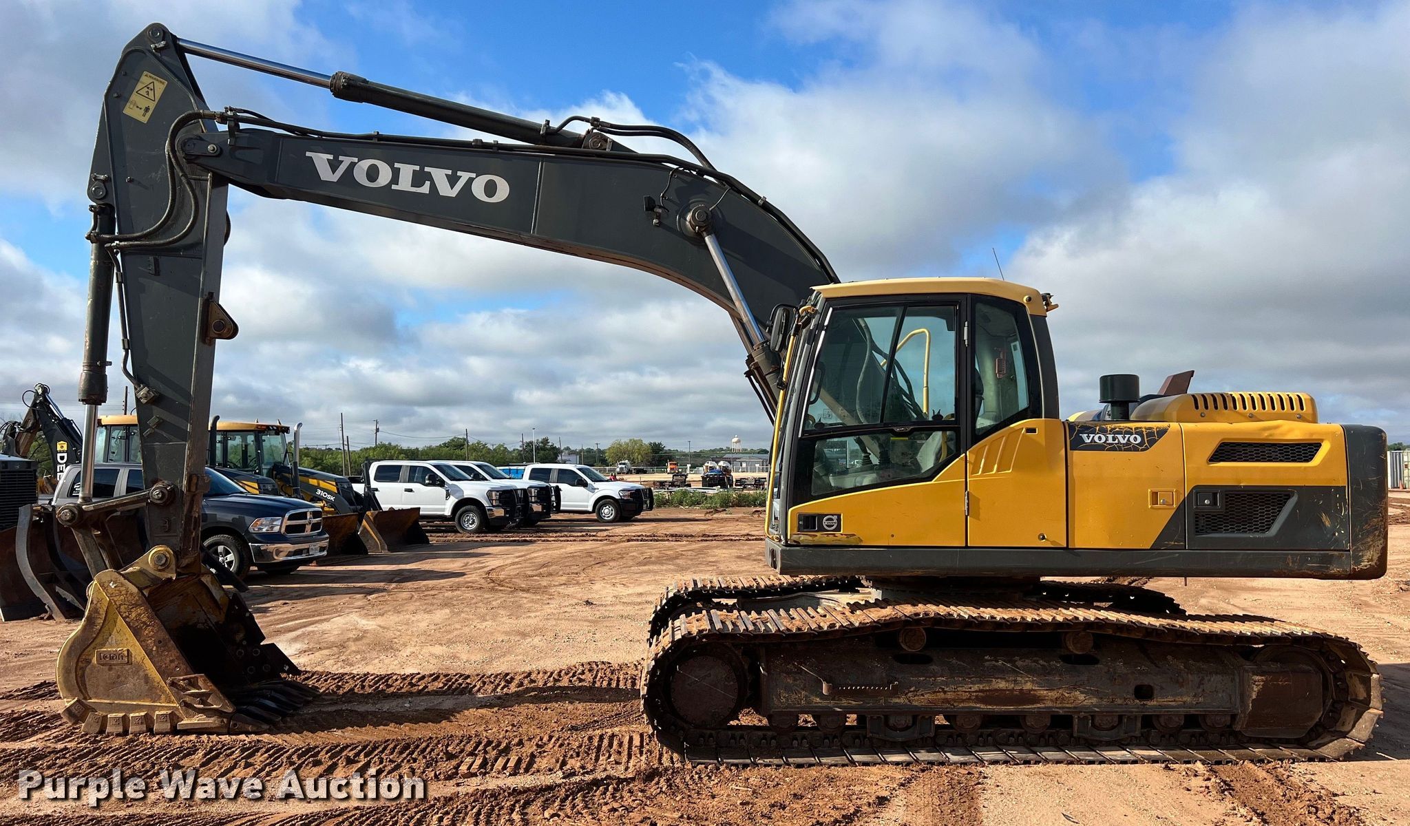 2012 Volvo EC220DL excavator. Hours: 7,257 on meter, Serial: VCEC220DA00210191. Engine Volvo D6H, Serial: 11242453, Displacement: 5.702L, Cylinders: 6, Fuel type: Diesel, HP: 173. Transmission Hydrostatic, Two speed travel. Operators station Enclosed cab, AC, Heat, Pattern changer. Features Auxiliary hydraulics, Boom Standard, Stick Stick length: 9' 6", Bucket Teran PC220, Capacity: 1.16 cu.yd., Width: 48", Teeth: 6. Tracks Width: 32", Steel, Grouser pads: Triple. Notes Glass cracked, Fuel gauge needle missing. Caliper Energy Services. Snyder, TX 79549