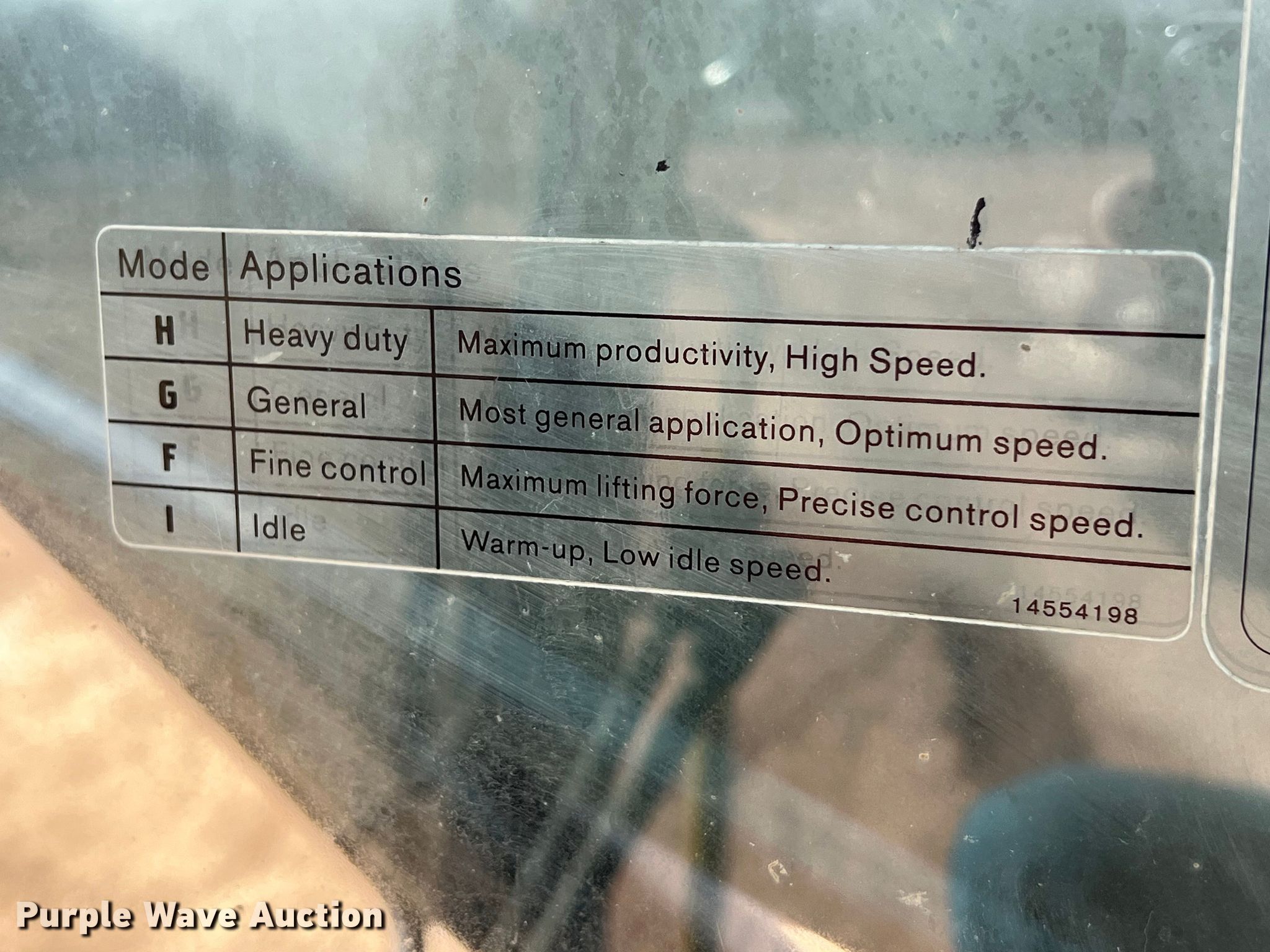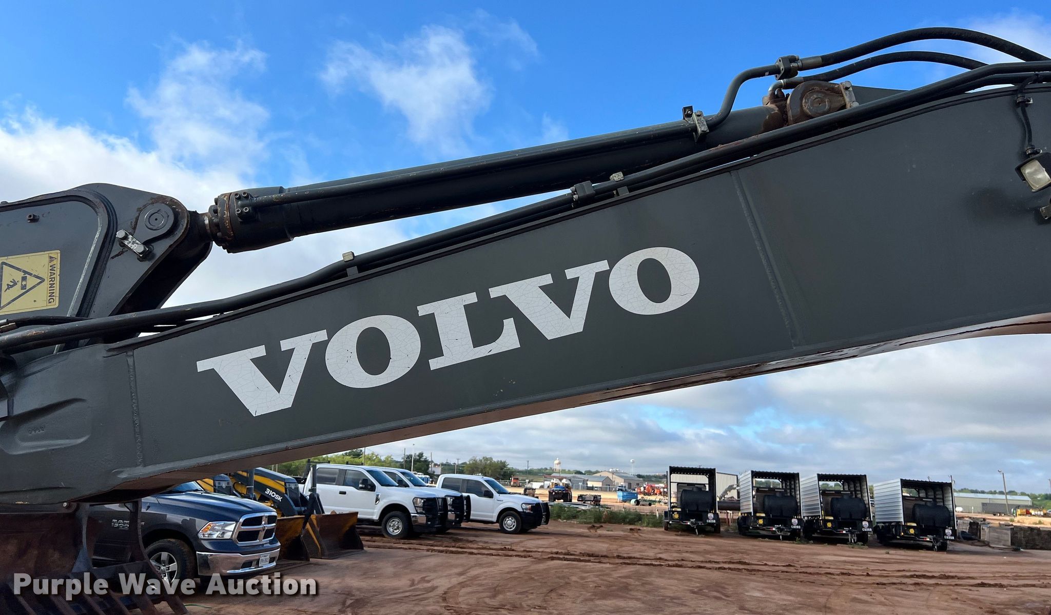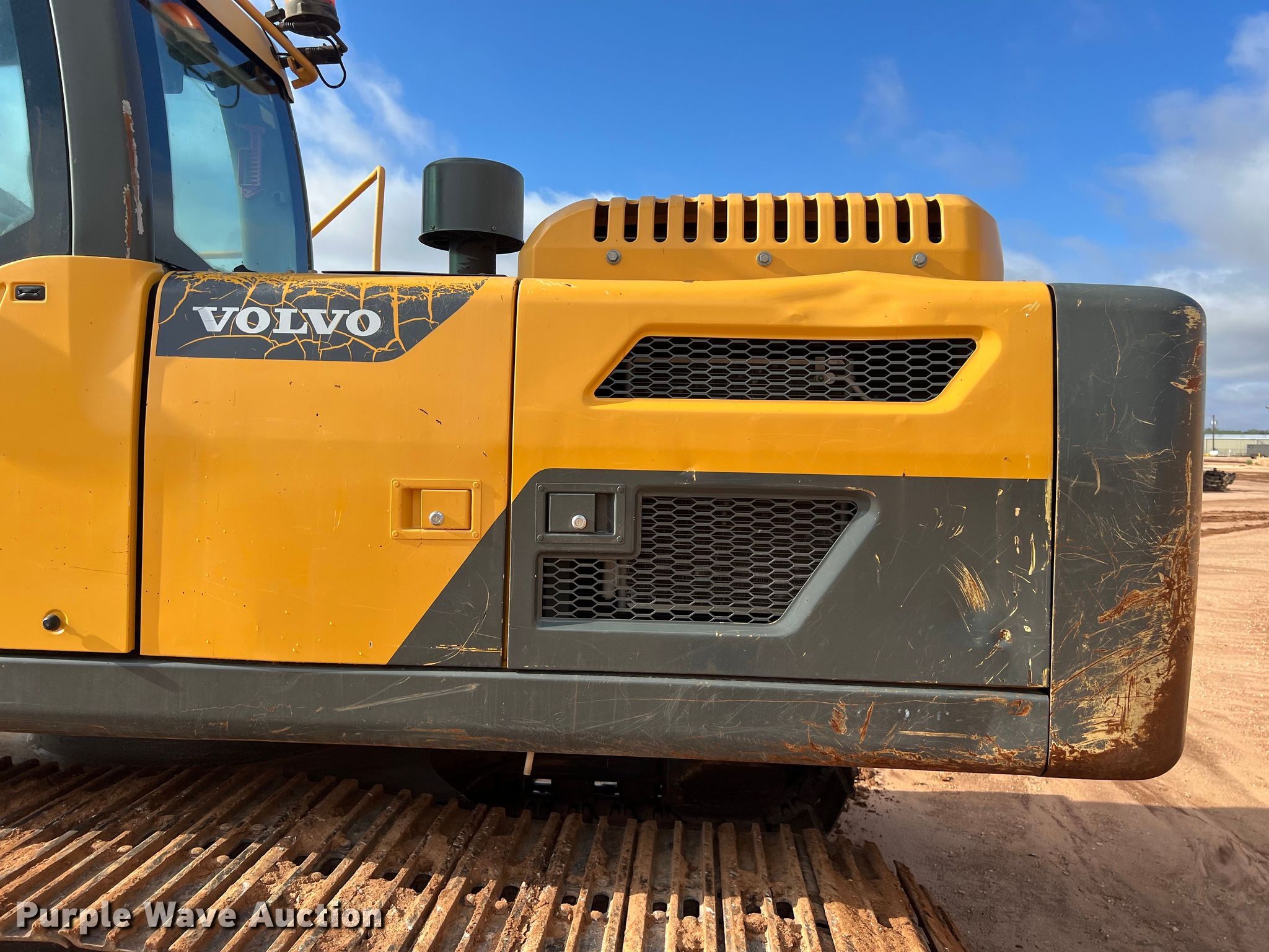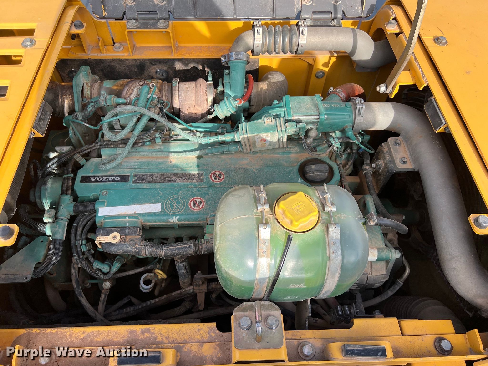 2012 Volvo EC220DL excavator. Hours: 7,257 on meter, Serial: VCEC220DA00210191. Engine Volvo D6H, Serial: 11242453, Displacement: 5.702L, Cylinders: 6, Fuel type: Diesel, HP: 173. Transmission Hydrostatic, Two speed travel. Operators station Enclosed cab, AC, Heat, Pattern changer. Features Auxiliary hydraulics, Boom Standard, Stick Stick length: 9' 6", Bucket Teran PC220, Capacity: 1.16 cu.yd., Width: 48", Teeth: 6. Tracks Width: 32", Steel, Grouser pads: Triple. Notes Glass cracked, Fuel gauge needle missing. Caliper Energy Services. Snyder, TX 79549