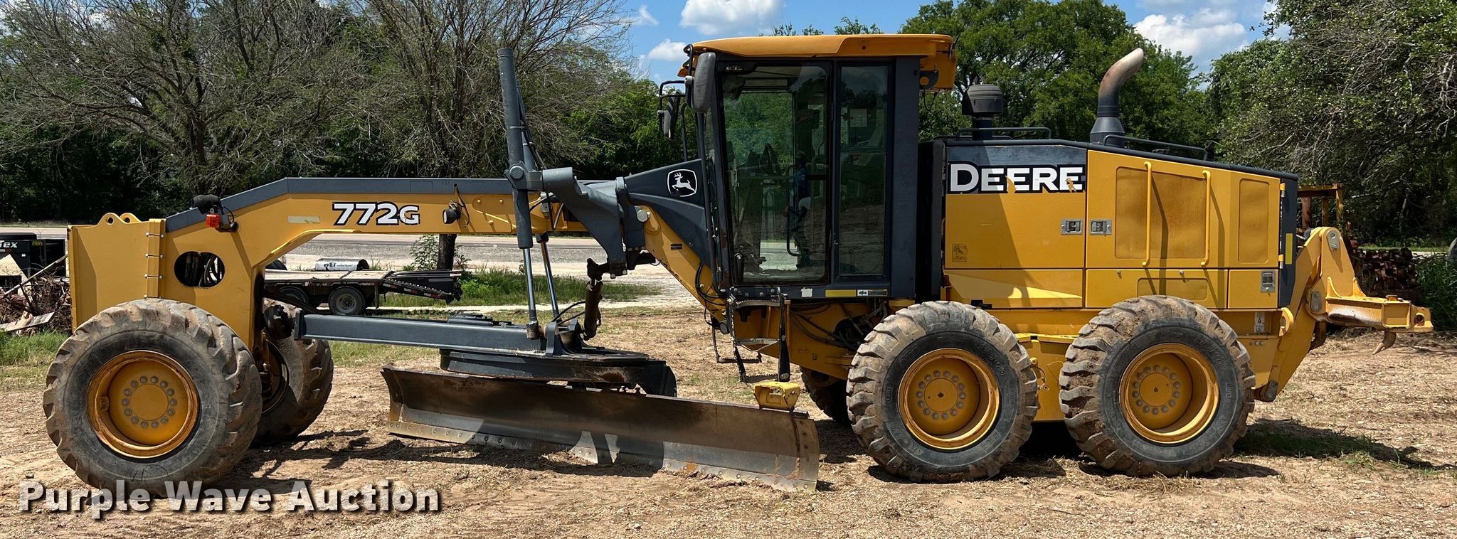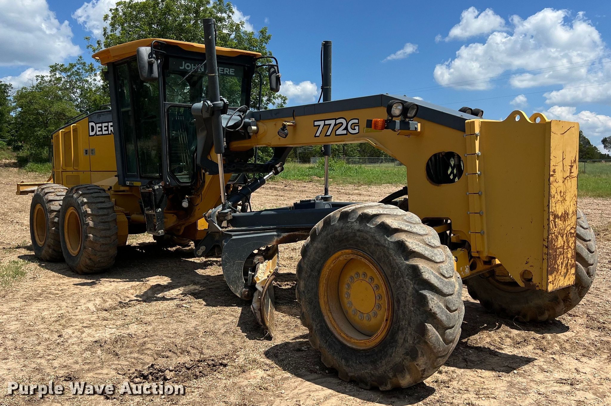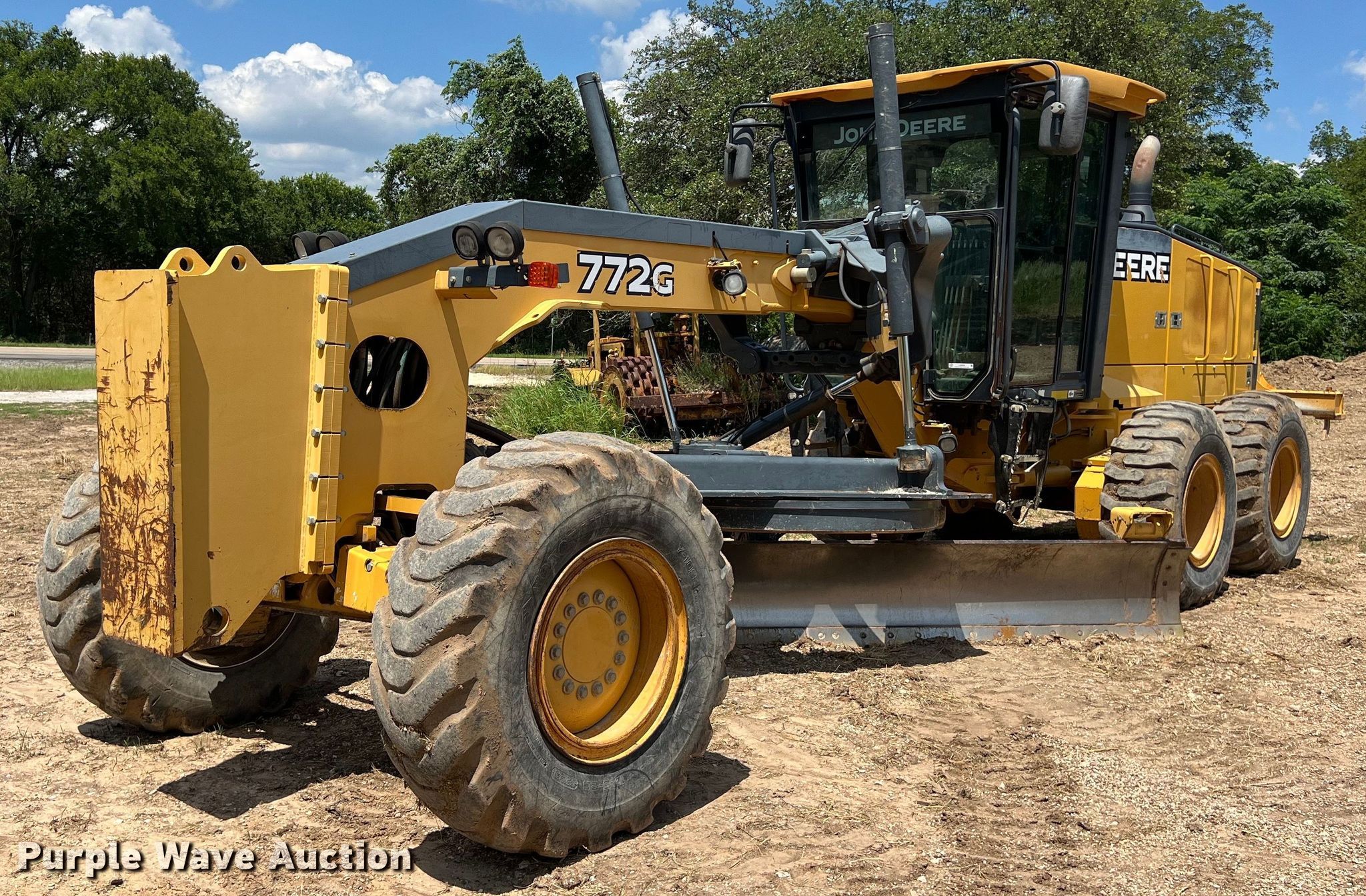 Purple Wave is selling a used Motor Grader in Texas. This item is a 2011 John Deere 772G motor grader with the following: Hours: 8,977 on meter, Serial: 1DW772GXCBE638220