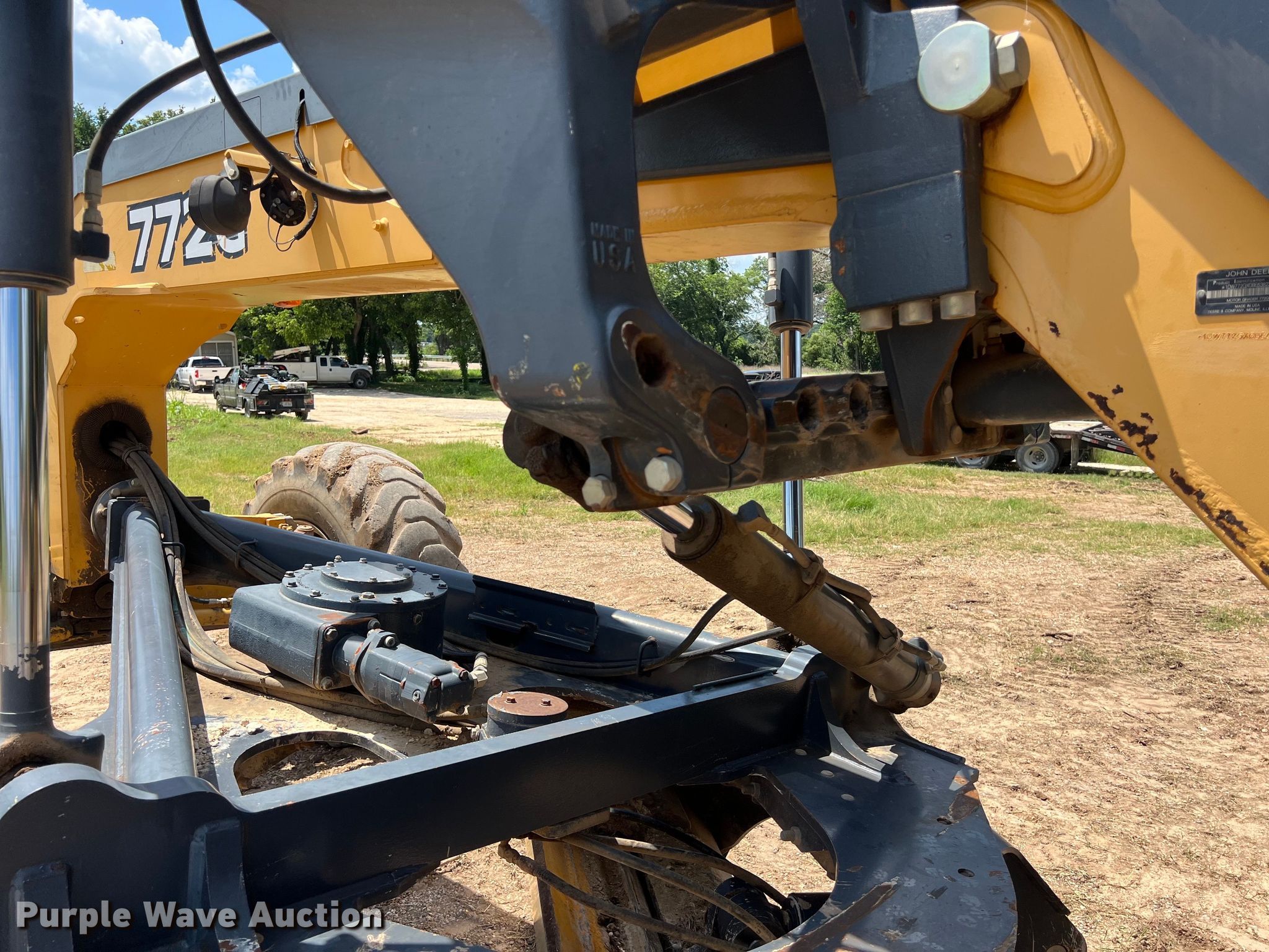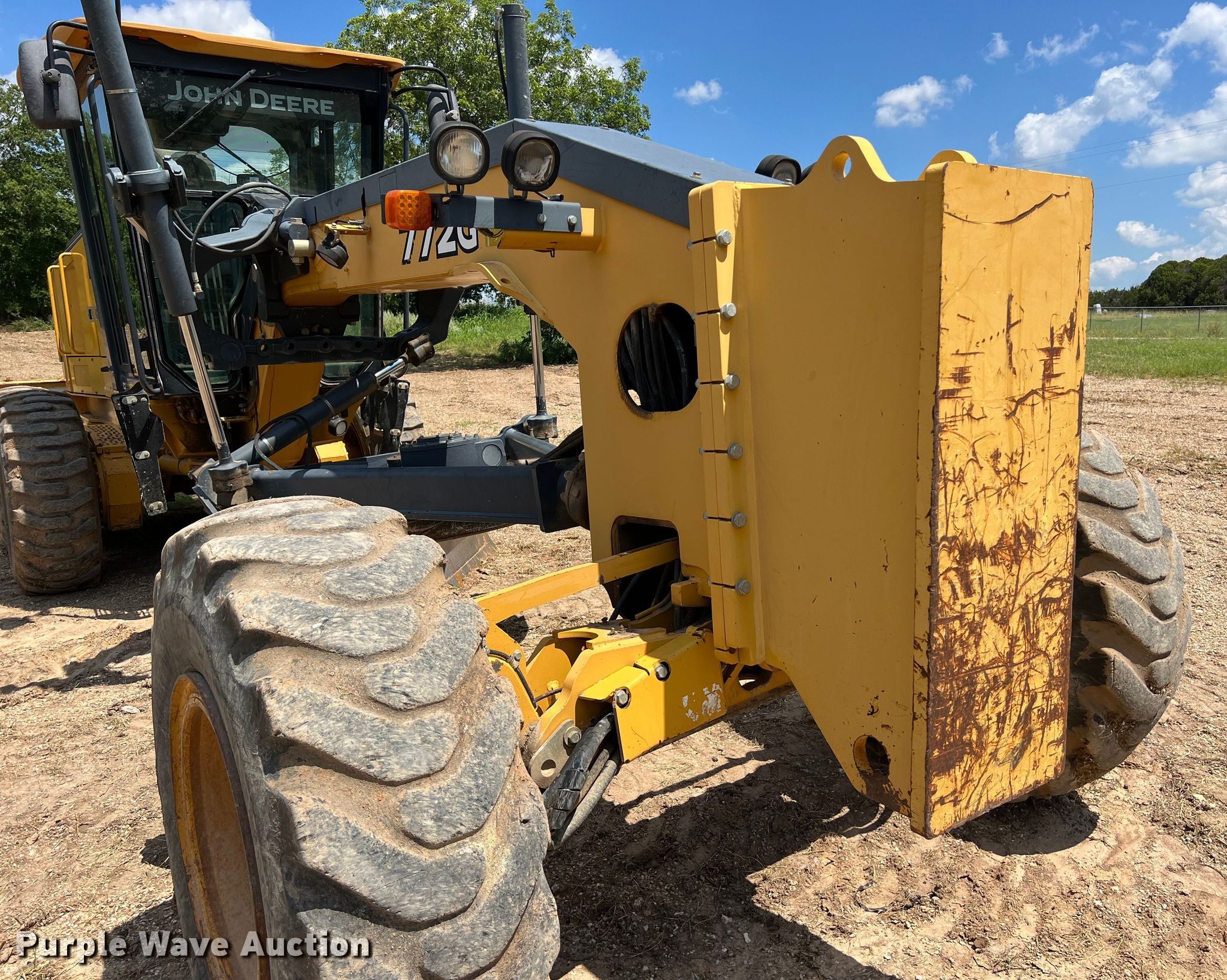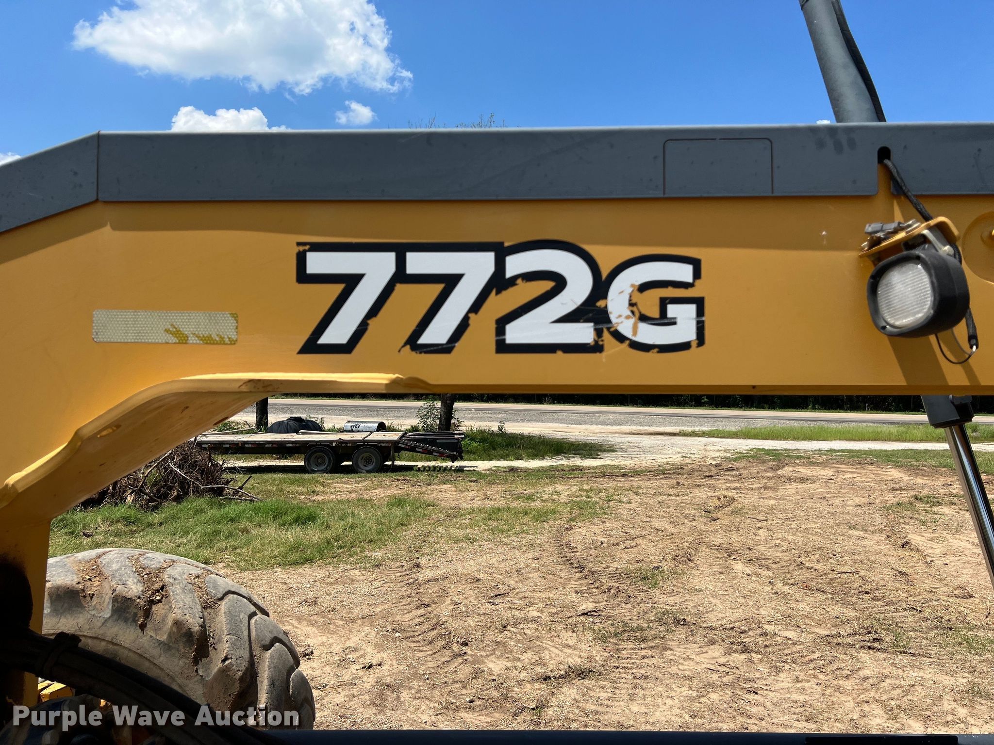 Purple Wave is selling a used Motor Grader in Texas. This item is a 2011 John Deere 772G motor grader with the following: Hours: 8,977 on meter, Serial: 1DW772GXCBE638220