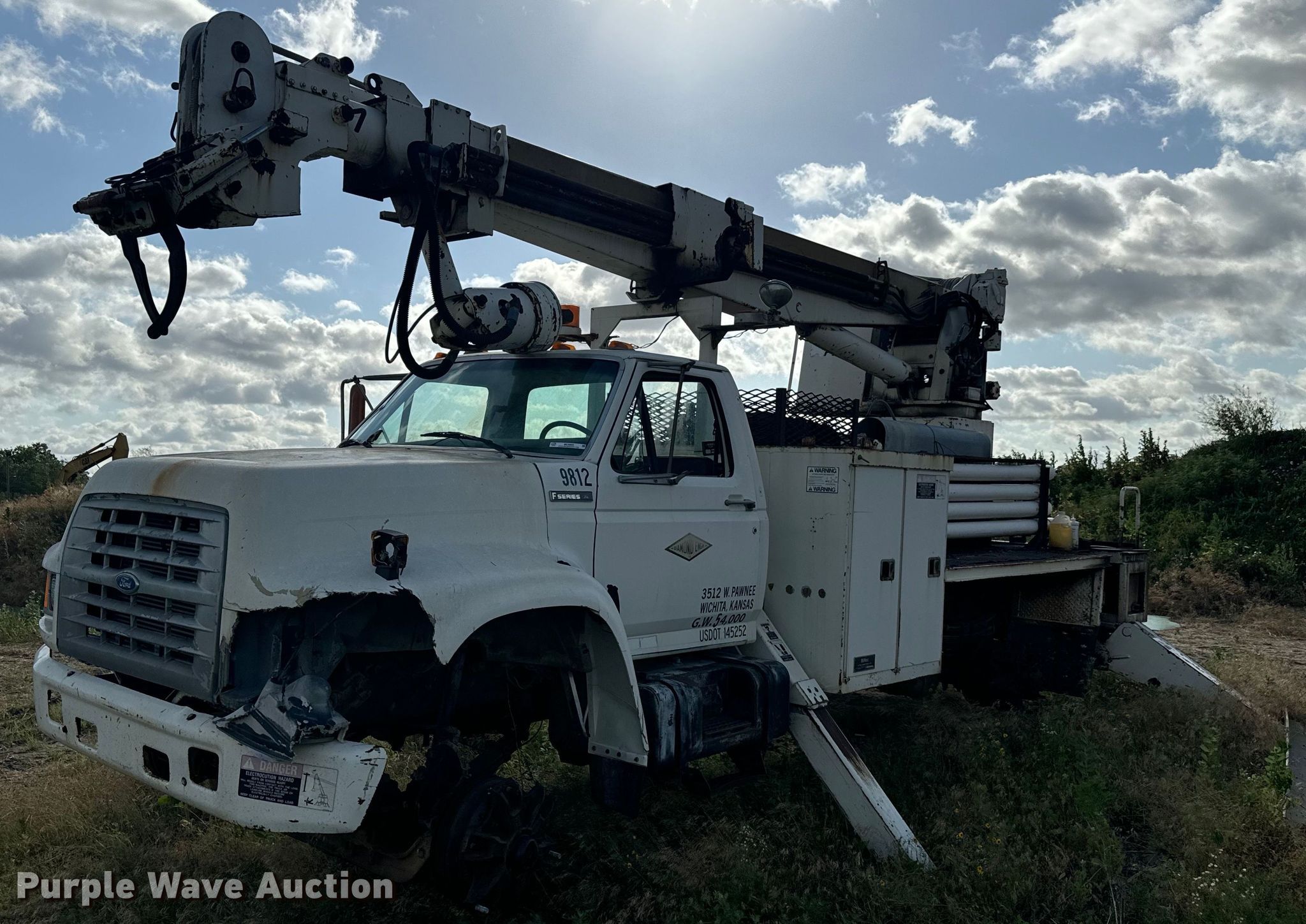 Purple Wave is selling a used Digger Derrick Truck in Kansas. This item is a 1995 Ford F800 digger derrick truck with the following: Miles: 192,409 on odometer, VIN: 1FDYF80C3SVA40374, Unit #: 9812