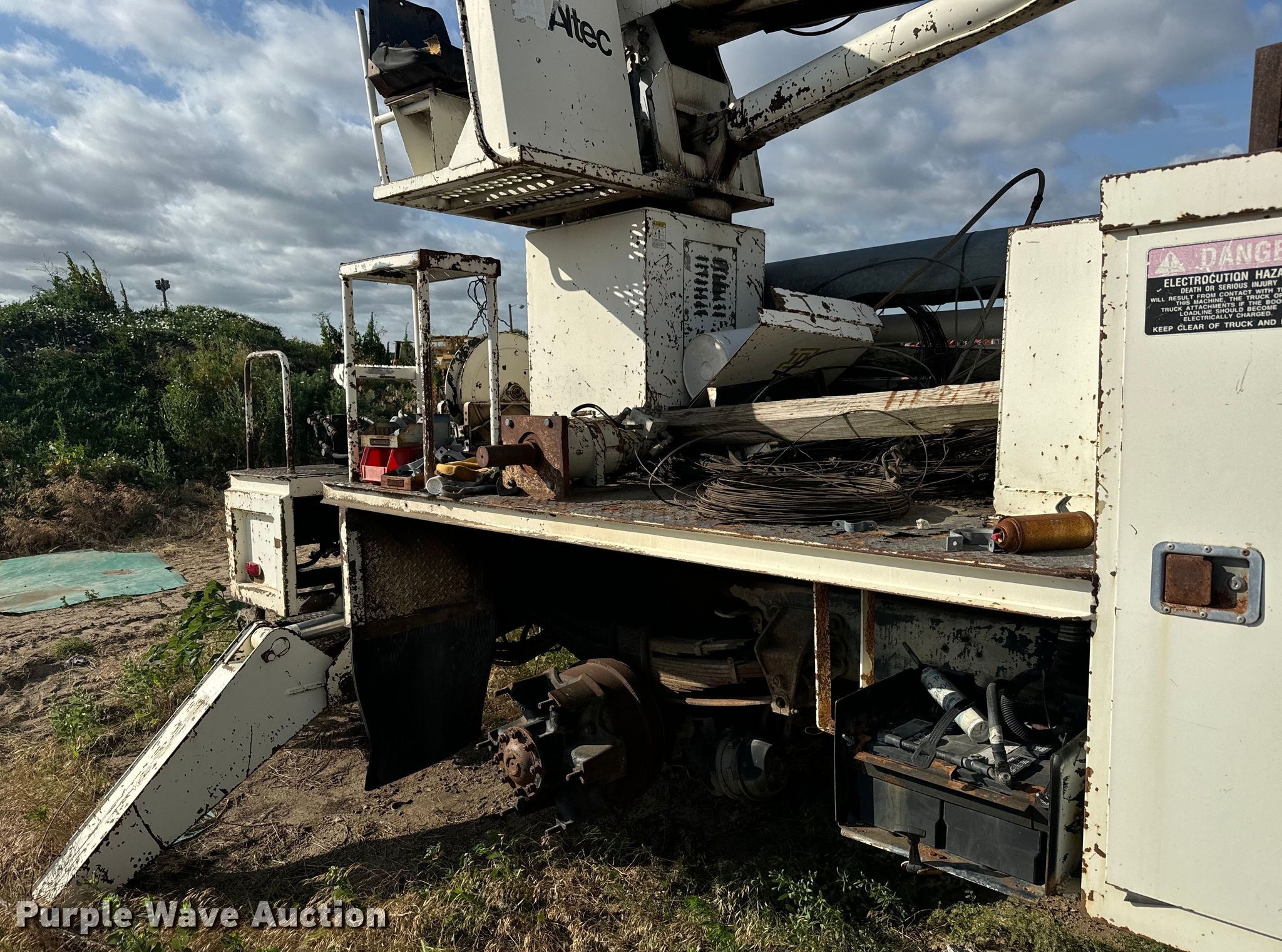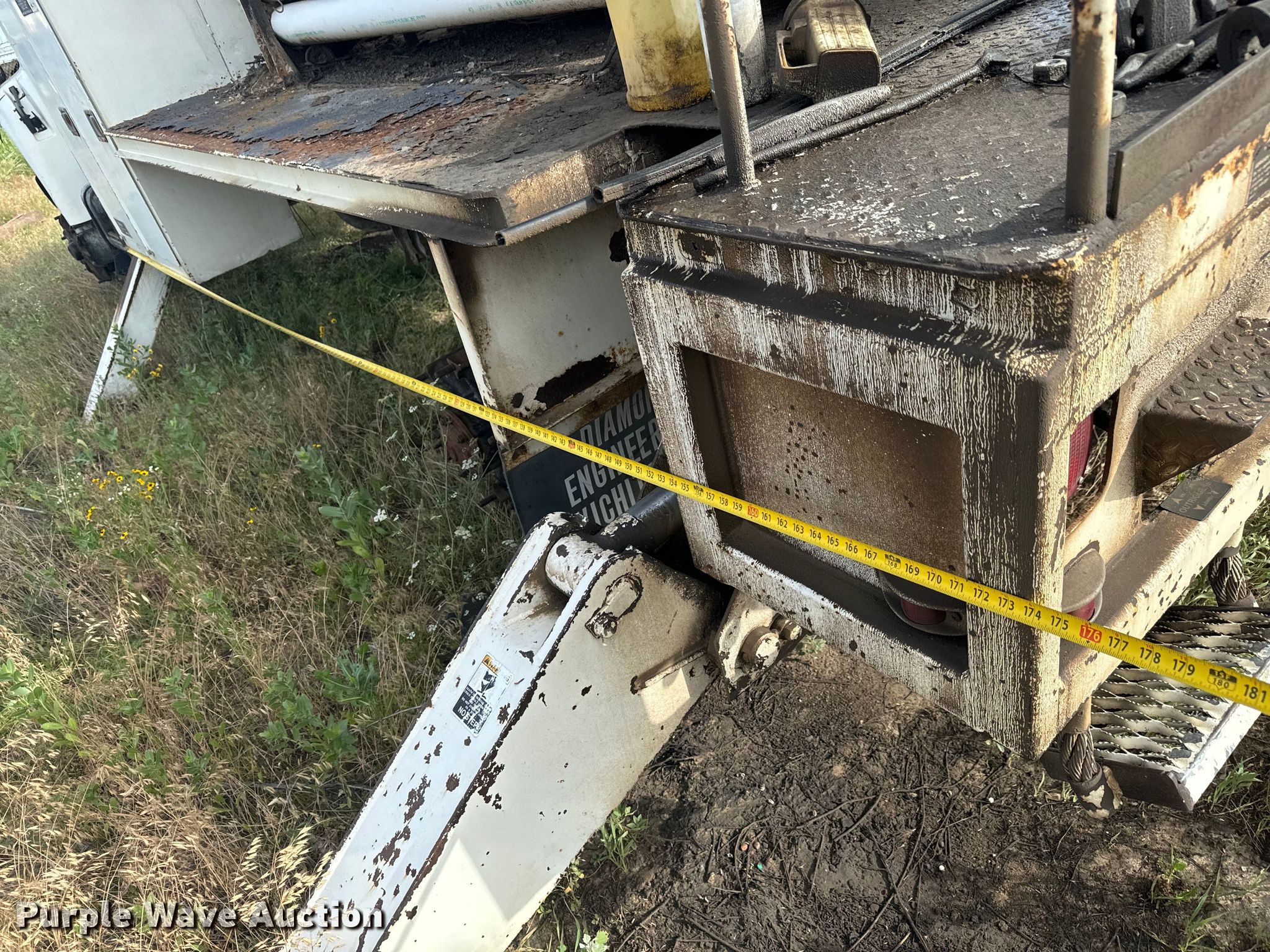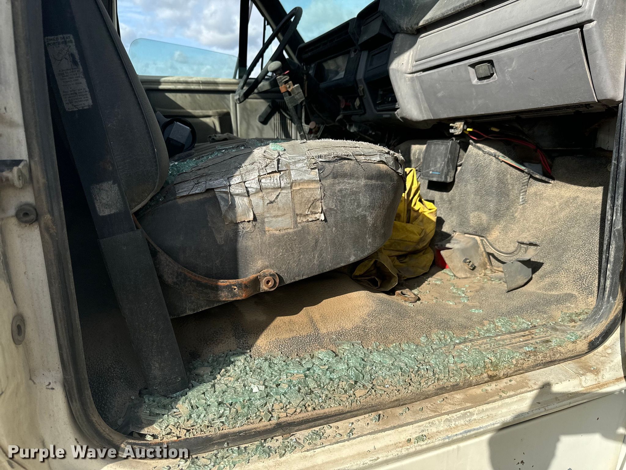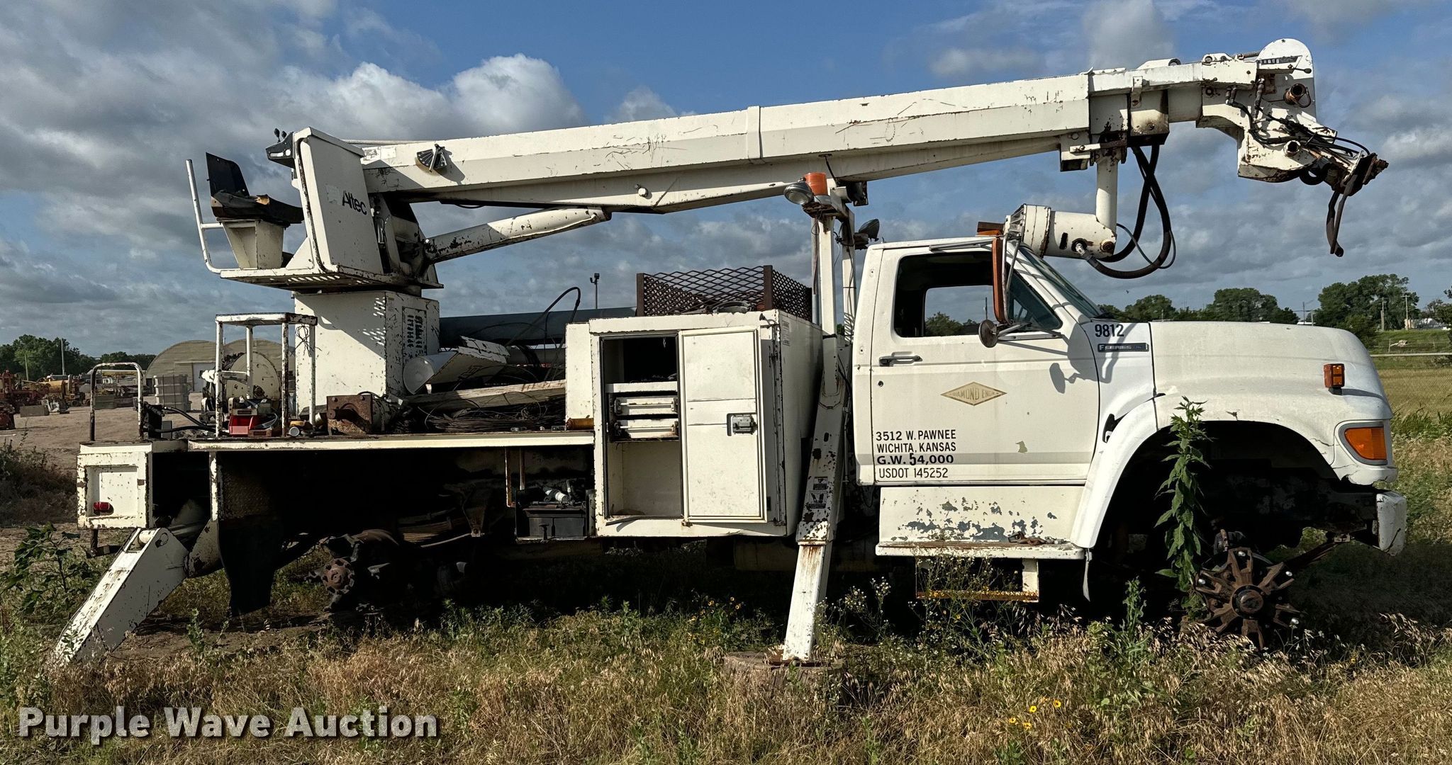 1995 Ford F800 digger derrick truck. Miles: 192,409 on odometer, VIN: 1FDYF80C3SVA40374, Unit #: 9812. Engine Cummins, Displacement: 5.9L, Cylinders: 6, Fuel type: Diesel. Transmission Manual, Speed: 5, plus 2. Chassis Axles: Single, Suspension: Spring, Brakes: Air, PTO. Interior Heat. Features Bed Altec, Serial: 35-30321, 14' 6" L x 96" W, Boom Altec D1090-TR, Maximum lift capacity: 20,700 lbs, Maximum lift height: 45', Boom type: Telescopic, Boom controls Ground, Platform/ basket, Pole guide, Auger. Notes Glass damaged, Wheels and tires missing, Non-operational hydraulics, Non-operational unit. Kansas title. Diamond Engineering Co. - Wichita Division Liquidation - Open Inspection Tuesday, July 9 from 9:00 a.m. to 3:00 p.m.. 3512 West Pawnee Street. Wichita, KS 67213