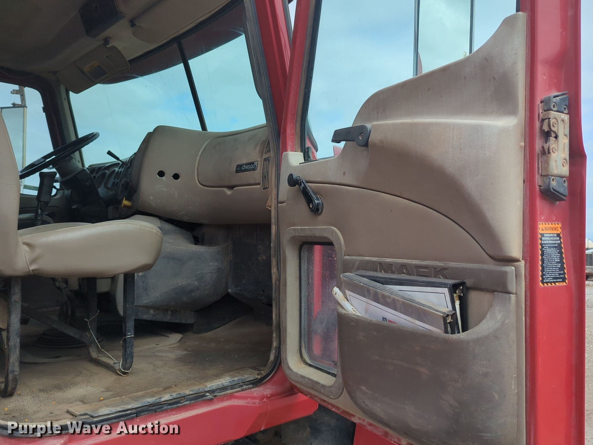 2004 Mack CH613 dump truck. Miles: 574,343 on odometer, Hours: 26,205 on meter, VIN: 1M2AA13C14N156632. Engine Displacement: 12.0L, Cylinders: 6, Fuel type: Diesel. Transmission Mack Maxitorque ES, Manual, Speed: 10. Chassis Axles: Triple, Pusher axle, Suspension: Camelback, Brakes: Air, PTO. Interior AC, Heat, Heated mirrors, Cruise control. Features Dump bed 15' L x 96" W, Side height: 40", Side board height: 9", Bed type: Steel, Roll tarp, Ram: Single, End gate: Air operated. Tires Size: 11R24.5, Lift axle: 295/75R22.5. Oklahoma title. Heartland Energy Solutions, LLC. 2401 Spur Lane. El Reno, OK 73036