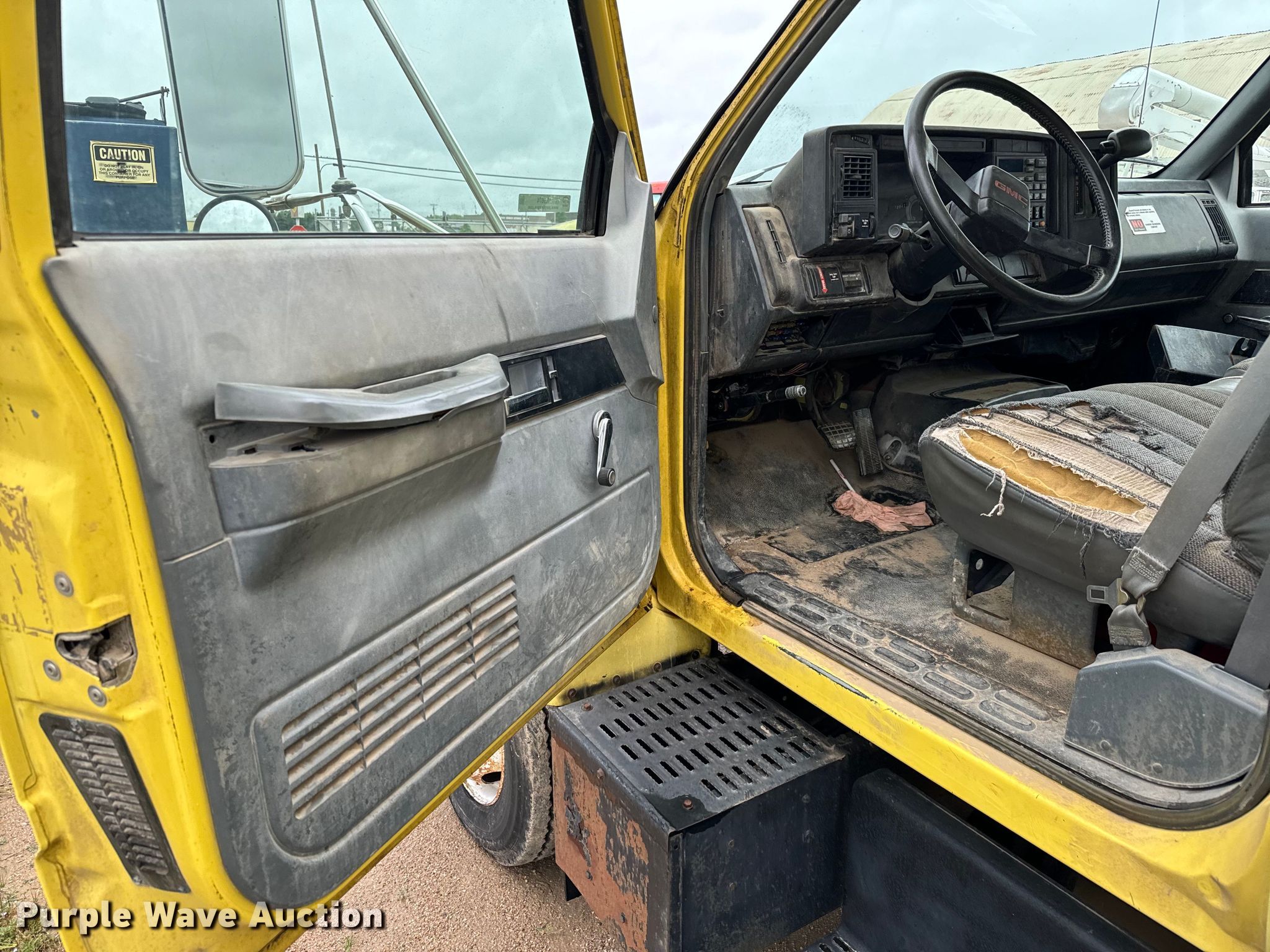 Purple Wave is selling a used Box Truck in Kansas. This item is a 1992 GMC TopKick C5500 box truck with the following: Miles: 129,923 on odometer, VIN: 1GDJ6H1P3NJ503855, Unit #: 982