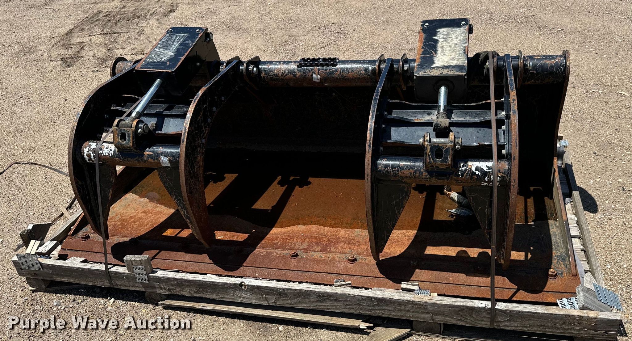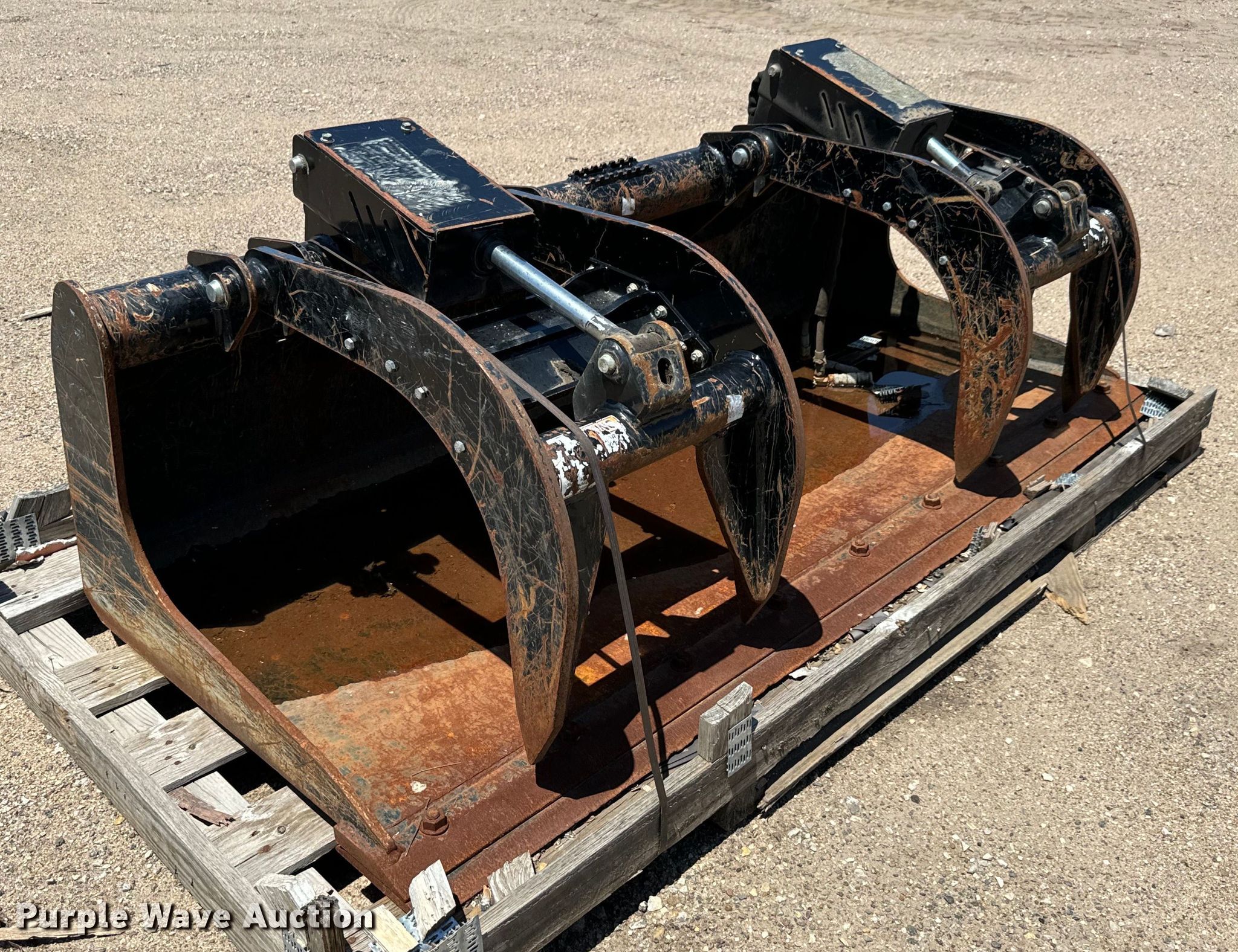 Purple Wave is selling a used Skid Steer Attach. in Kansas. This item is a Skid steer grapple bucket with the following: Width: 80", Grapple cylinder needs replaced