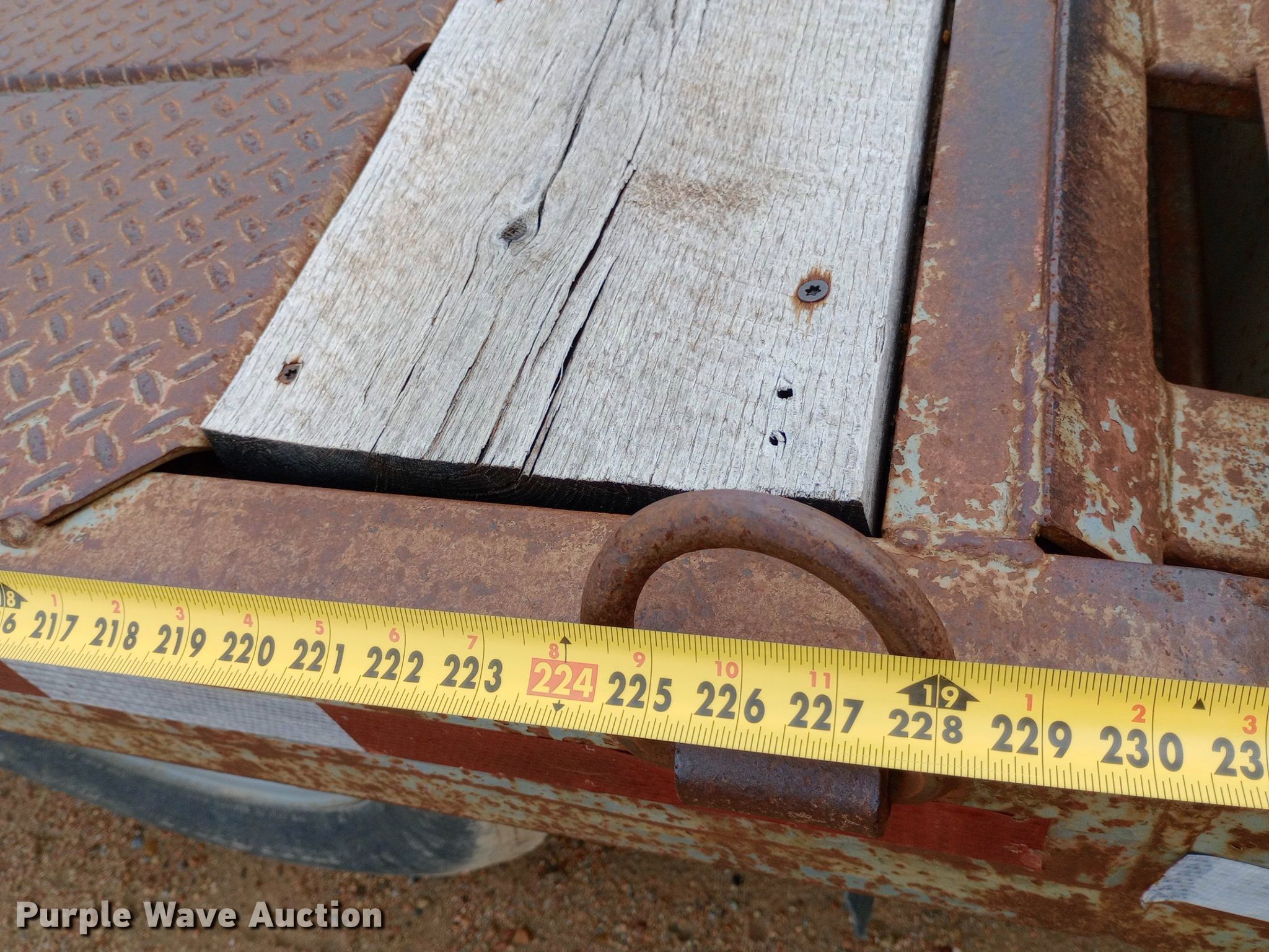 1993 Interstate 20DT equipment trailer. VIN: 1JK0DT205PA100007, Unit #: 254. Dimensions Overall: 29' 6" L x 96" W, Deck: 19' L x 96" W, Tail length: 5' 3", Ramps: Manual Length: 5' 3". Features Deck type: Wood. Chassis Hitch: Pintle, Landing gear: Single, Suspension: Spring, Brakes: Electric, Axles: Tandem. Tires Steel wheels, Size: 235/85R16. Kansas title. Diamond Engineering Co. - Wichita Division Liquidation - Open Inspection Tuesday, July 9 from 9:00 a.m. to 3:00 p.m.. 3512 West Pawnee Street. Wichita, KS 67213