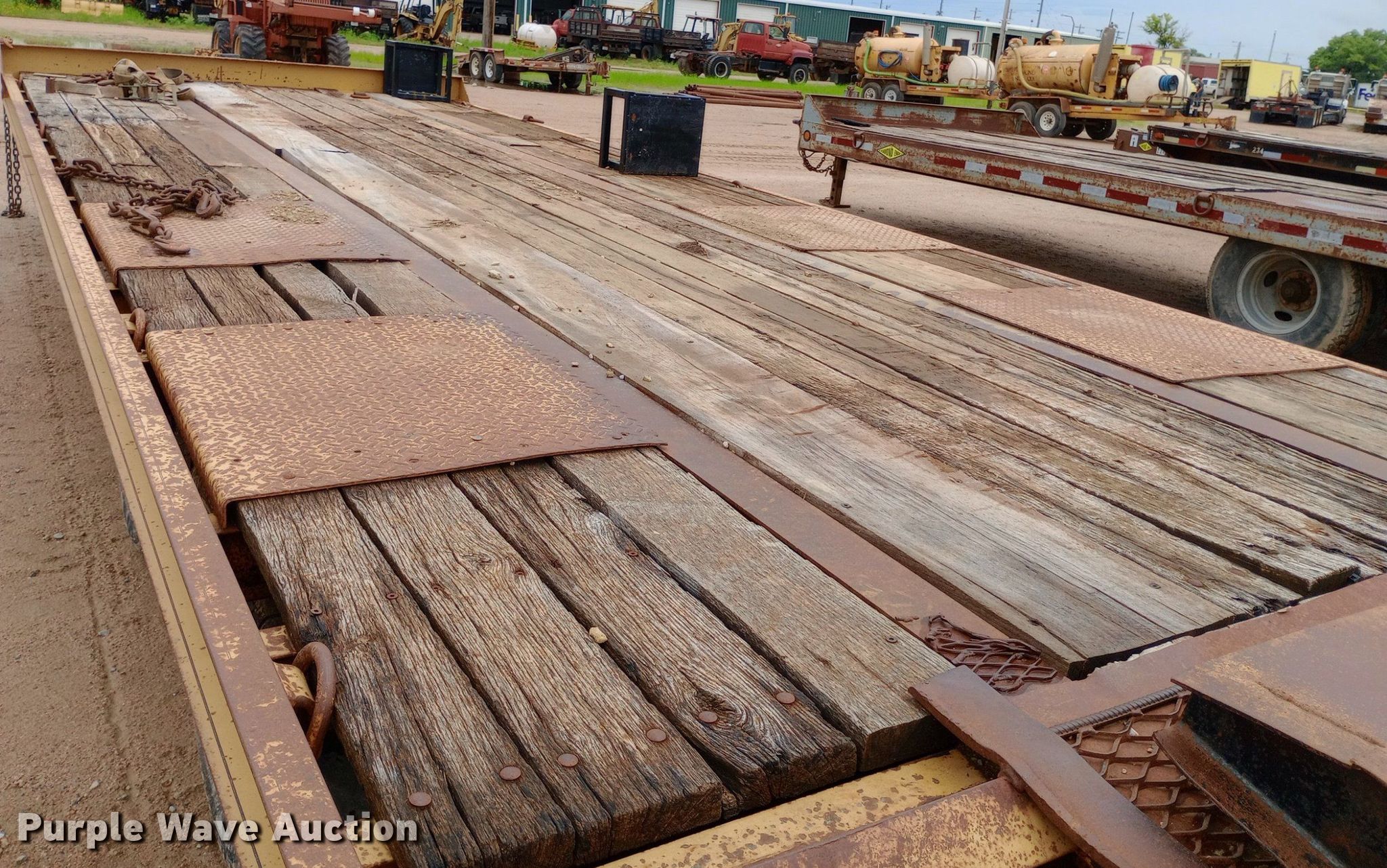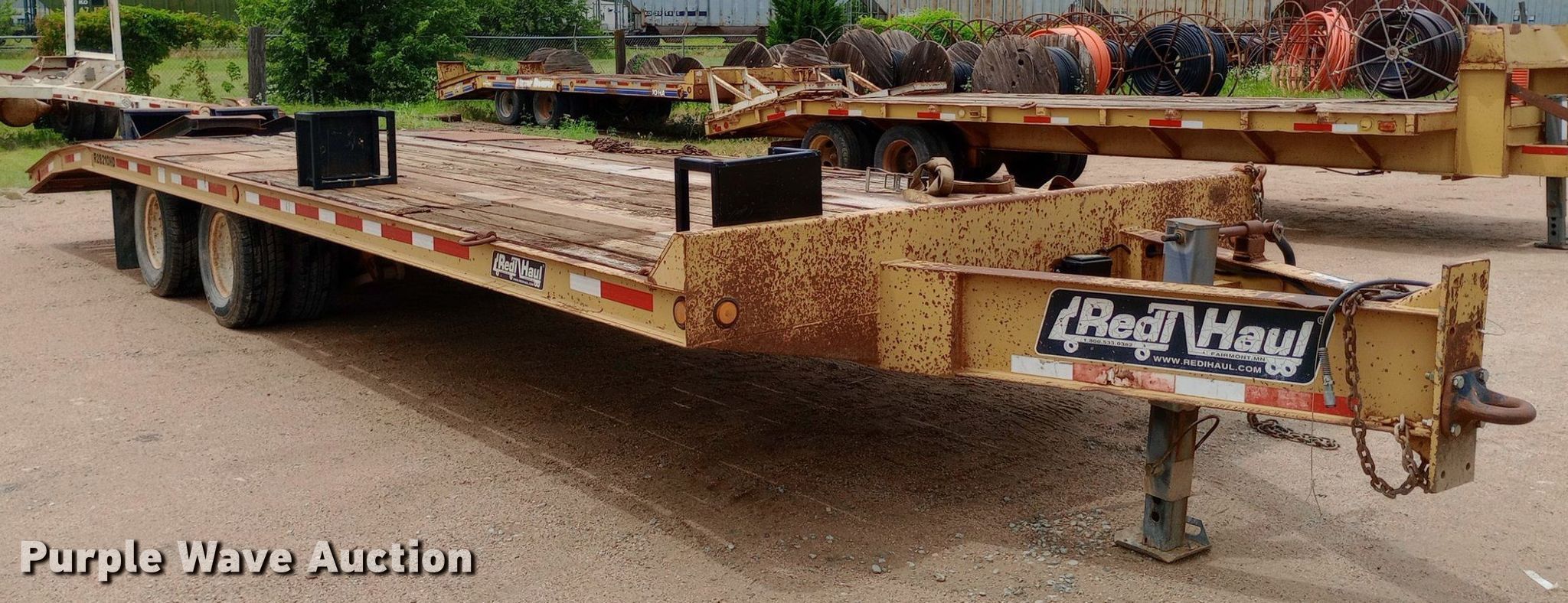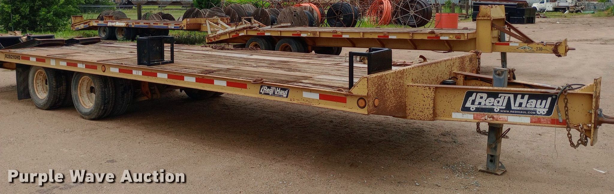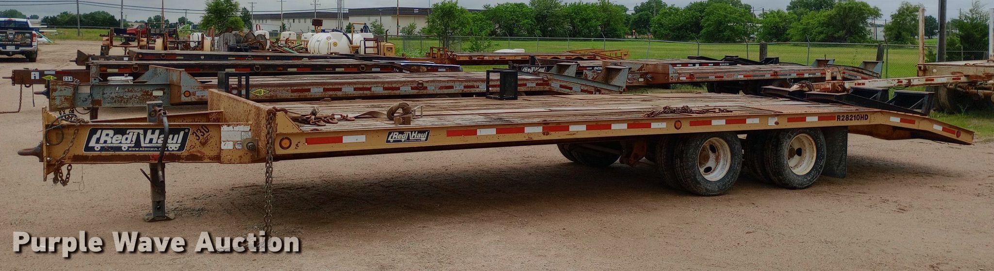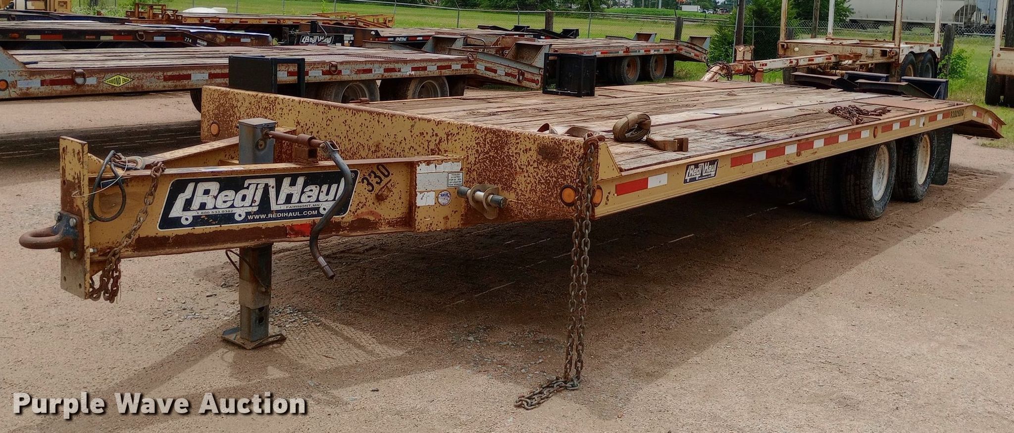 2005 Redi Haul ML7460E equipment trailer. VIN: 47SF282T85102550, Unit #: 330. Dimensions Overall: 33' 4" L x 102" W, Deck: 22' L x 102" W, Tail length: 6', Ramps: Manual Length: 6'. Features Deck type: Wood. Chassis Hitch: Pintle, Landing gear: Single, Suspension: Spring, Brakes: Electric, Axles: Tandem. Tires Steel wheels, Size: 245/75R16. Kansas title. Diamond Engineering Co. - Wichita Division Liquidation - Open Inspection Tuesday, July 9 from 9:00 a.m. to 3:00 p.m.. 3512 West Pawnee Street. Wichita, KS 67213