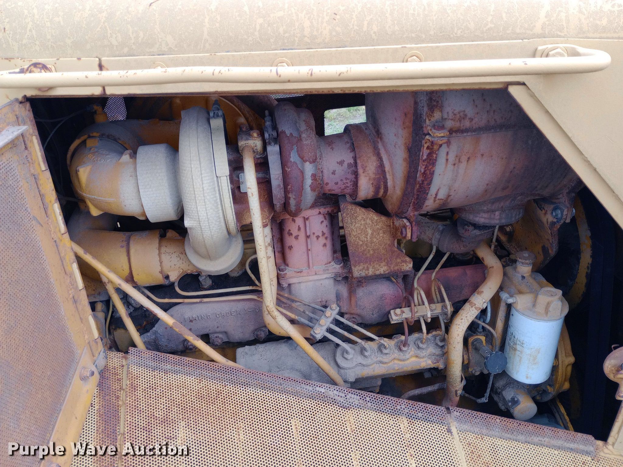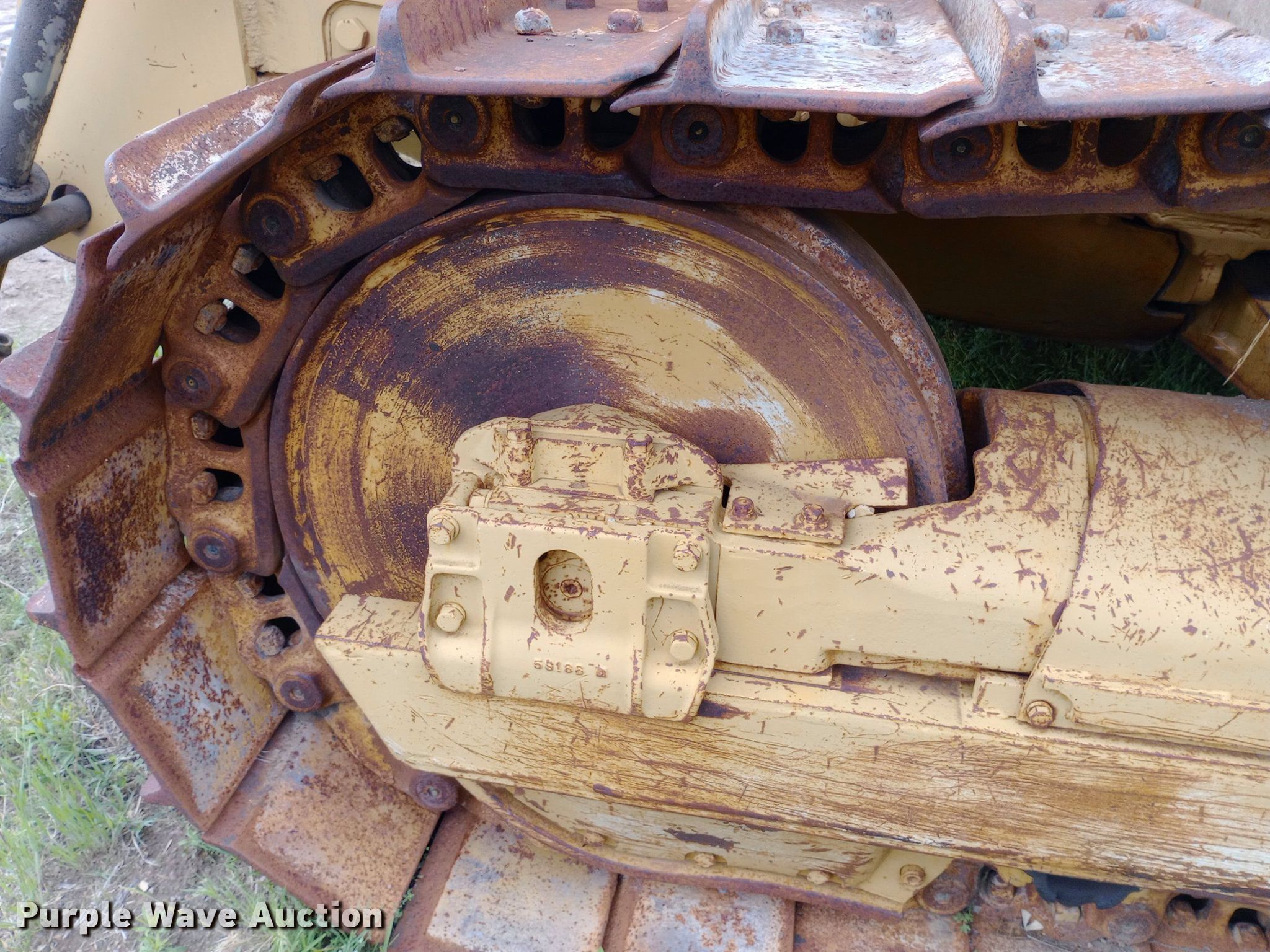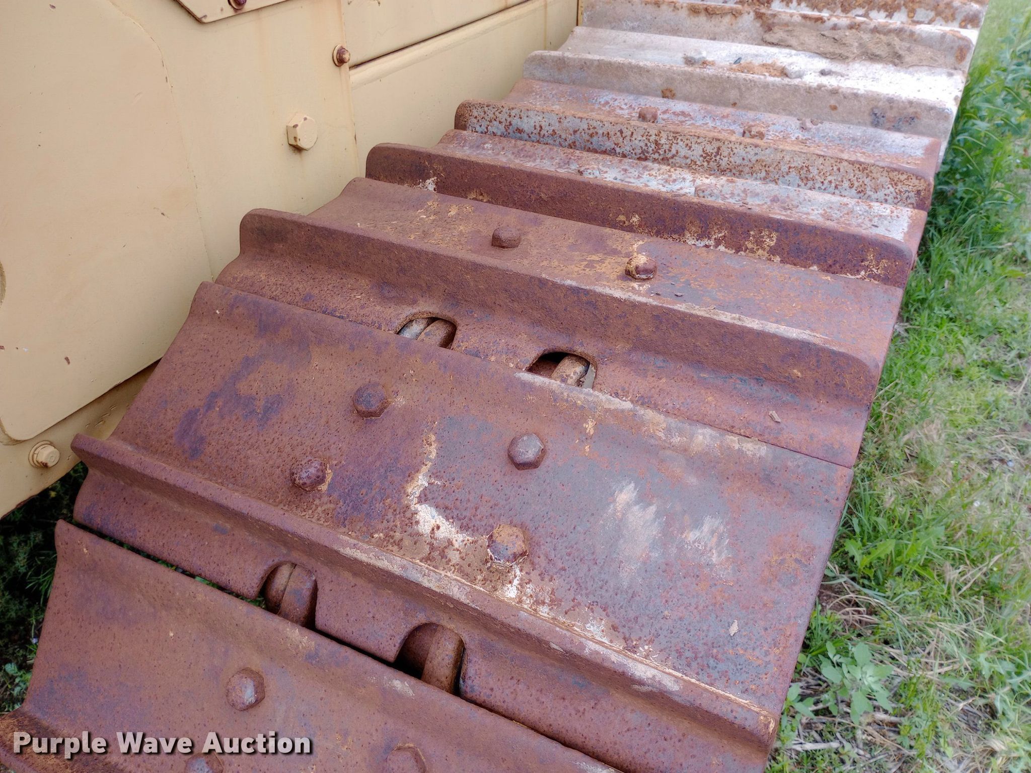 1975 Caterpillar D7F dozer. Hours: 1,122 on meter, Serial: 94N8514, Unit #: 2024. Engine Cylinders: 6, Fuel type: Diesel. Transmission Powershift, 3F - 3R. Operators station Steering: Clutch brake. Tracks Width: 24", Grouser pads: Single. Notes Dead battery, Blade missing, Non-operational unit. Diamond Engineering Co. - Wichita Division Liquidation - Open Inspection Tuesday, July 9 from 9:00 a.m. to 3:00 p.m.. 3512 West Pawnee Street. Wichita, KS 67213