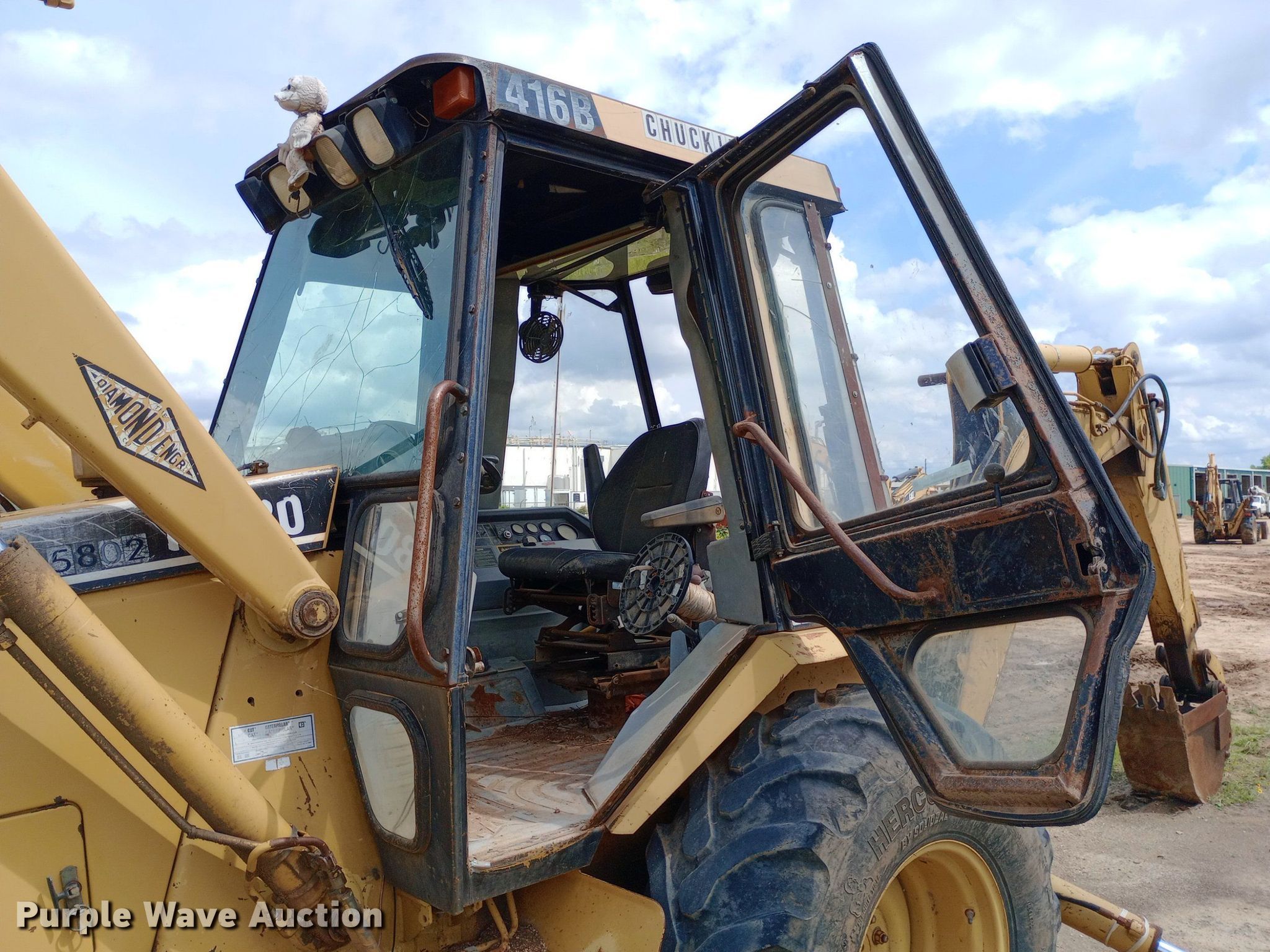 1995 Caterpillar 416B backhoe. Hours: 16,756 on meter, Serial: 8ZK06980. Engine Cylinders: 4, Fuel type: Diesel. Transmission Shuttle shift, 4F - 4R. Chassis Four wheel drive. Operators station Enclosed cab, Backhoe controls: Wobble stick / two stick. Features Loader Bucket Width: 86", Cutting edge: Bolt-on, Backhoe Extendable stick, Quick coupler: Manual, Bucket Width: 16", Cutting edge: Bolt-on, Teeth: 4.. Tires Front: 12.5x80-18, Rear: 19.5-24. Notes Non-operational unit. Diamond Engineering Co. - Wichita Division Liquidation - Open Inspection Tuesday, July 9 from 9:00 a.m. to 3:00 p.m.. 3512 West Pawnee Street. Wichita, KS 67213