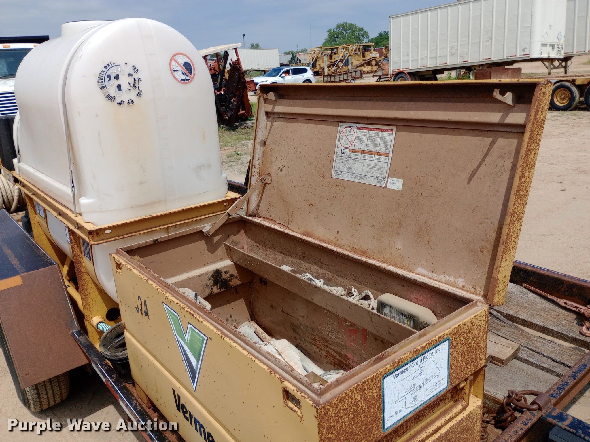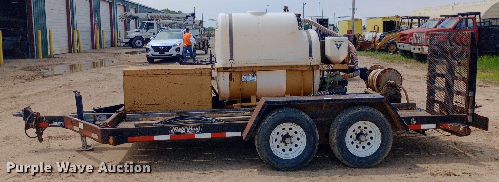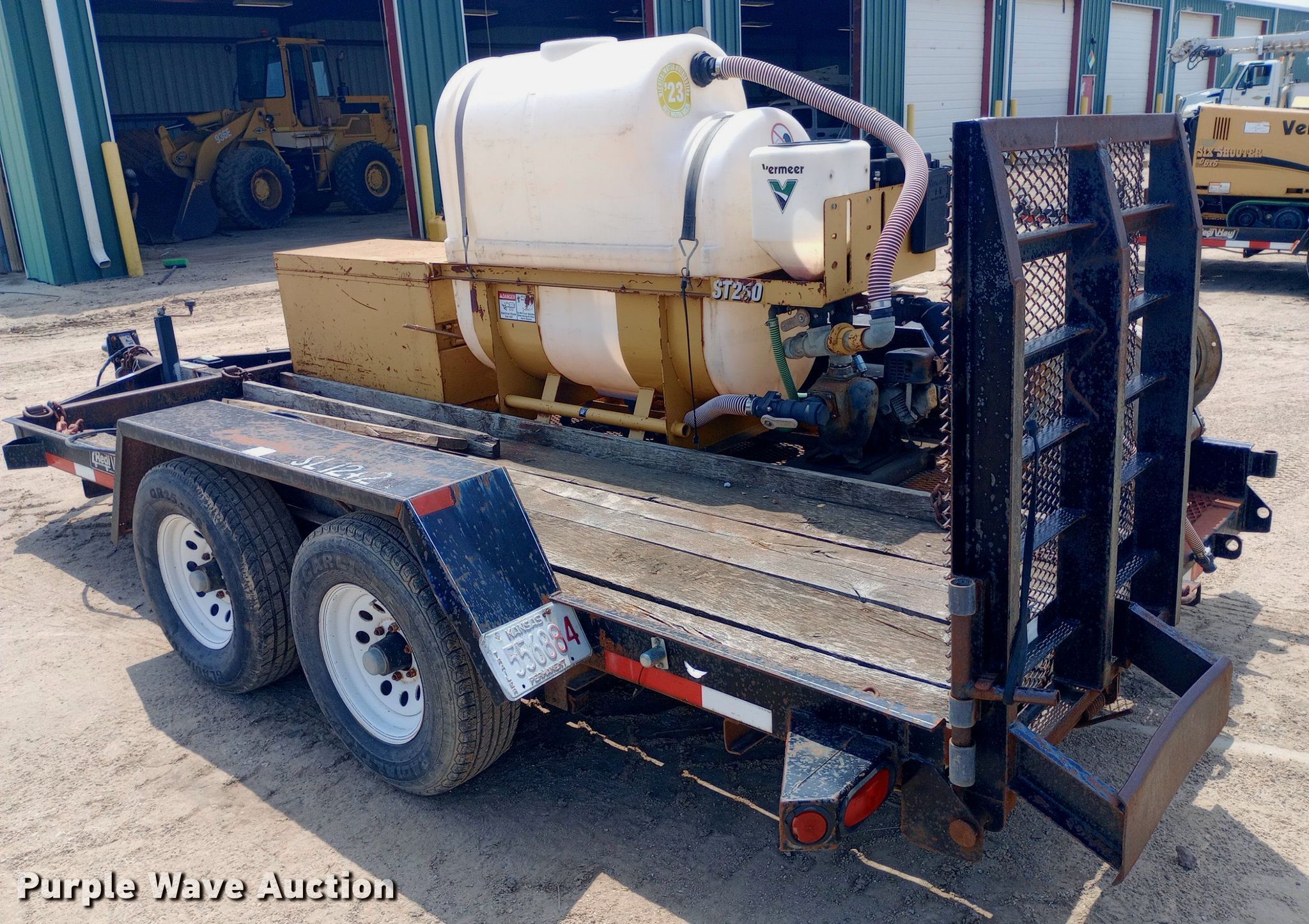 Vermeer ST 250 mud mixer. Engine. Briggs & Stratton, Cylinders: 1, Fuel type: Gas. Notes Contents included, Unknown operating condition. 2007 Redi-Haul SL12+2 equipment trailer VIN: 47SS142T871023750. Dimensions Overall: 18' 6" L x 100" W, Deck: 14' L x 80" W. Features Deck type: Wood, Hose reel. Chassis Hitch: Pintle, Landing gear: Single, Suspension: Spring, Brakes: Electric, Axles: Tandem. Tires Steel wheels, Size: 225/75R15. Kansas title. Diamond Engineering Co. - Wichita Division Liquidation - Open Inspection Tuesday, July 9 from 9:00 a.m. to 3:00 p.m.. 3512 West Pawnee Street. Wichita, KS 67213