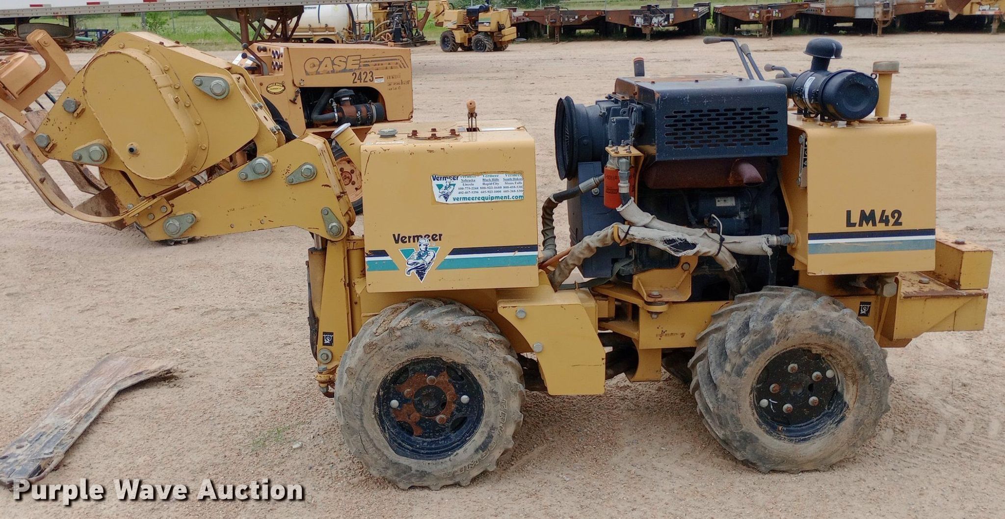 Purple Wave is selling a used Cable Plow in Kansas. This item is a 2004 Vermeer LM42 vibratory cable plow with the following: Hours: 326 on meter, Serial: 1VRM112L341002417