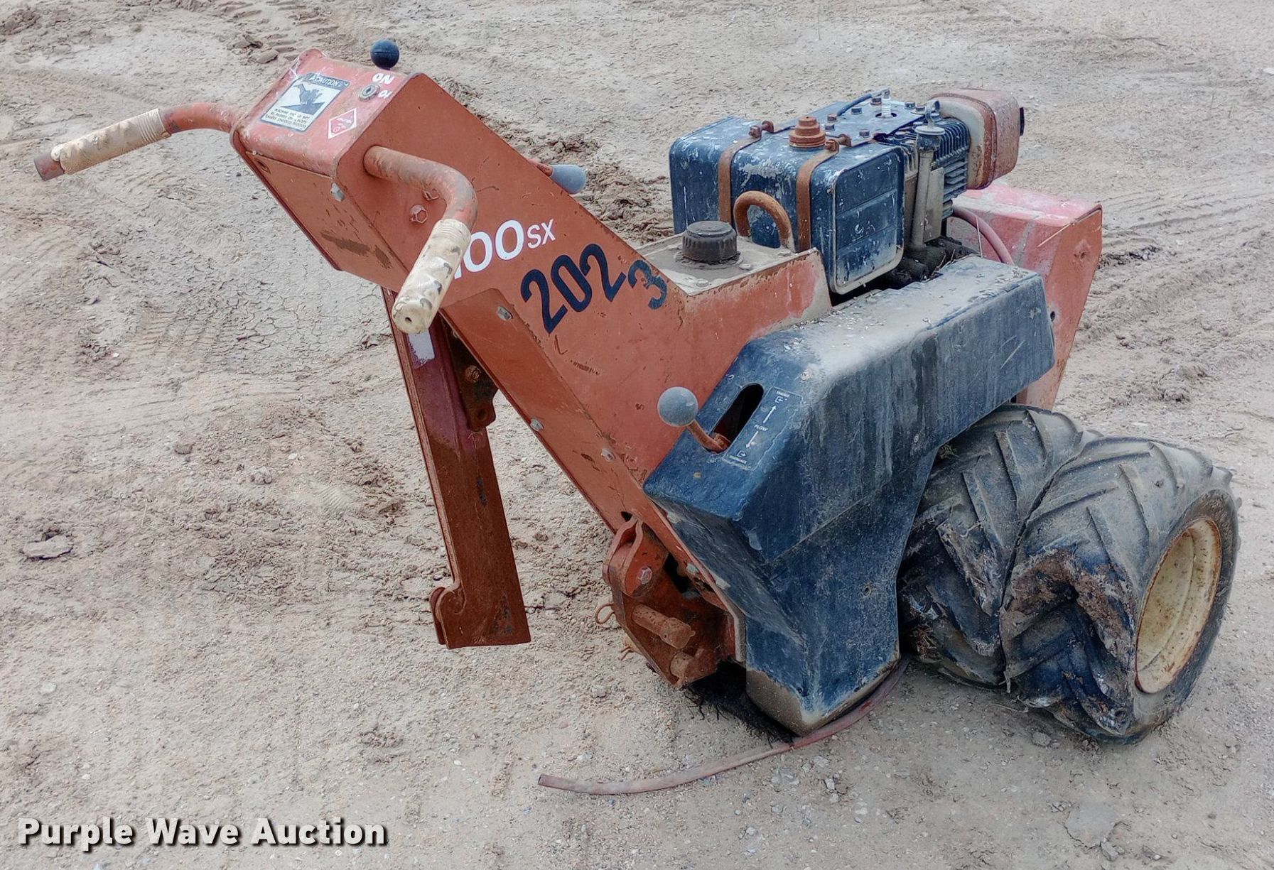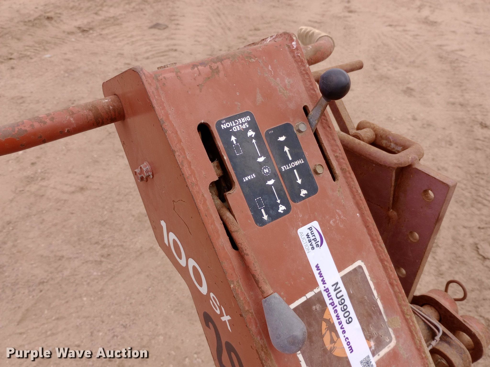 Ditch Witch 100SX vibratory cable plow. Engine. Briggs & Stratton, Cylinders: 1, Fuel type: Gas, HP: 10. Transmission Hydrostatic. Features Vibratory plow Depth: 24". Tires Size: 16x6.50-8. Notes Flat tire, Non-operational unit. Diamond Engineering Co. - Wichita Division Liquidation - Open Inspection Tuesday, July 9 from 9:00 a.m. to 3:00 p.m.. 3512 West Pawnee Street. Wichita, KS 67213