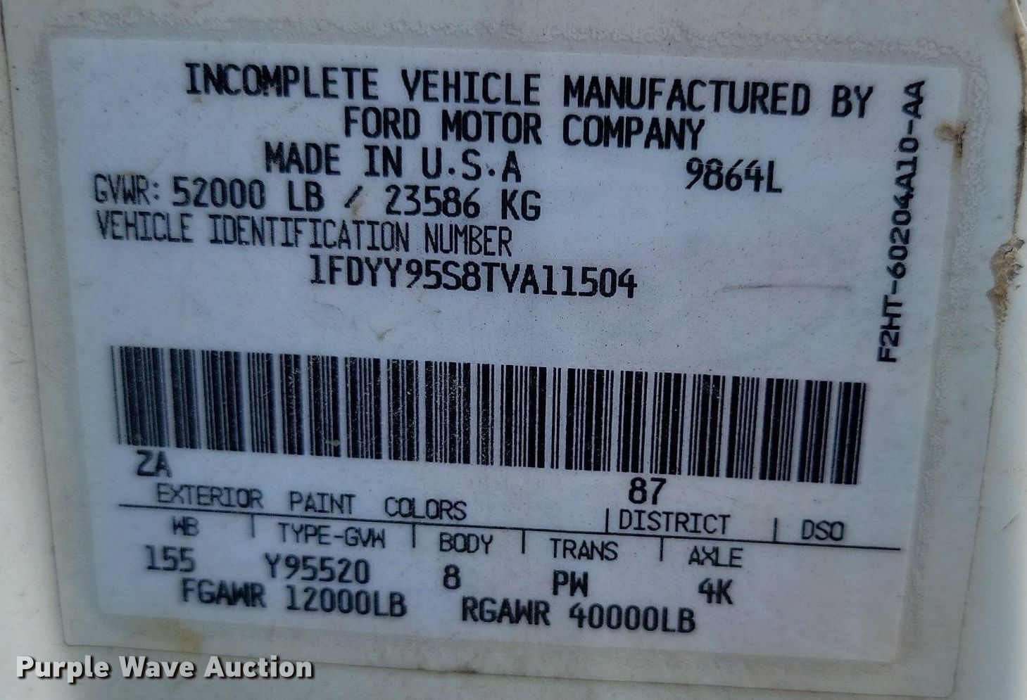 - VIN: 1FDYY95S8TVA11504