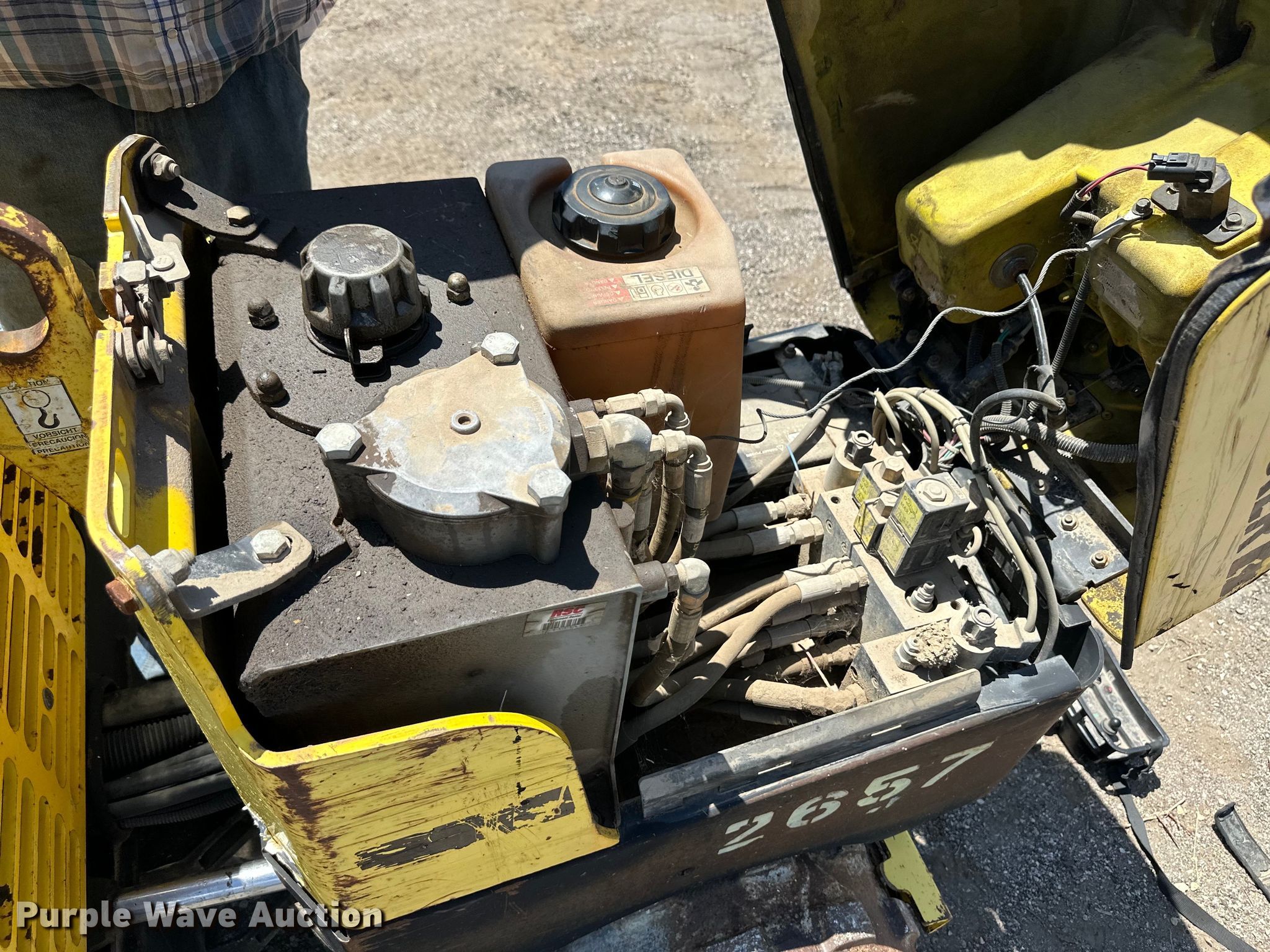Wacker RT double drum vibratory roller. Engine. Lombardini, Cylinders: 3, Fuel type: Diesel. Transmission Hydrostatic. Features Drum: Padfoot, Vibratory system: Single, Front drum Width: 32", Diameter: 20", Rear drum Width: 32", Diameter: 20", Drum scrapers: Front, Rear, Remote control. Notes Dead battery, Non-operational wireless remote function. Coonrod & Associates Construction Co Retirement Auction - Open Inspection Wednesday, July 10 from 9:00 a.m. to 2:00 p.m.. 420 East Lunger Road. Augusta, KS 67010