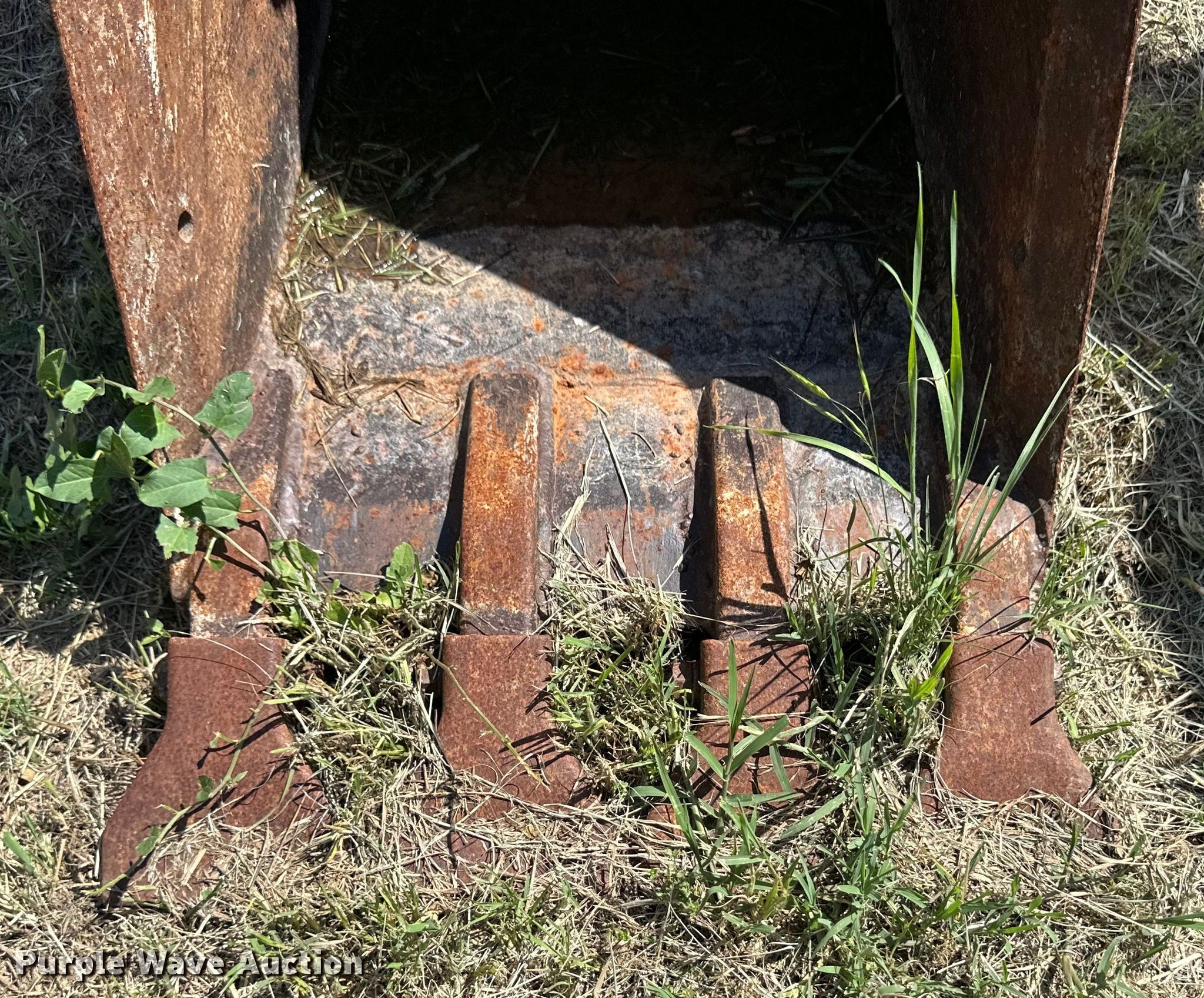 Purple Wave is selling a used Backhoe Attach. in Kansas. This item is a Backhoe bucket with the following: Width: 17", Teeth: 4, Removed from a Case 580 backhoe