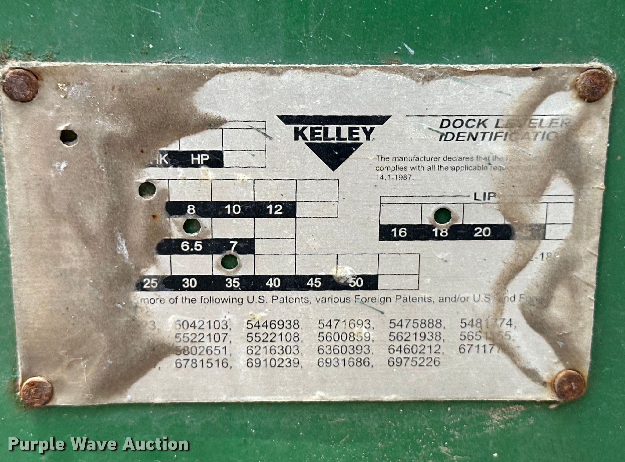 Purple Wave is selling a used Other Industrial or Business in Kansas. This item is a (2) Kelley loading dock levelers with the following: Dimensions: 63" L x 78" W, Lip dimensions: 18"