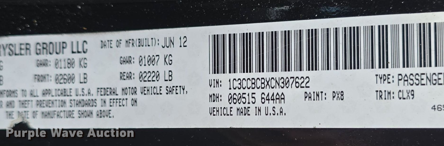 Purple Wave is selling a used Passenger Vehicle in Kansas. This item is a 2012 Chrysler 200 with the following: Miles: 88,619 on odometer, VIN: 1C3CCBCBXCN307622