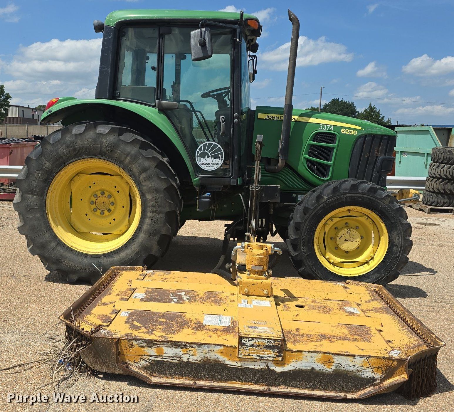 2012 John Deere 6230 MFWD tractor. Hours: 6,526 on meter, Serial: L0623DHFCH731851, Unit #: 3374. Engine Fuel type: Diesel. Transmission Powershift, 16F - 16R, Left-hand reverser, Differential lock. Operators station AC, Heat. Features PTO: 540, Three point Top link, Seven pin outlet, Hydraulic remote sets Rear: 2, Tiger side rotary mower, Width: 64", Front mount PTO. Tires Front: 320/85r24, Rear: 460/85r34. Shawnee County, KS. Topeka, KS 66618