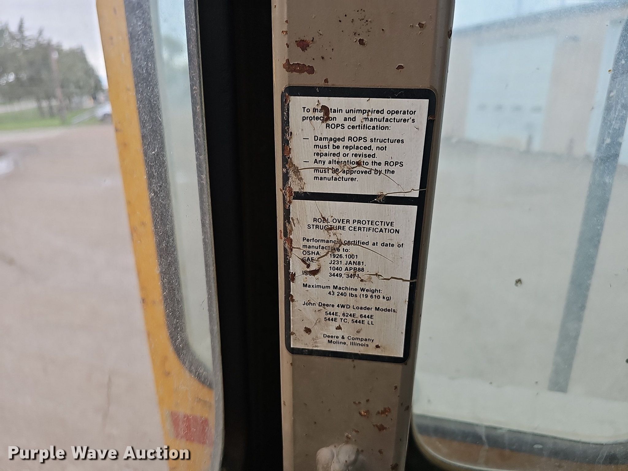 Purple Wave is selling a used Wheel Loader in Iowa. This item is a 1990 John Deere 544E wheel loader with the following: Hours: 8,821 on meter, Serial: DW544EB529499