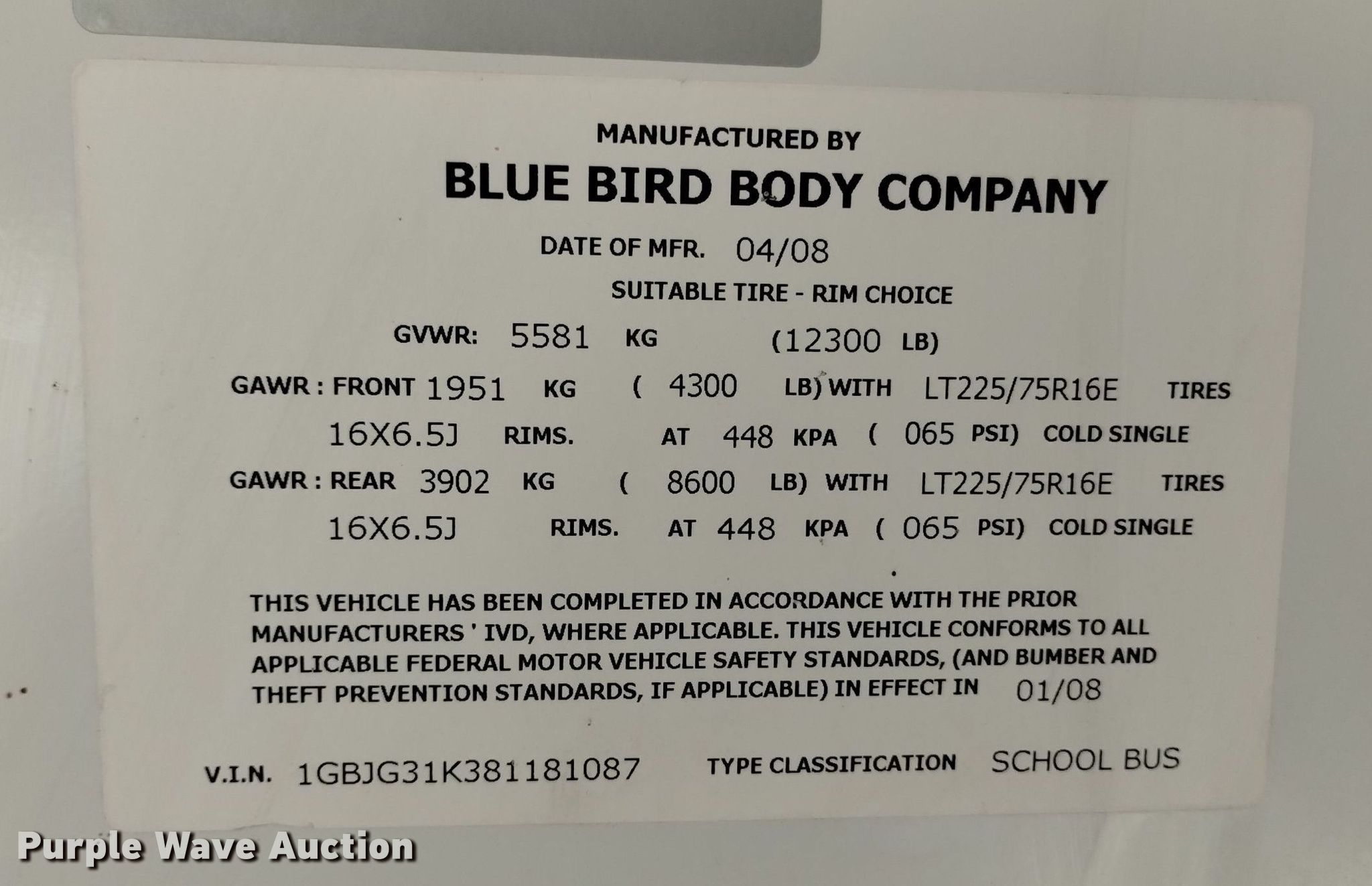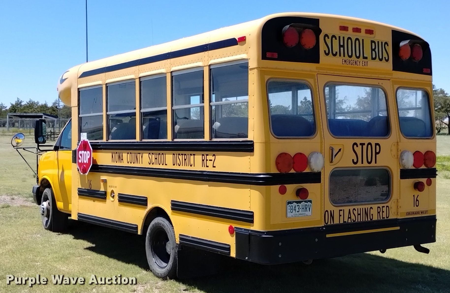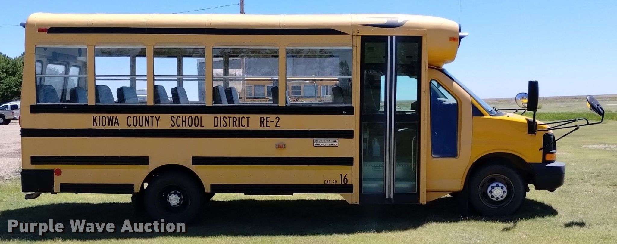 2009 Bluebird school bus. Miles: 125,051 on odometer, Hours: 3,307 on meter, VIN: 1GBJG31K381181087, Unit #: 16. Engine GM, Displacement: 6.0L, Cylinders: 8, Fuel type: Gas. Transmission Automatic. Chassis Axles: Single, Suspension: Spring, Brakes: Hydraulic, GVWR: 12,300 lbs. Interior AC, Heat, Auxiliary controls, Passengers: 29. Tires Size: 225/75R16. Notes Windshield chipped or cracked. Colorado title. Title distribution may be delayed up to 14 days from verification of funds. Plainview School District. Sheridan Lake, CO 81071