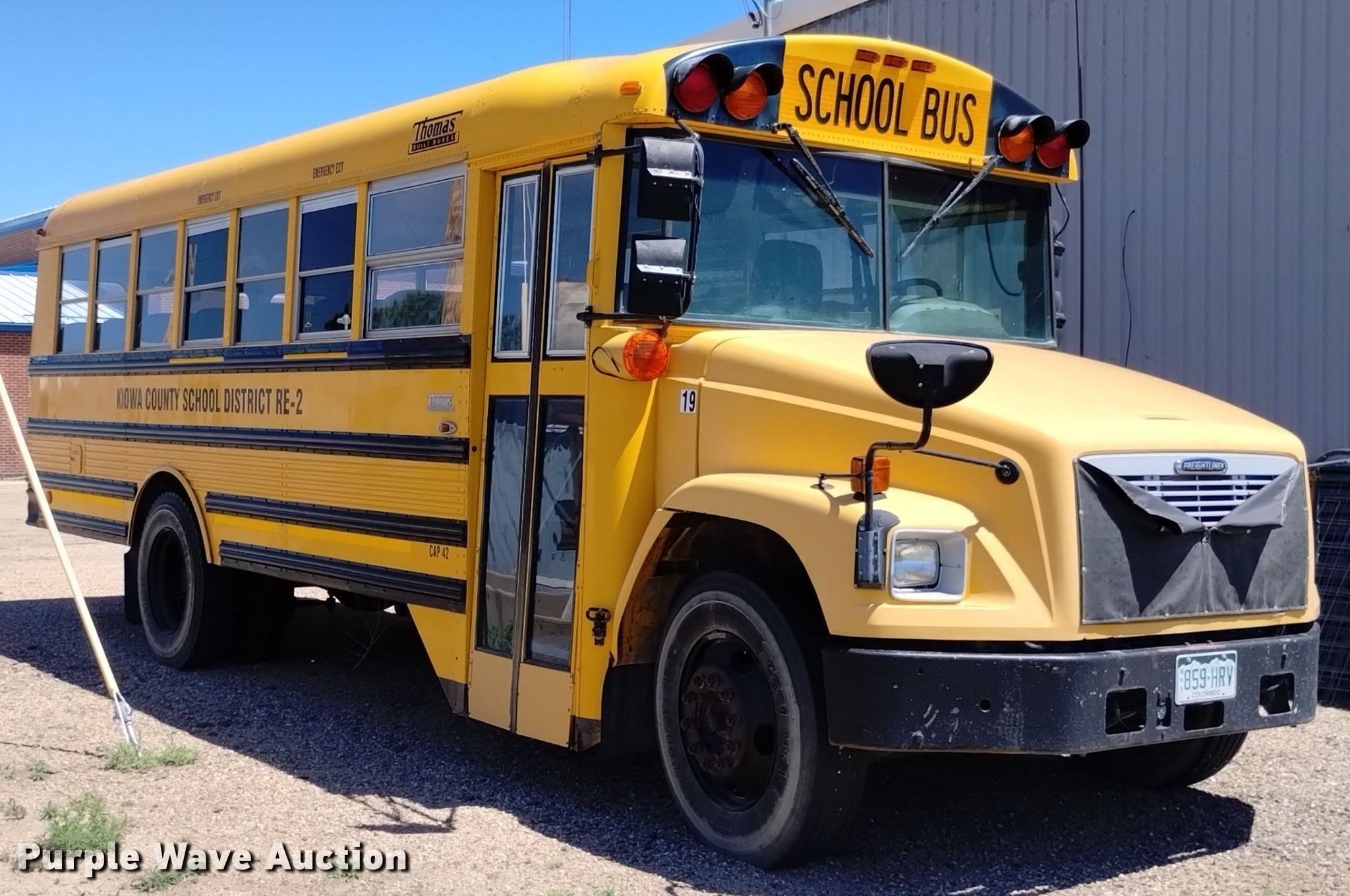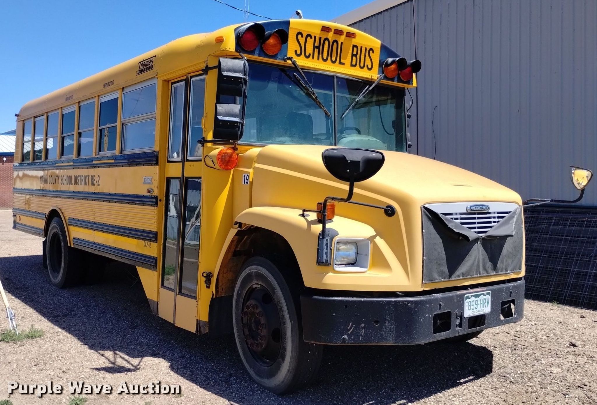 Purple Wave is selling a used Bus in Colorado. This item is a 2003 Freightliner FS65 school bus with the following: Miles: 121,512 on odometer, Hours: 7,037 on meter, VIN: 4UZAAWBWX3CK53699, Unit #: 19
