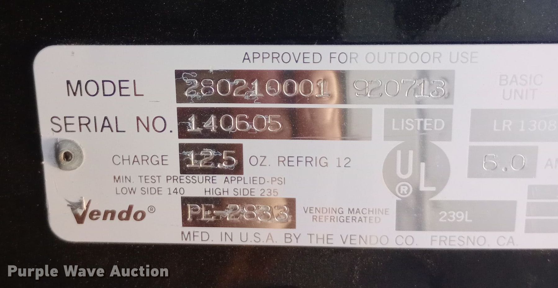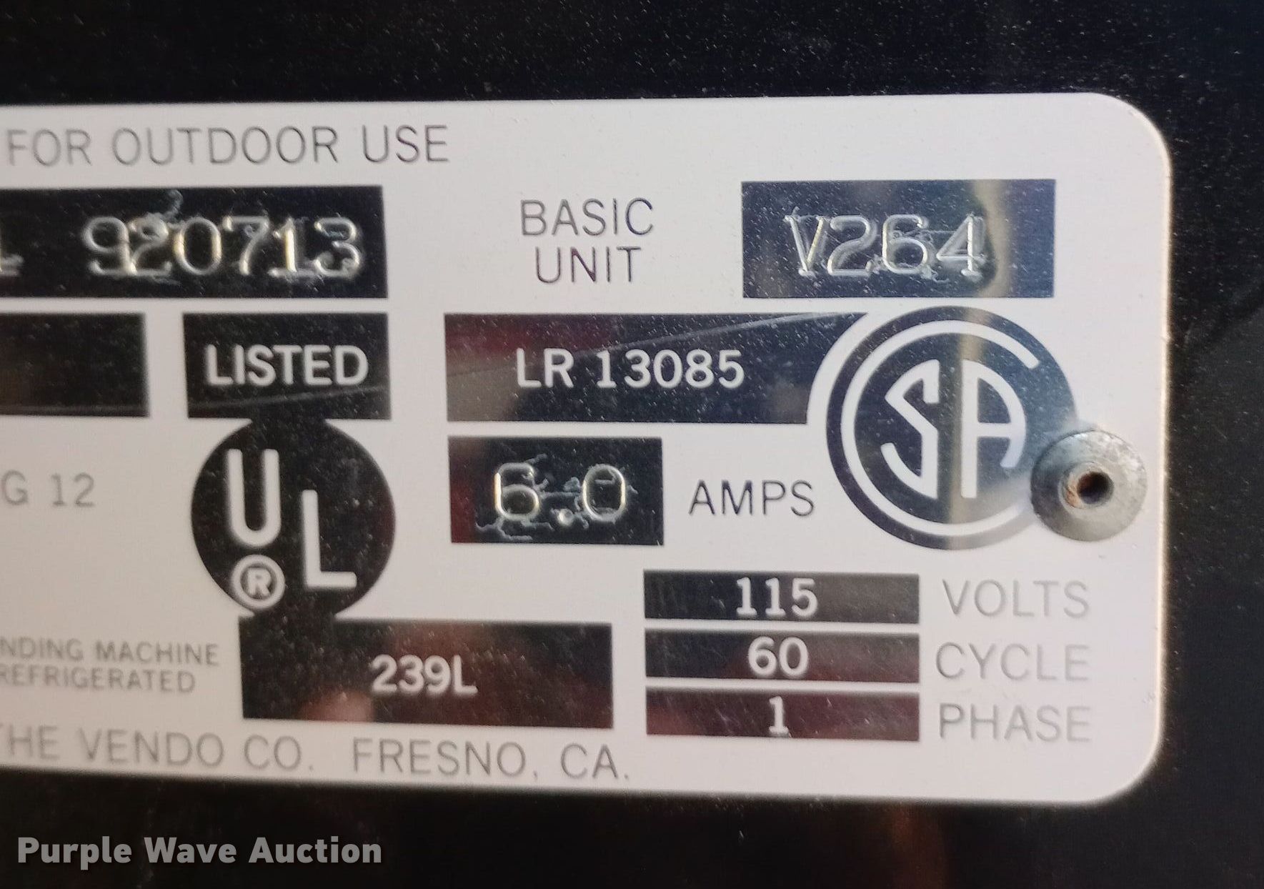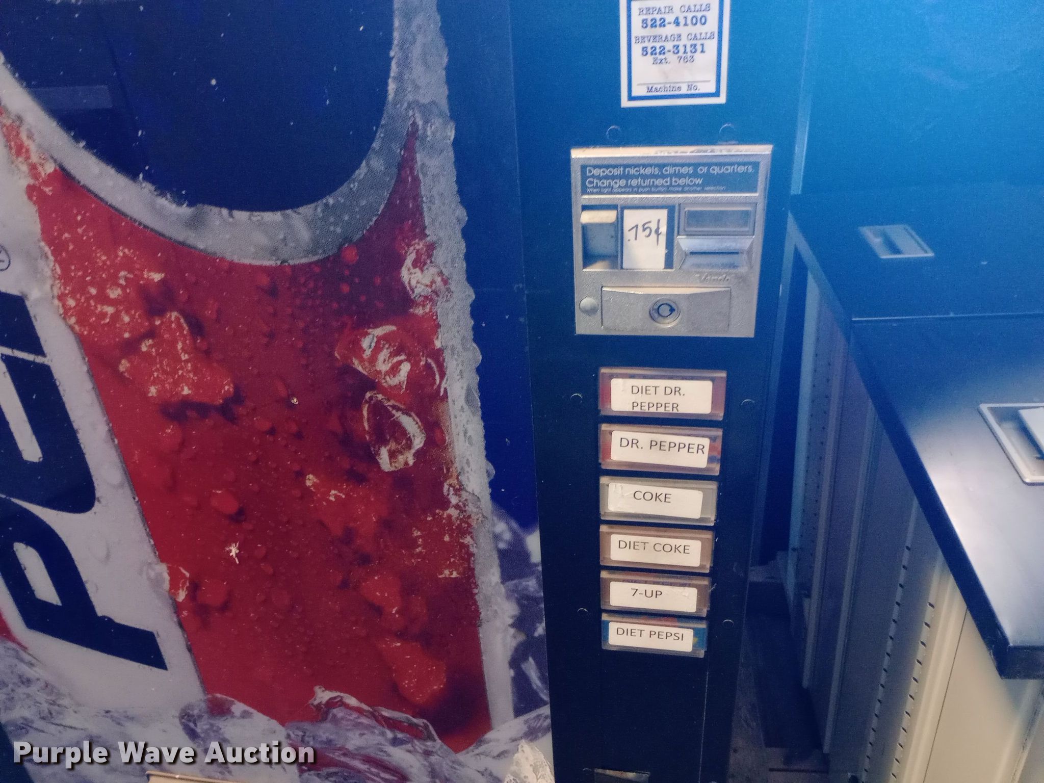 Purple Wave is selling a used Retail Displays in Kansas. This item is a Vendo vending machine with the following: Volts: 115