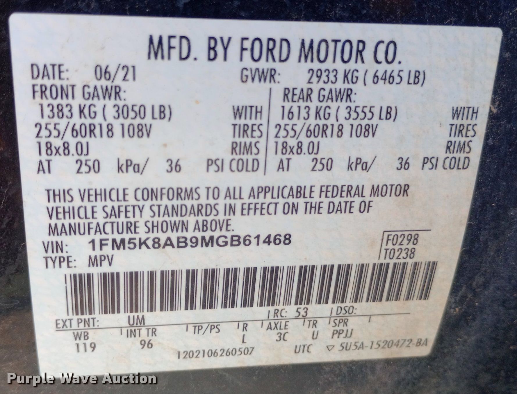 Purple Wave is selling a used Passenger Vehicle in Kansas. This item is a 2021 Ford Explorer Police Interceptor SUV with the following: Miles: 94,913 on odometer, VIN: 1FM5K8AB9MGB61468