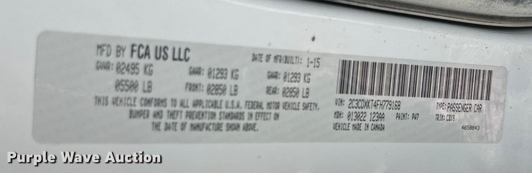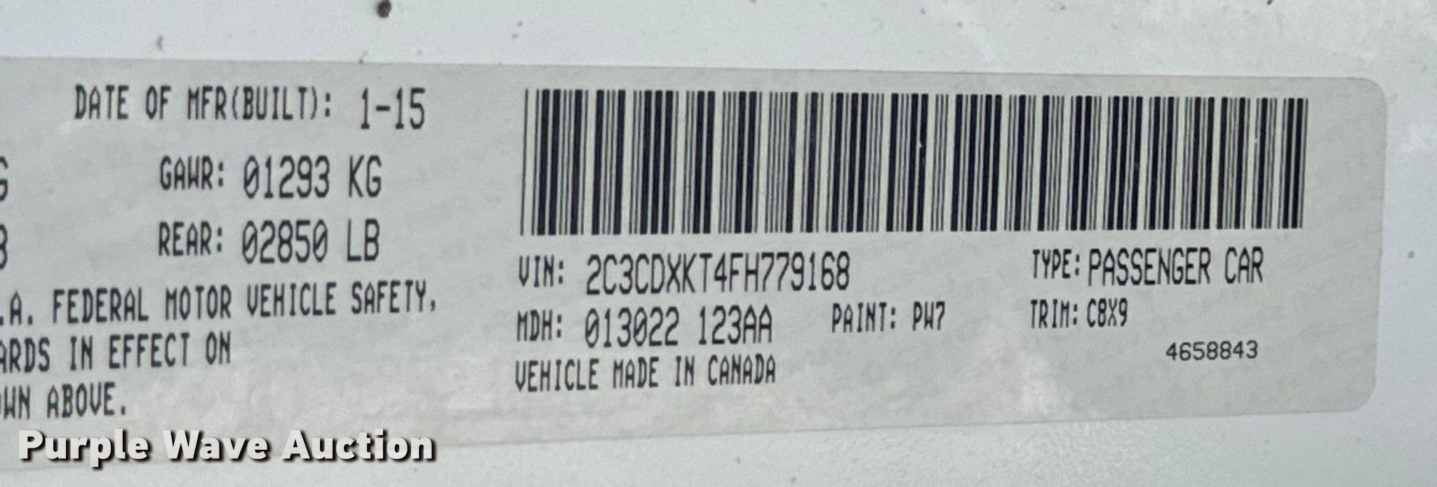 • VIN: 2C3CDXKT4FH779168