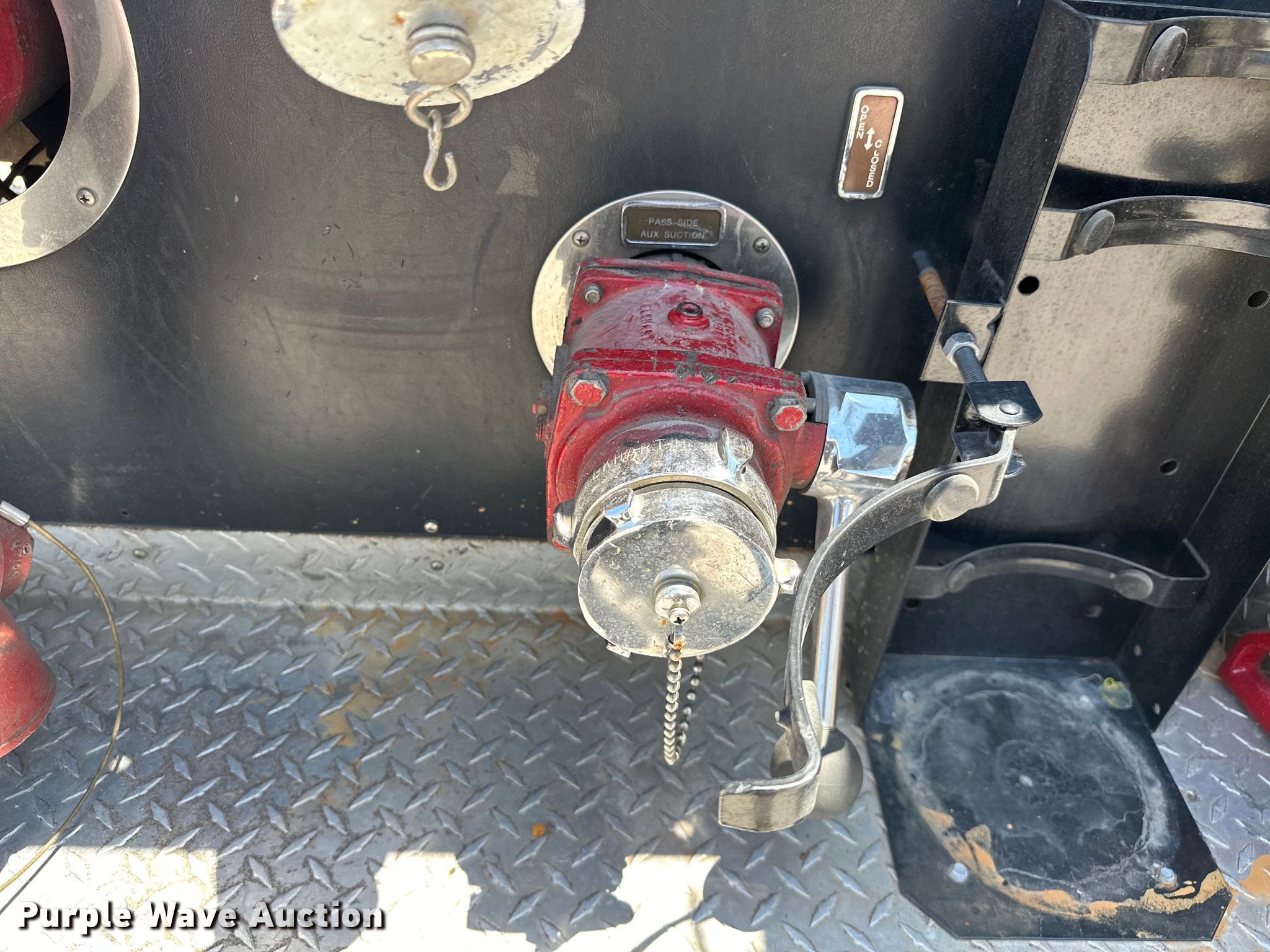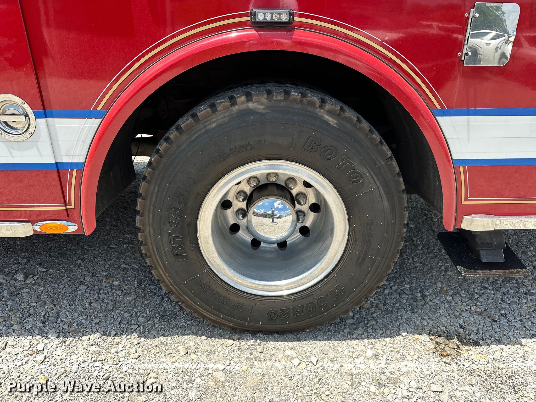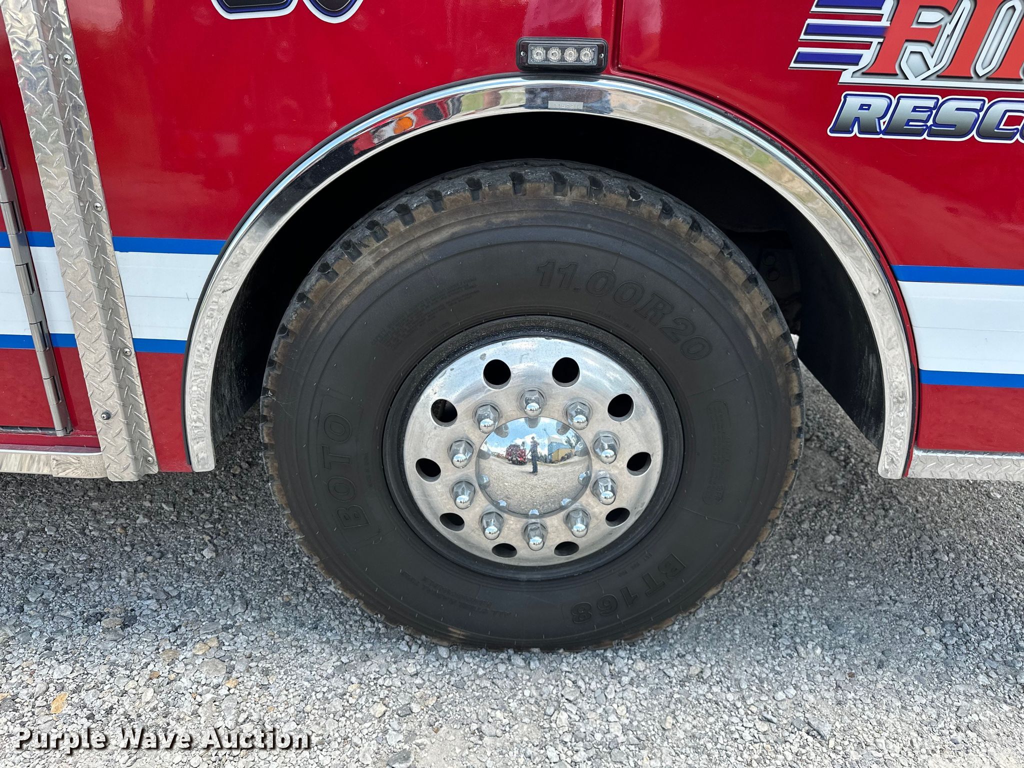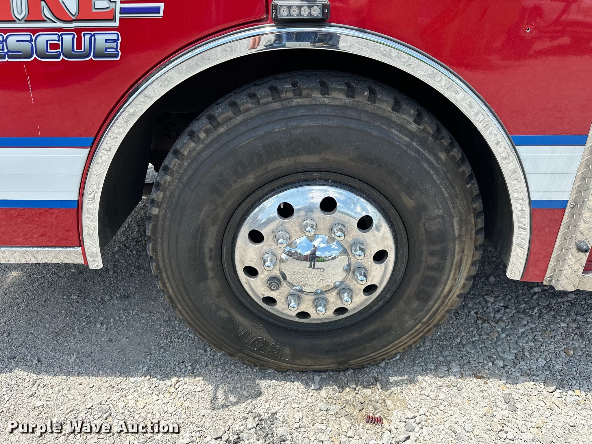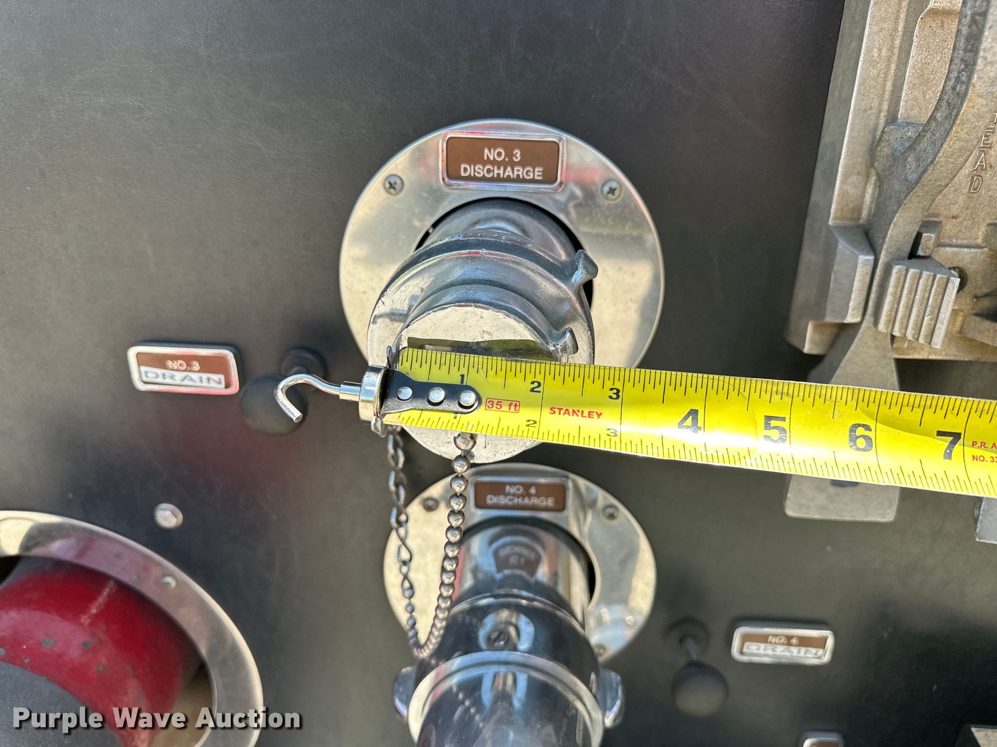 1986 Pierce E3297 Quint fire truck. Miles: 5,391 on odometer, Hours: 5,970 on meter, VIN: 1P9CT01D9GA040531. Engine Cylinders: 6, Fuel type: Diesel. Transmission Automatic. Chassis Axles: Single, Suspension: Spring, Brakes: Air, GVWR: 38,400 lbs. Interior Heat, Auxiliary controls. Features Fire truck body Aerial Telesqurt-50 B5042, Maximum height: 55', Maximum lift capacity: 300 lbs, Stabilizers Quantity: 2, Elevated deck gun 1,000 gpm, Tank Capacity: 500 gallons, Pump 1,000 gpm, Ground ladder, PA/ siren controls. Tires Size: 11.00R20. Notes Contents not included, Rear driver side window cracked, Outrigger issues, leaks hydraulic fluid. Oklahoma title. Mileage has not been verified. Exempt will be written in the odometer disclosure on the title. Rolling Hills Fire Protection District #1. Tulsa, OK 74108