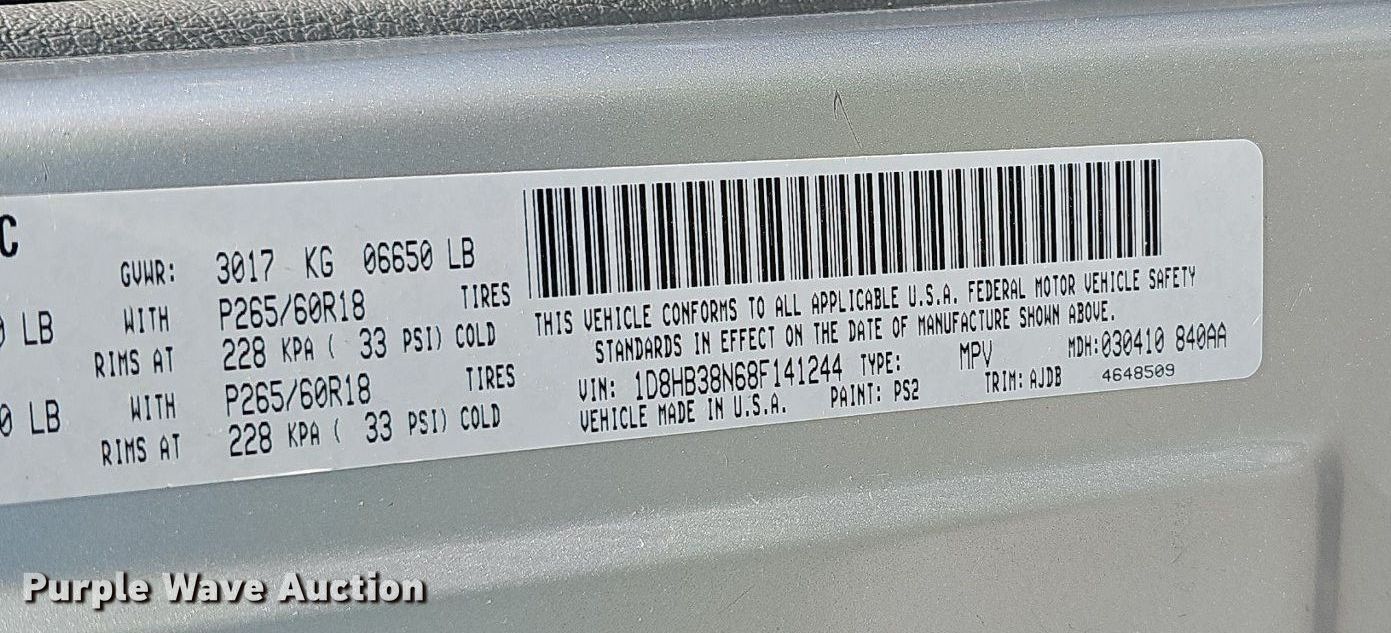 Purple Wave is selling a used Passenger Vehicle in Missouri. This item is a 2008 Dodge Durango SUV with the following: Miles: 137,931 on odometer, VIN: 1D8HB38N68F141244