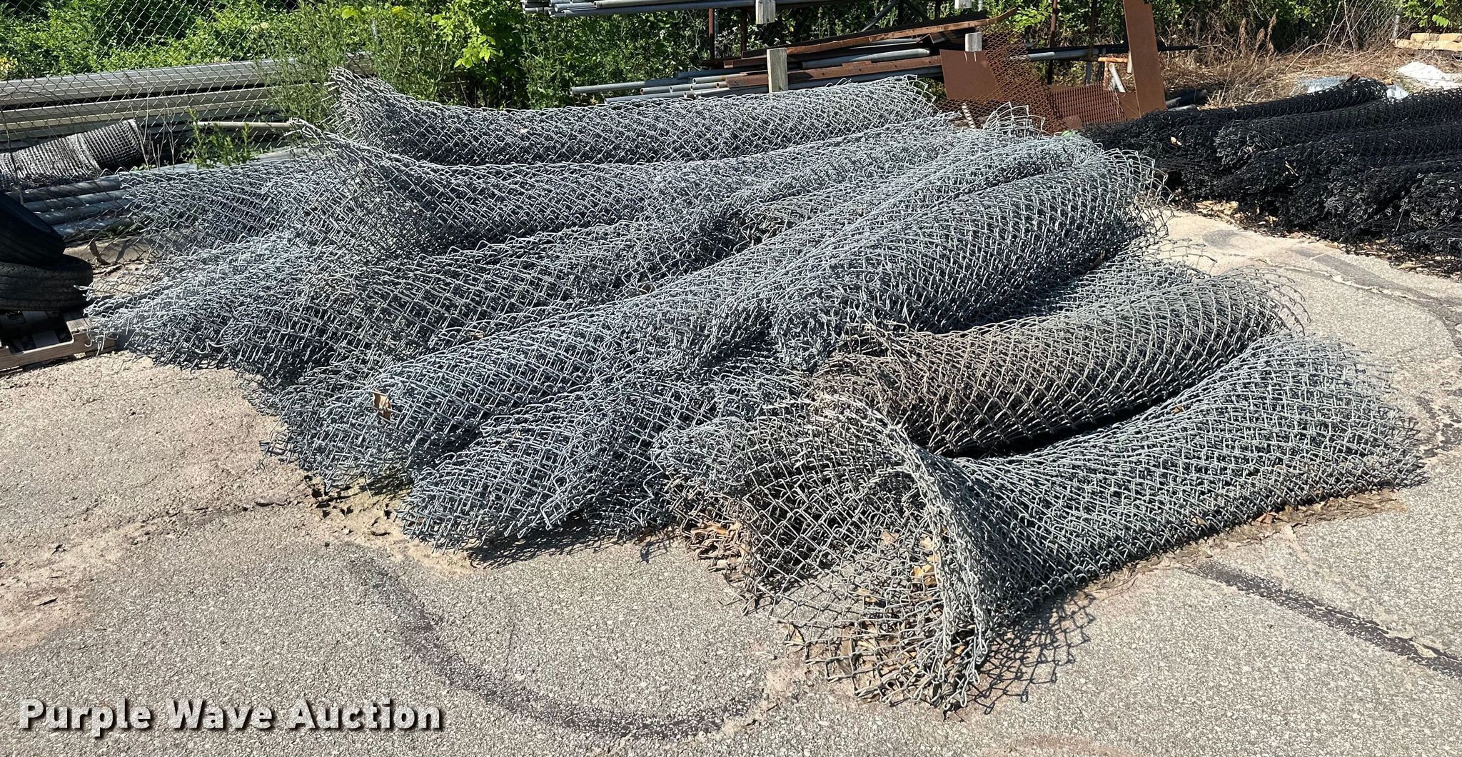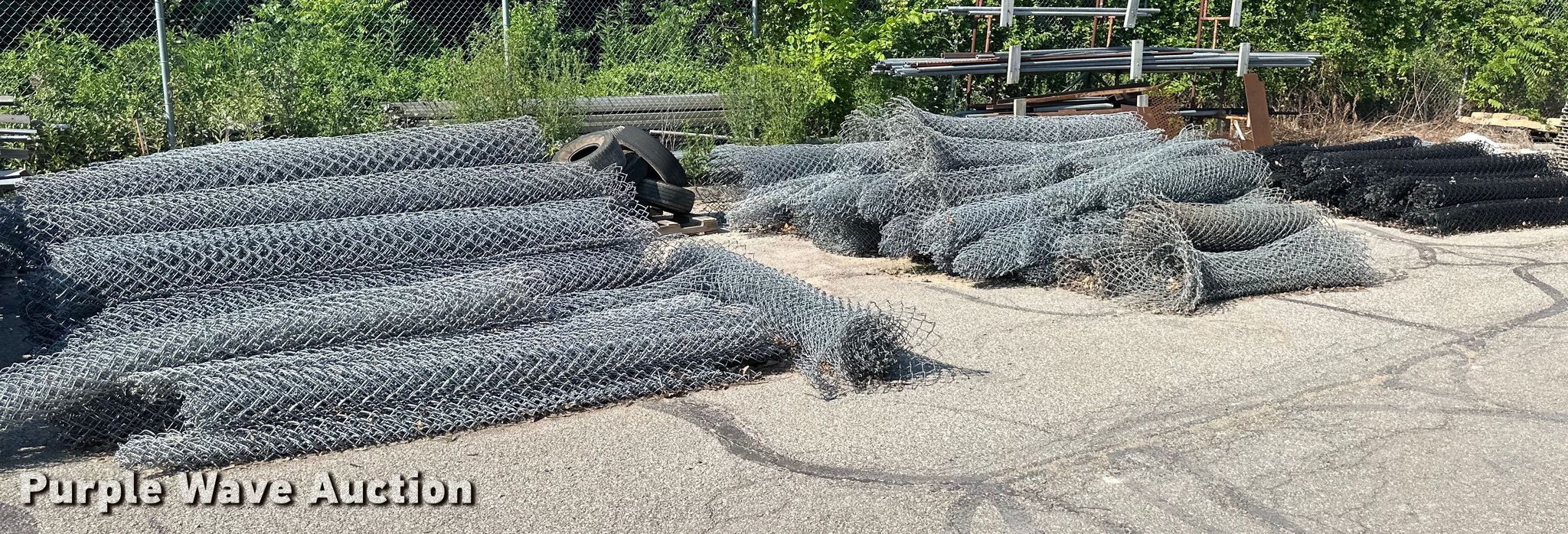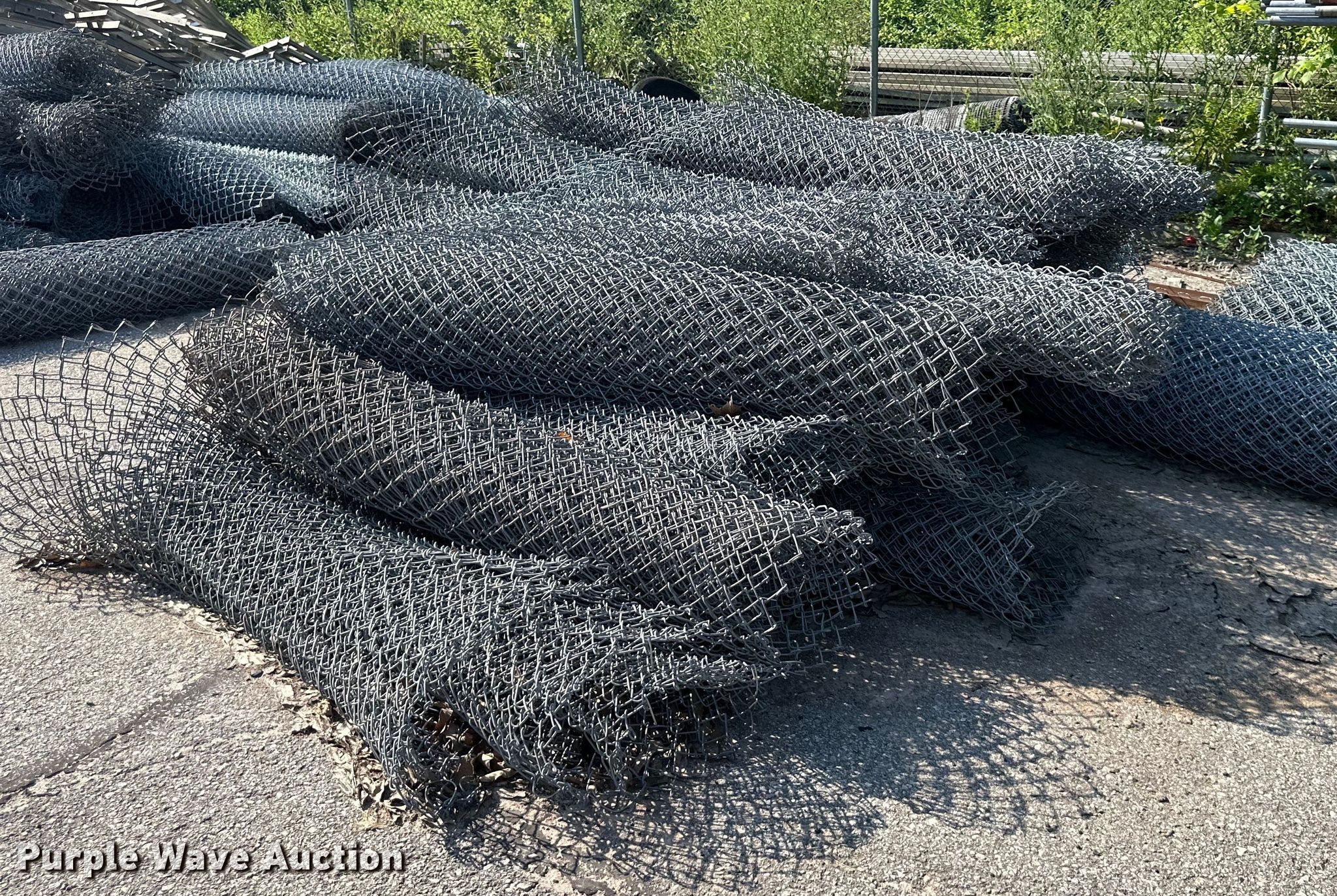 Purple Wave is selling a used Fencing Materials in Kansas. This item is a Chain link fence with the following: Approx. 500' L x 8' H black fence, Approx. 1,000' L x 8' H galvanized fence, Approx. 1,000' L x 6' H galvanized fence, (2) roll gates, 28' L x 7' H, (2) roll gates, 21.5' L x 5' H