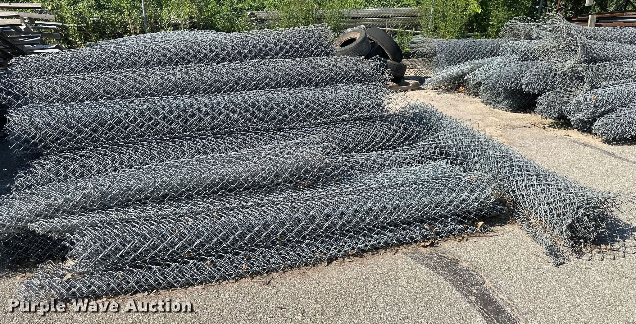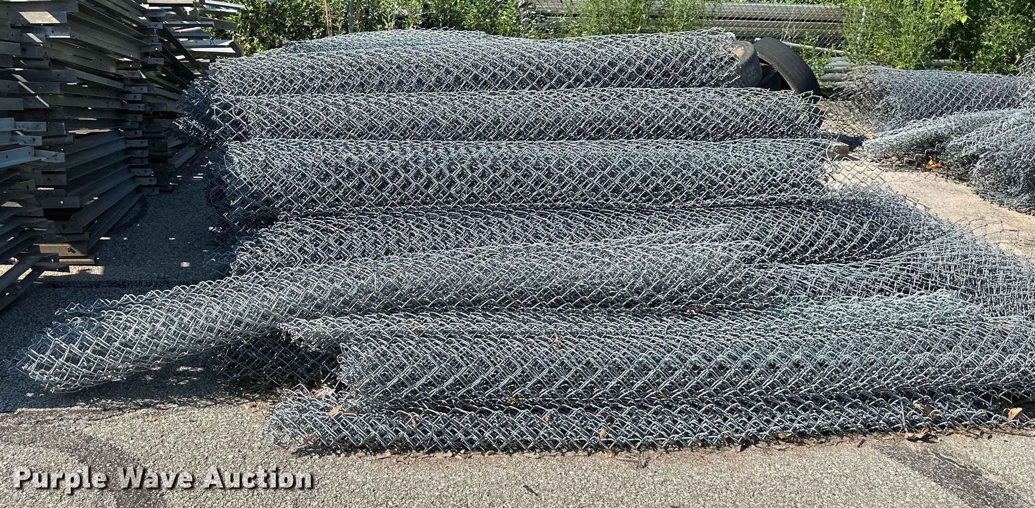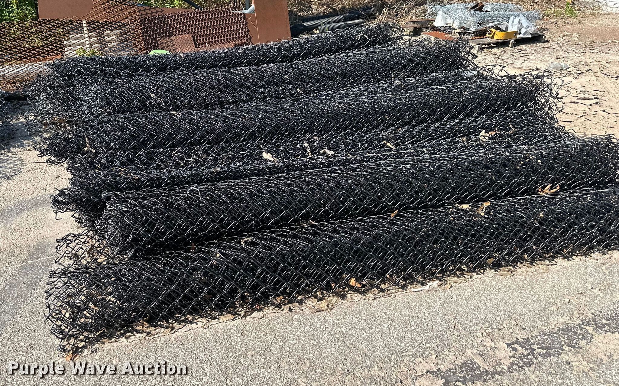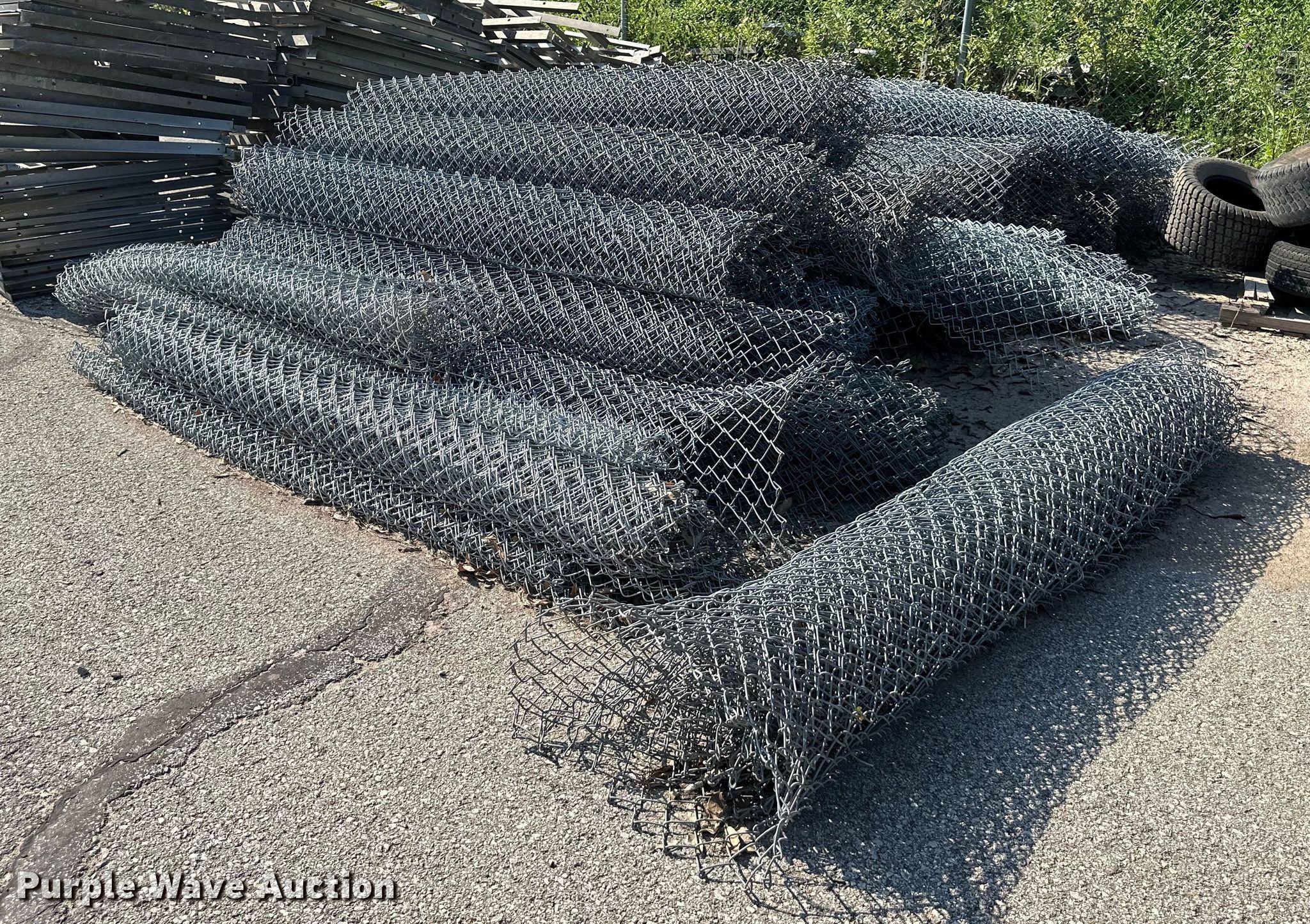 Purple Wave is selling a used Fencing Materials in Kansas. This item is a Chain link fence with the following: Approx. 500' L x 8' H black fence, Approx. 1,000' L x 8' H galvanized fence, Approx. 1,000' L x 6' H galvanized fence, (2) roll gates, 28' L x 7' H, (2) roll gates, 21.5' L x 5' H