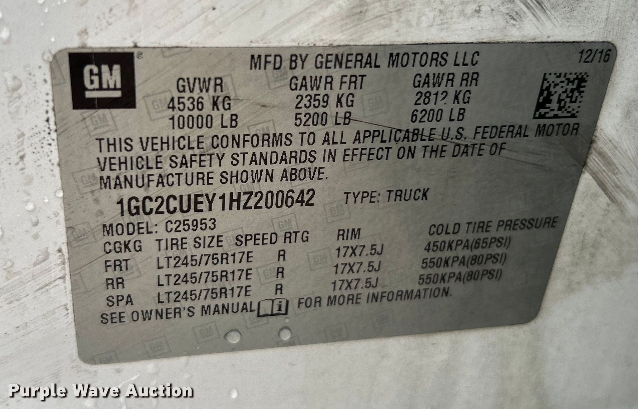 Purple Wave is selling a used 3/4 or 1 Ton Pickup or Van in Missouri. This item is a 2017 Chevrolet Silverado 2500HD Double Cab utility bed pickup truck with the following: Miles: 335,503 on odometer, Hours: 13,574 on meter, VIN: 1GC2CUEY1HZ200642, Unit #: 9554