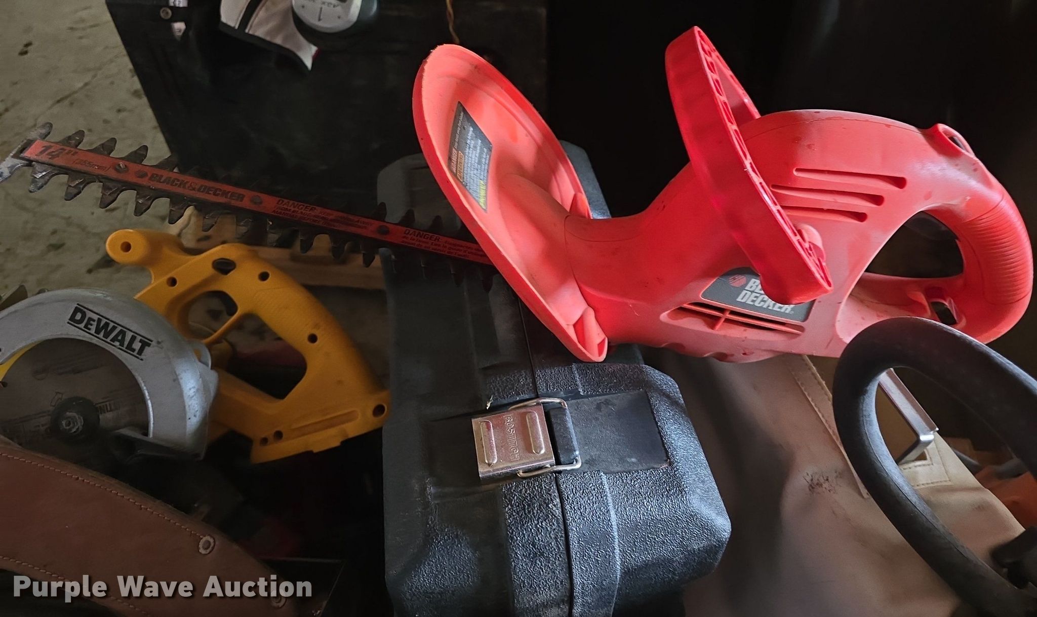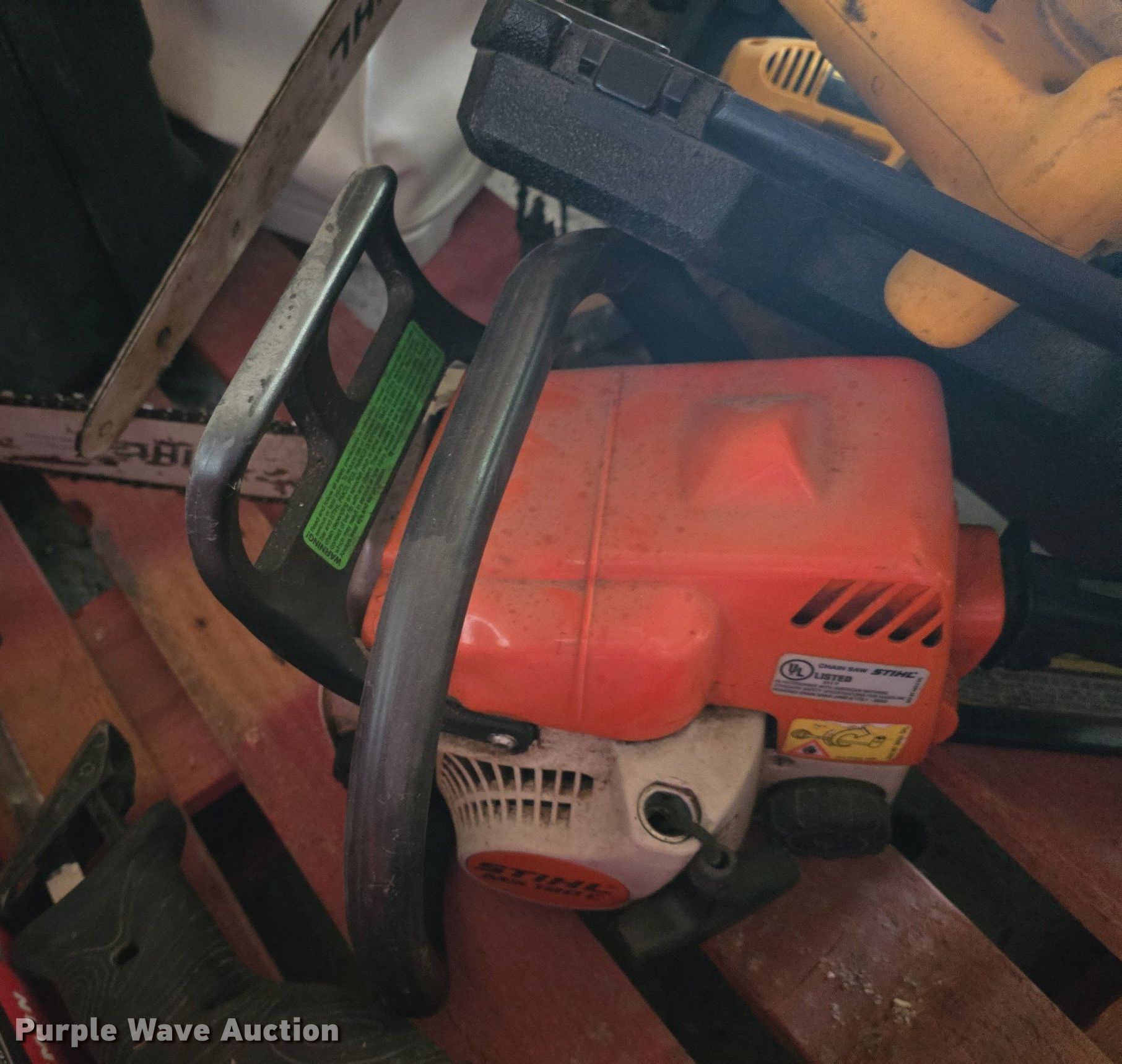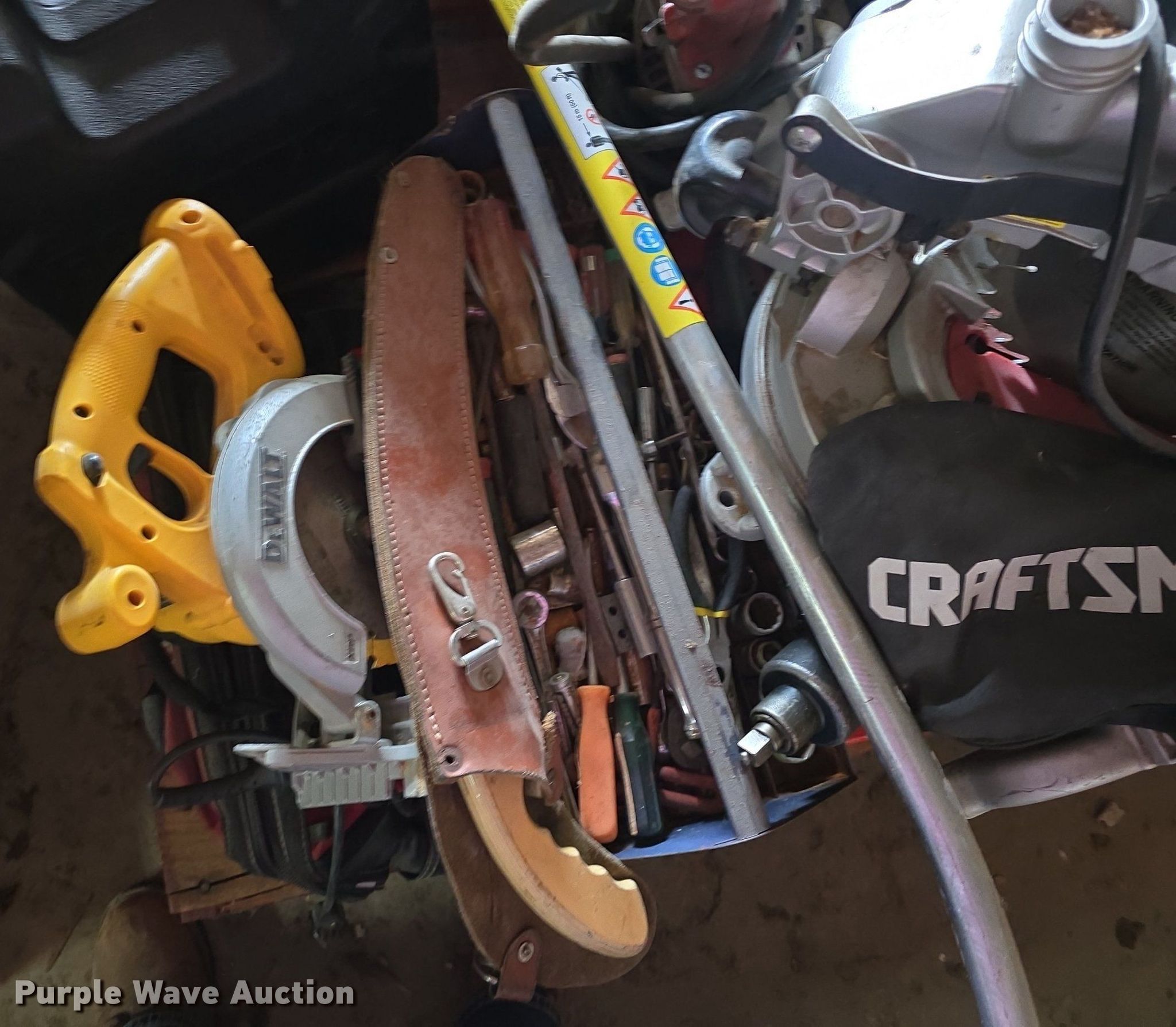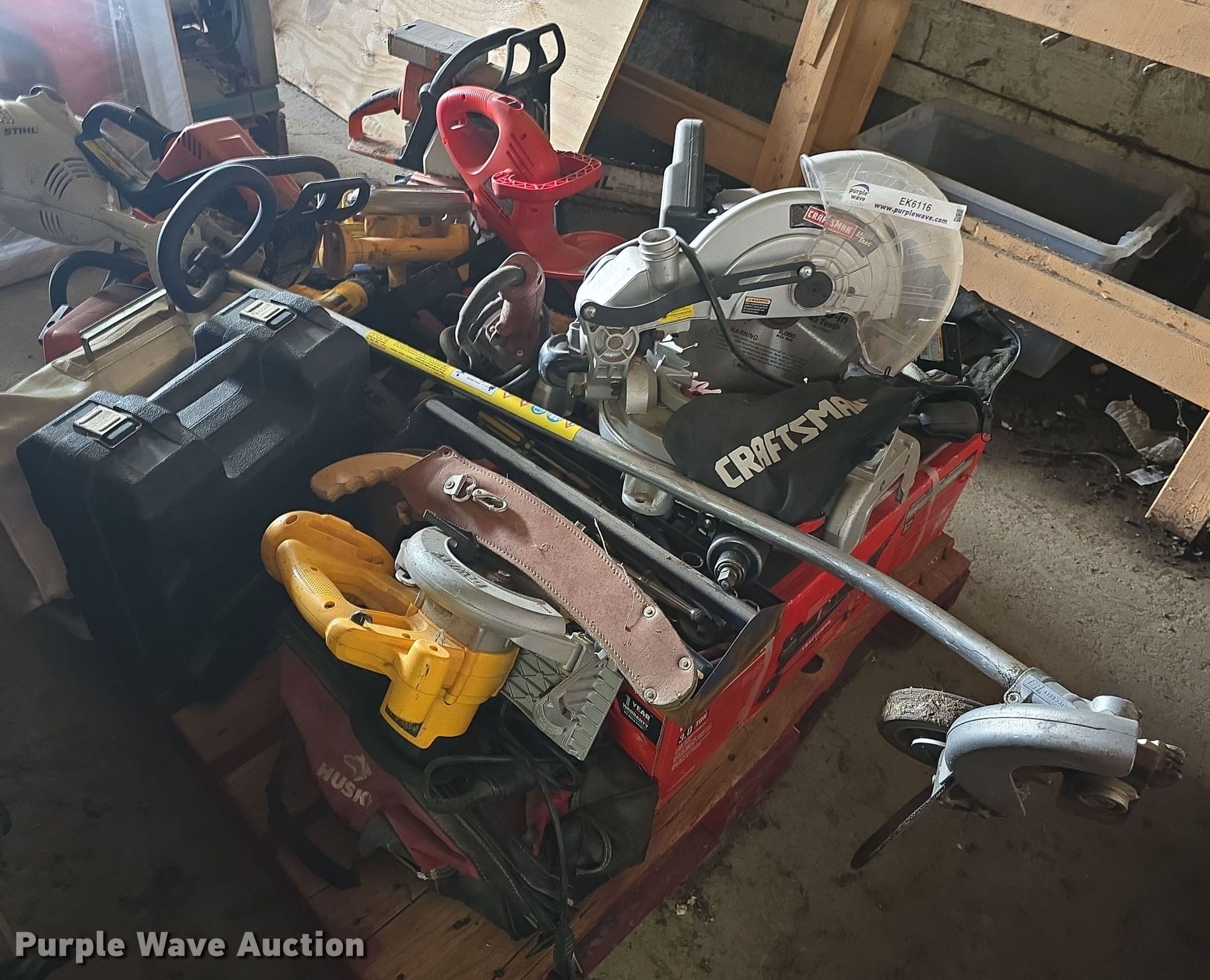 Purple Wave is selling a used Tools in Kansas. This item is a Tools with the following: Circular saws, Chainsaws, Stihl edger, Hedge trimmers, Sawzall, Craftsman floor jack and more