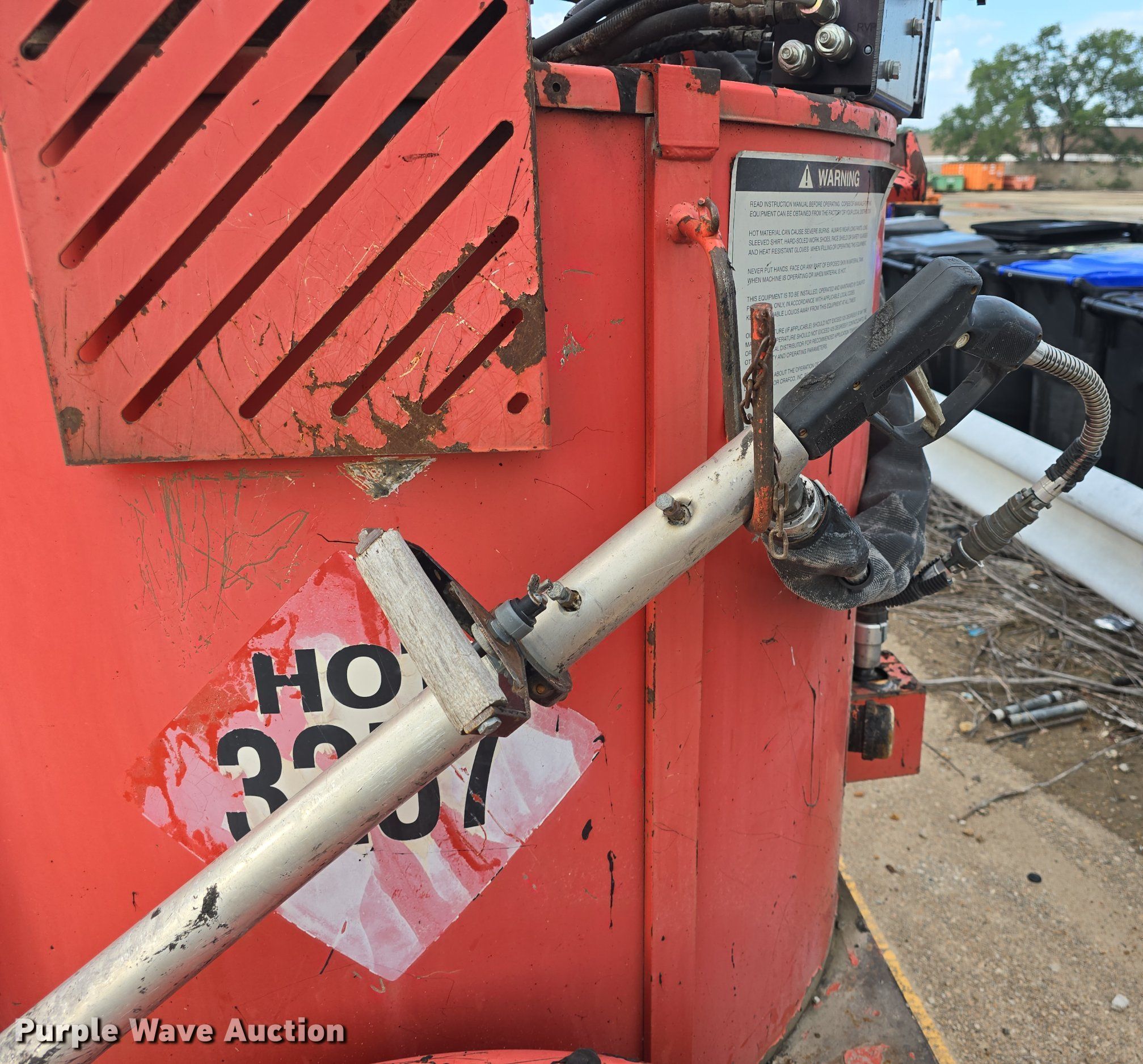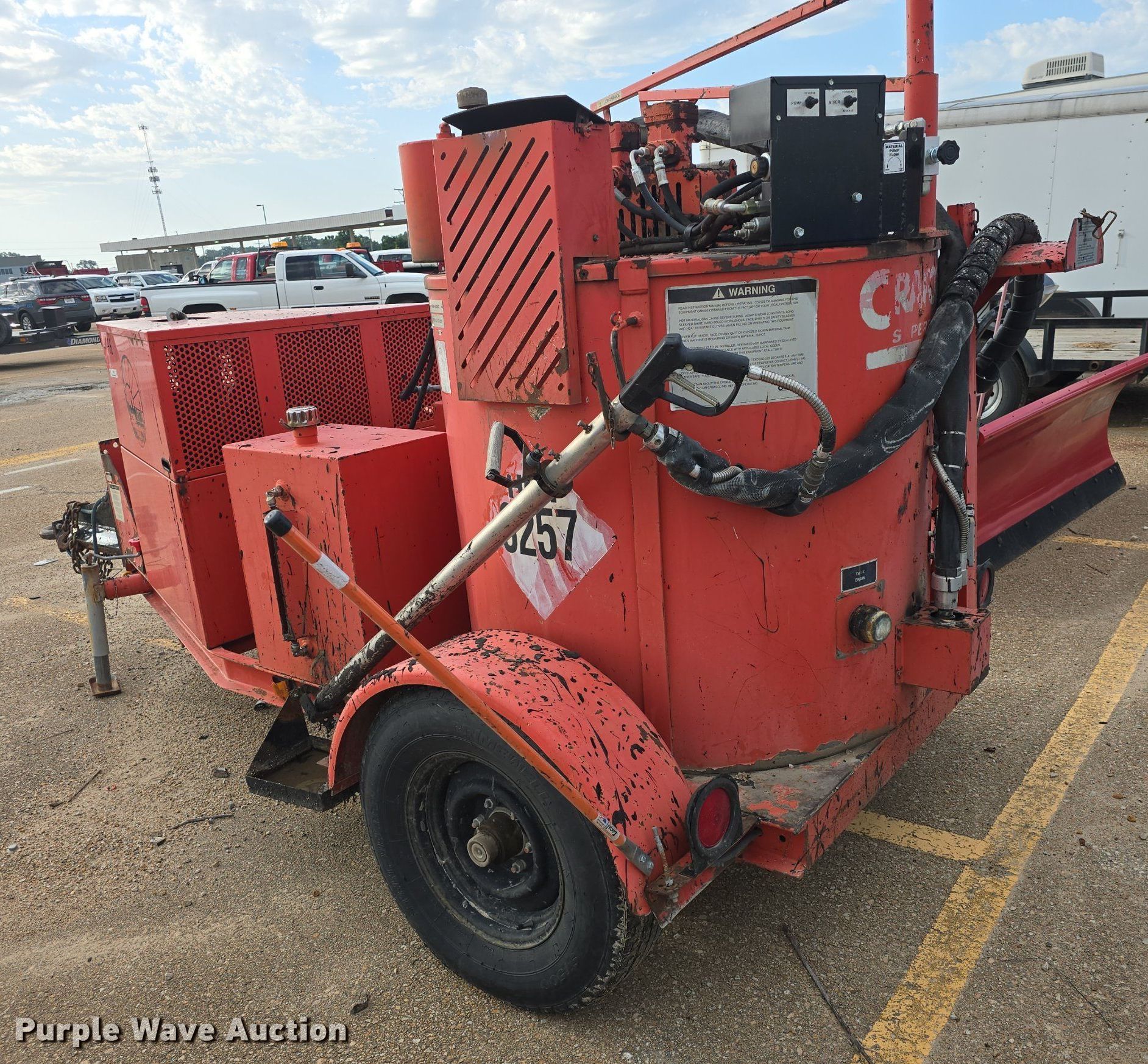 Purple Wave is selling a used Pot Hole Patcher in Kansas. This item is a Crafco SS125 melter applicator with the following: Serial: 3257, Hours: 3192, Hitch: Pintle