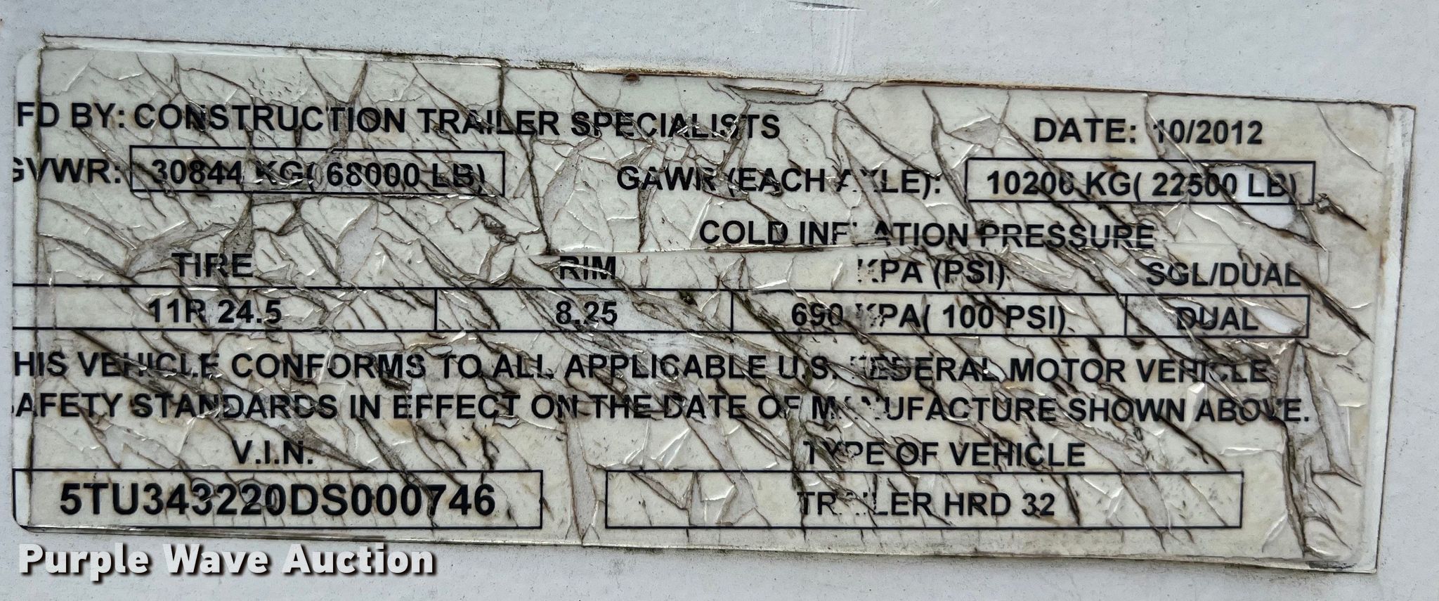 Purple Wave is selling a used End Dump Rock Trailer in Texas. This item is a 2013 CTS HRD 32 end dump trailer with the following: VIN: 5TU343220DS000746, Unit #: 7814